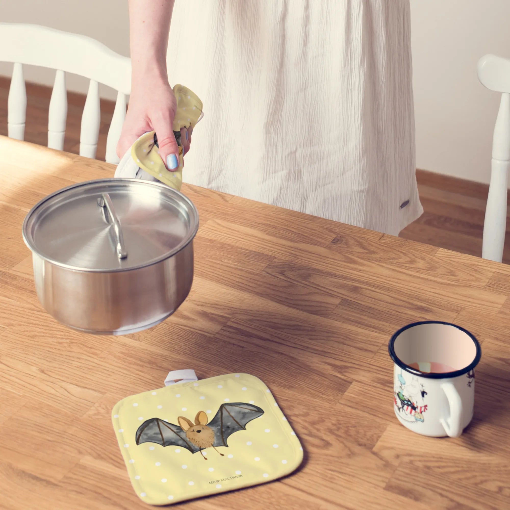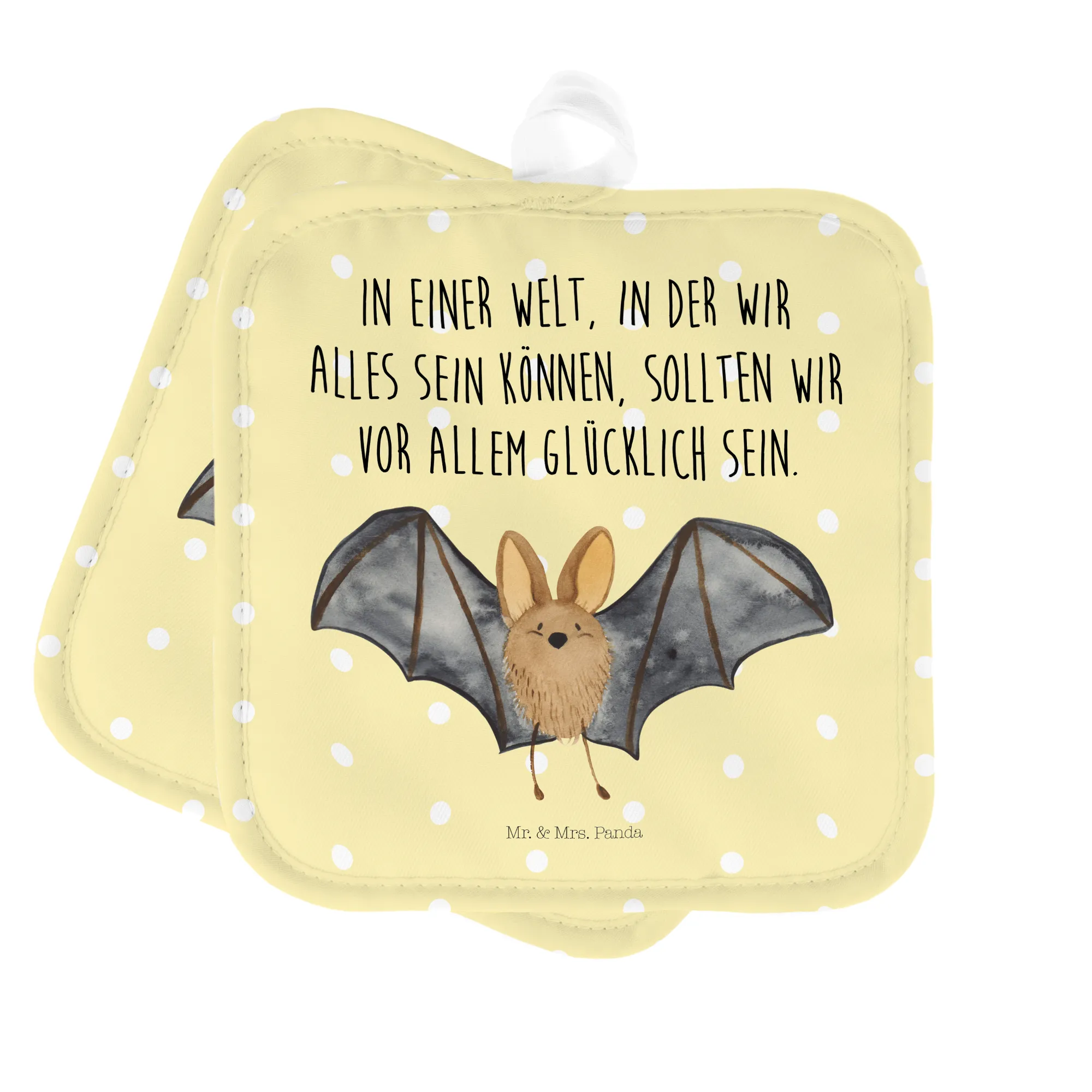 2-elementowy zestaw podkładek pod garnki nietoperz skrzydło - z napisem - Żółty Pastel
