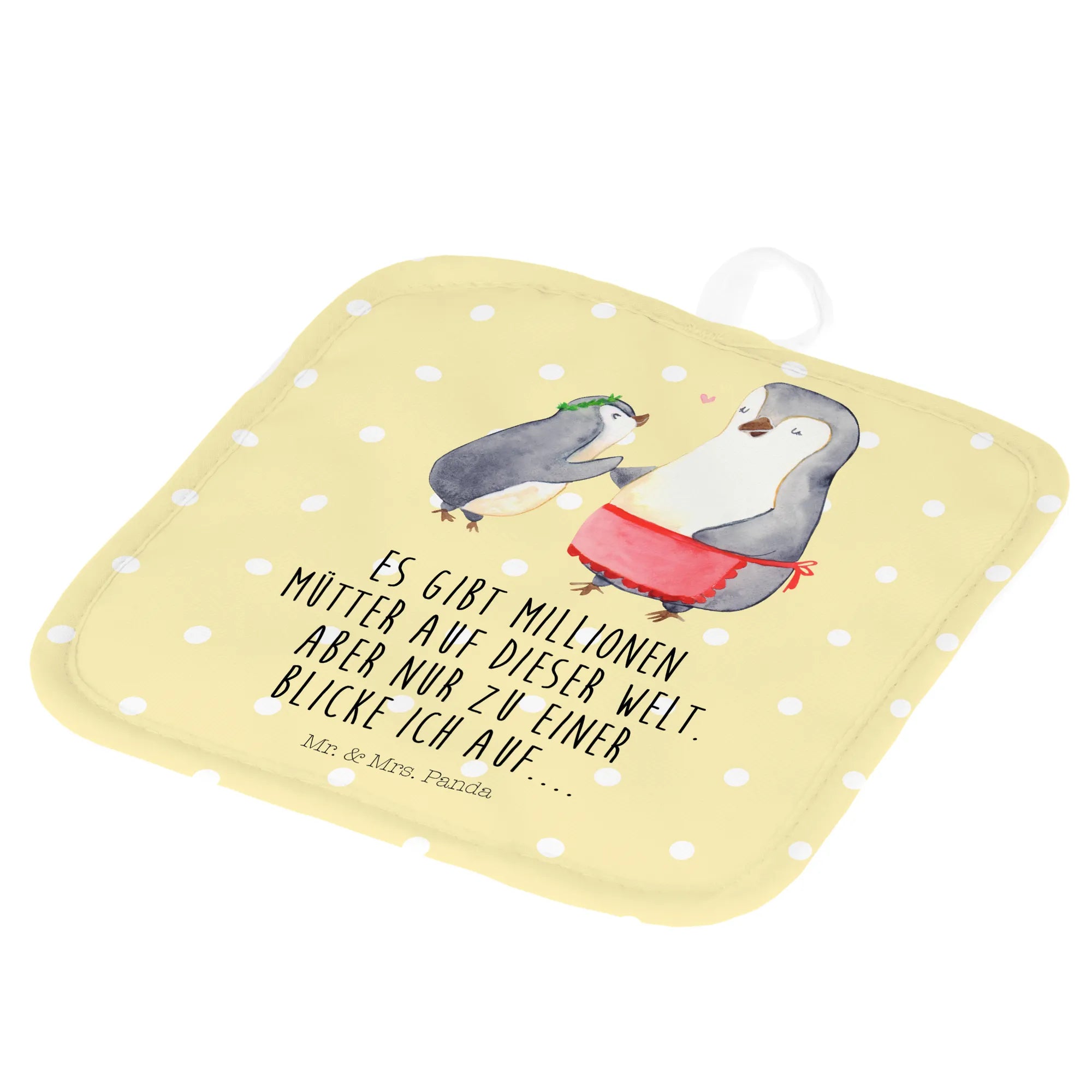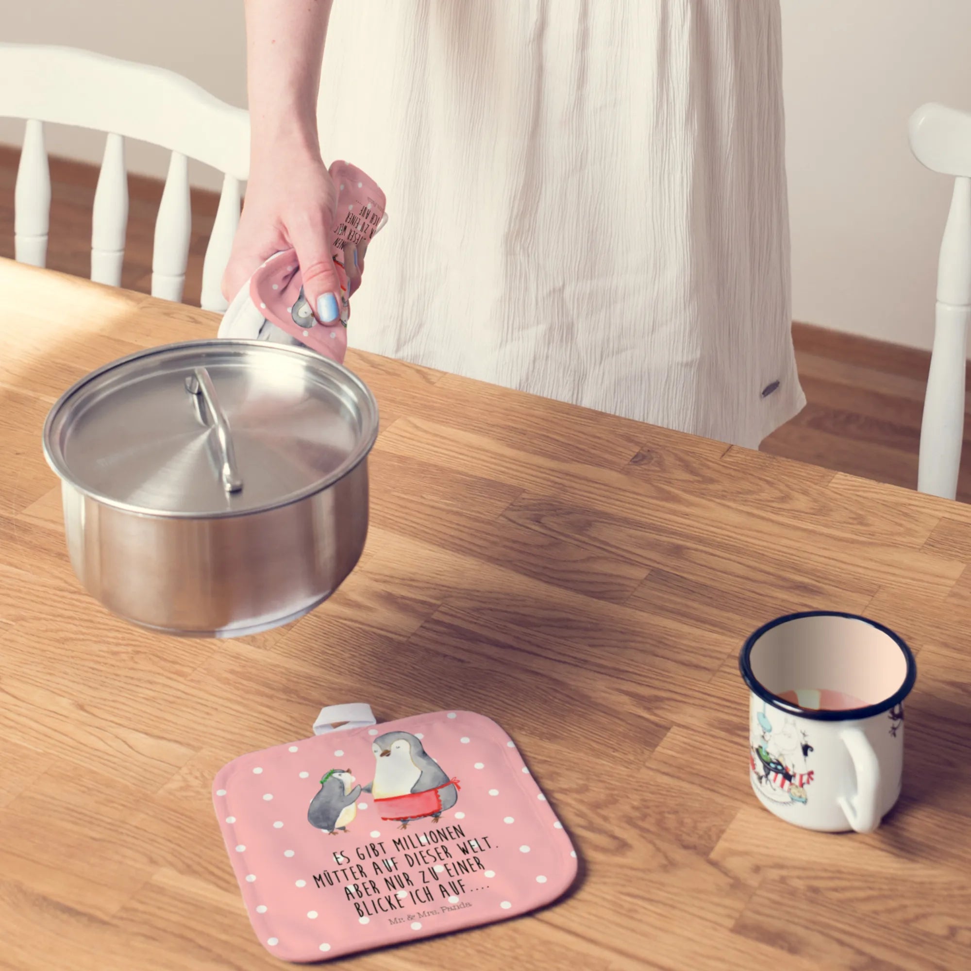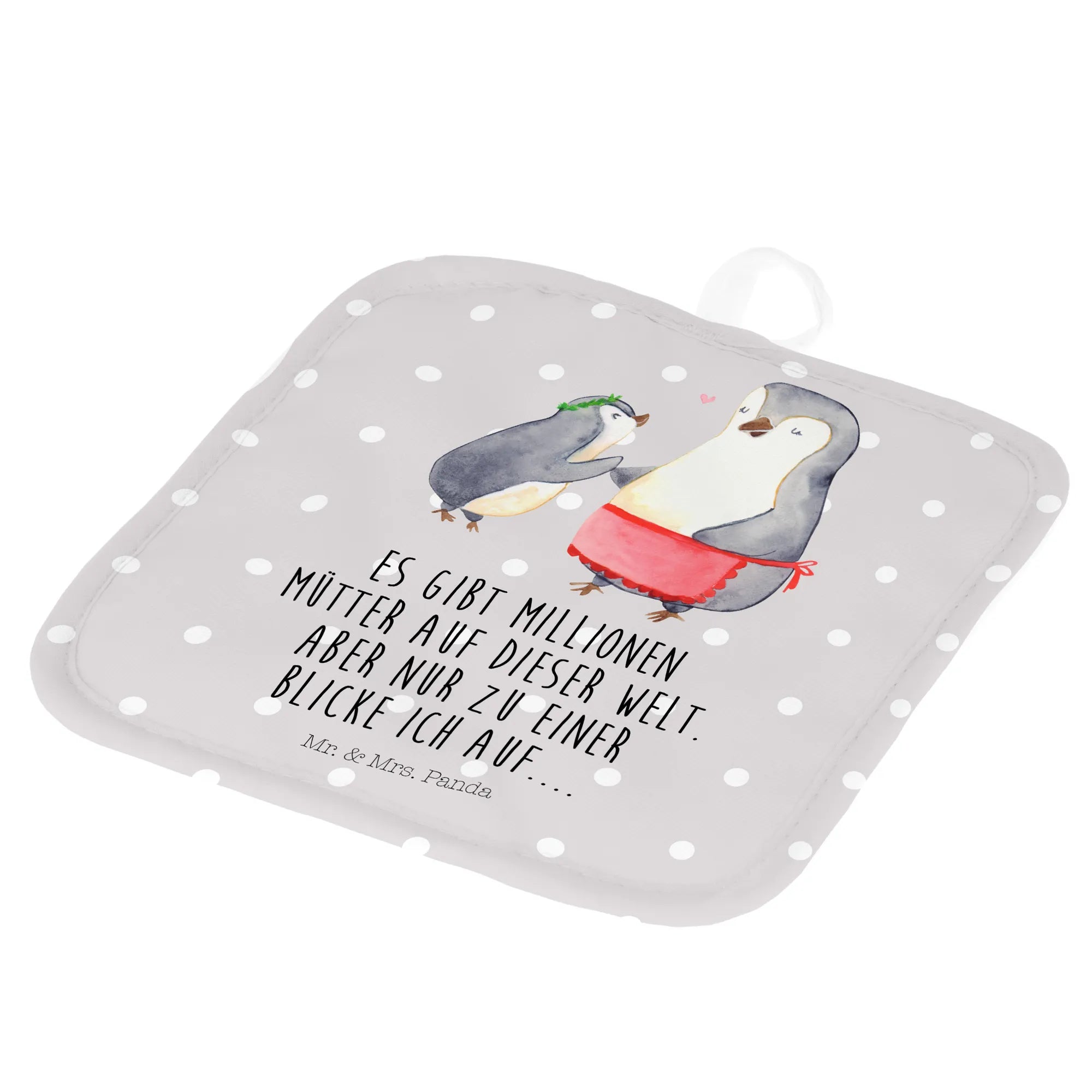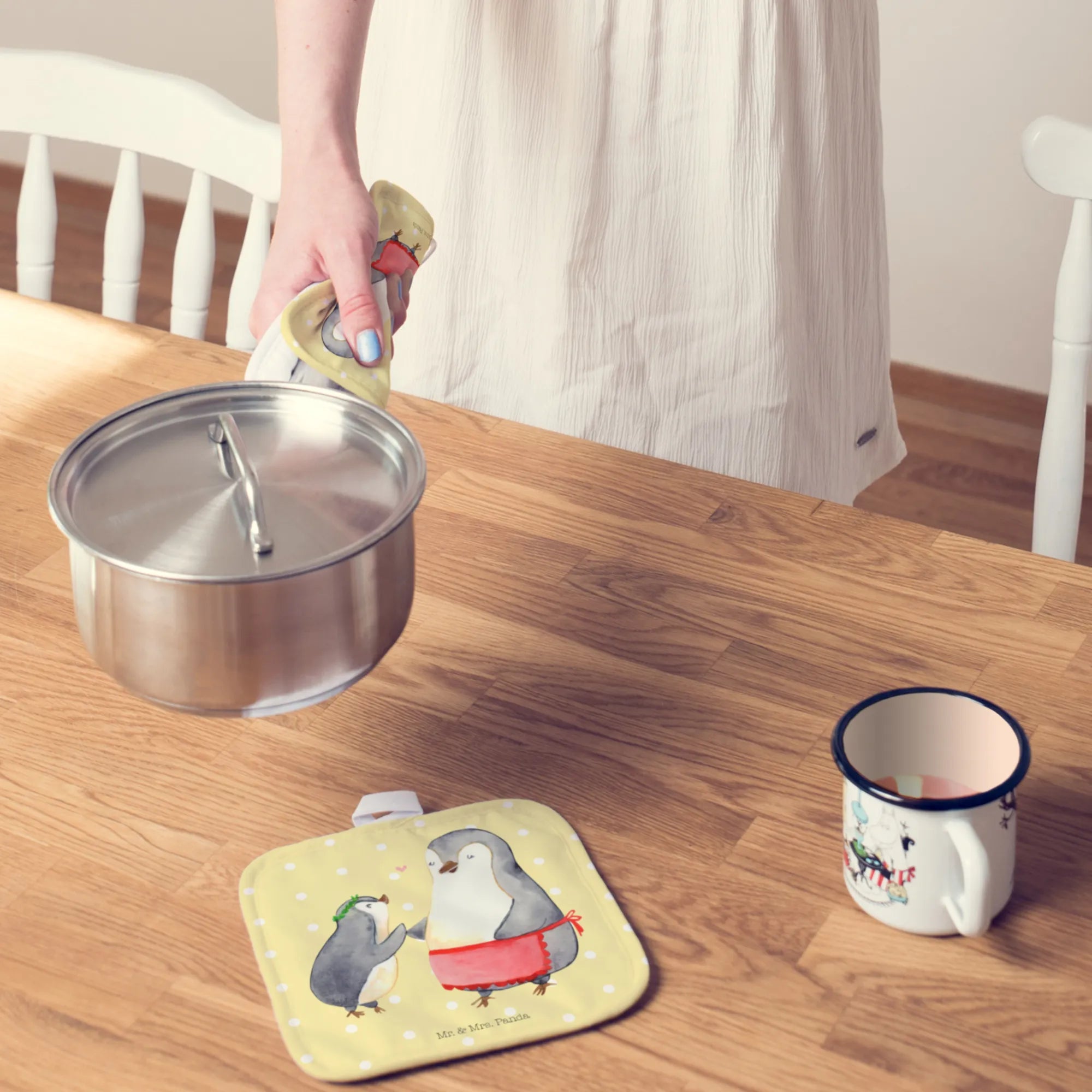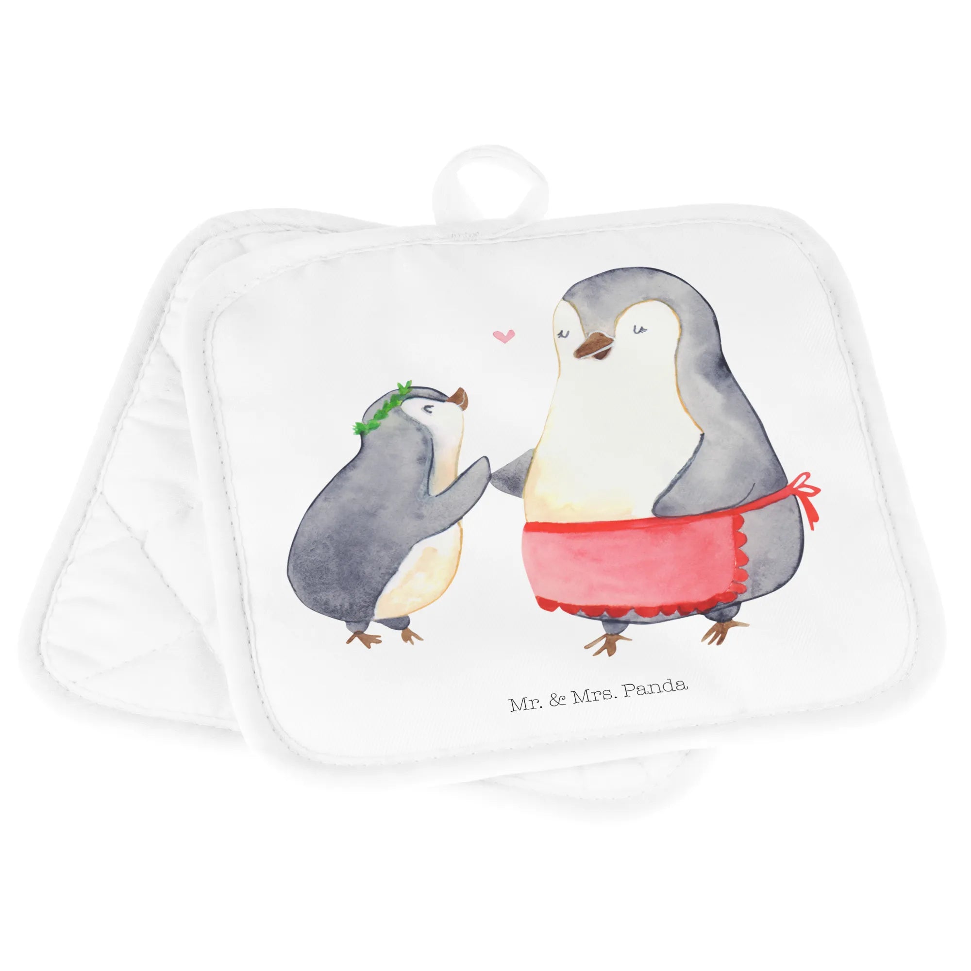 2-elementowy zestaw podkładek pod garnki Pingwin z dzieckiem - z napisem - biały