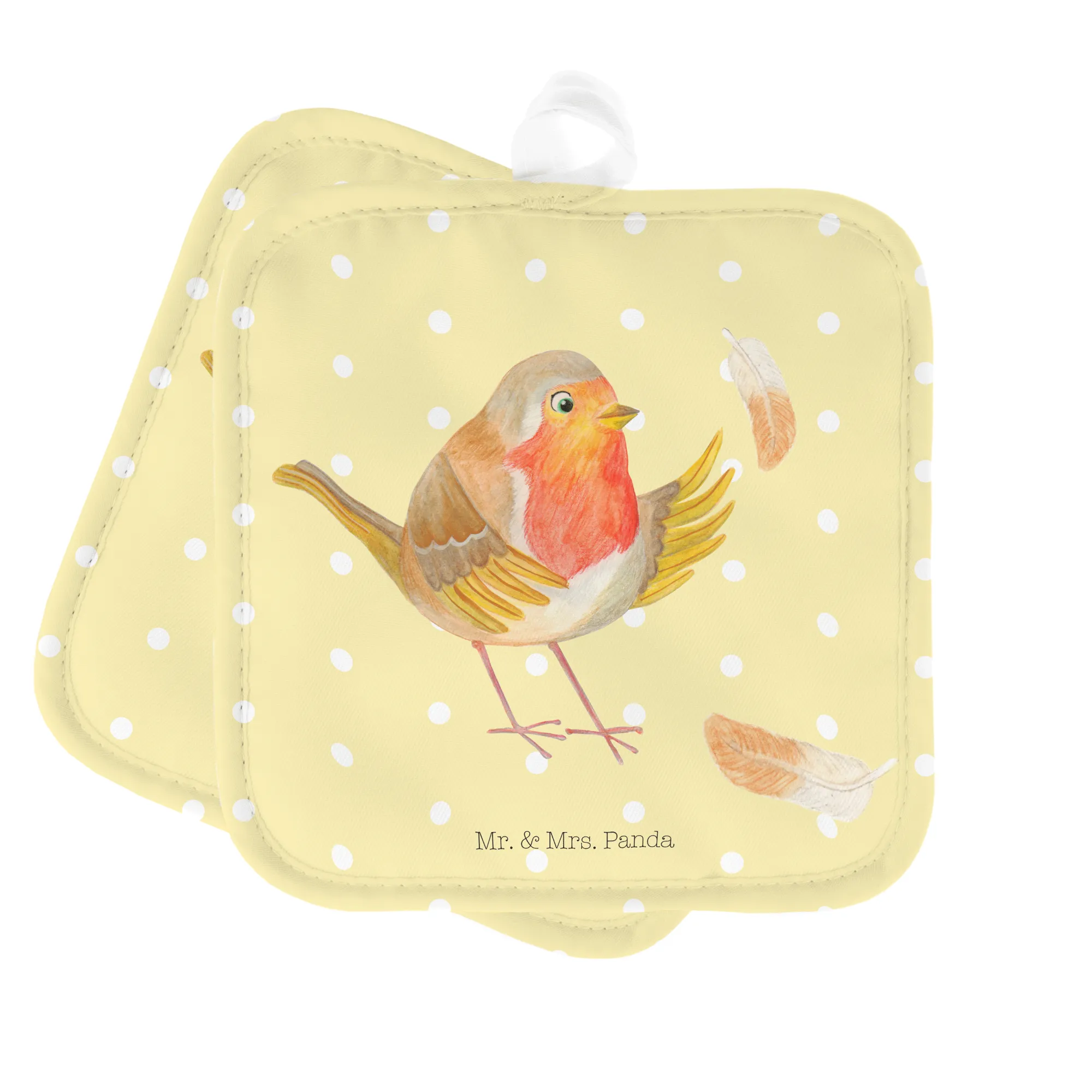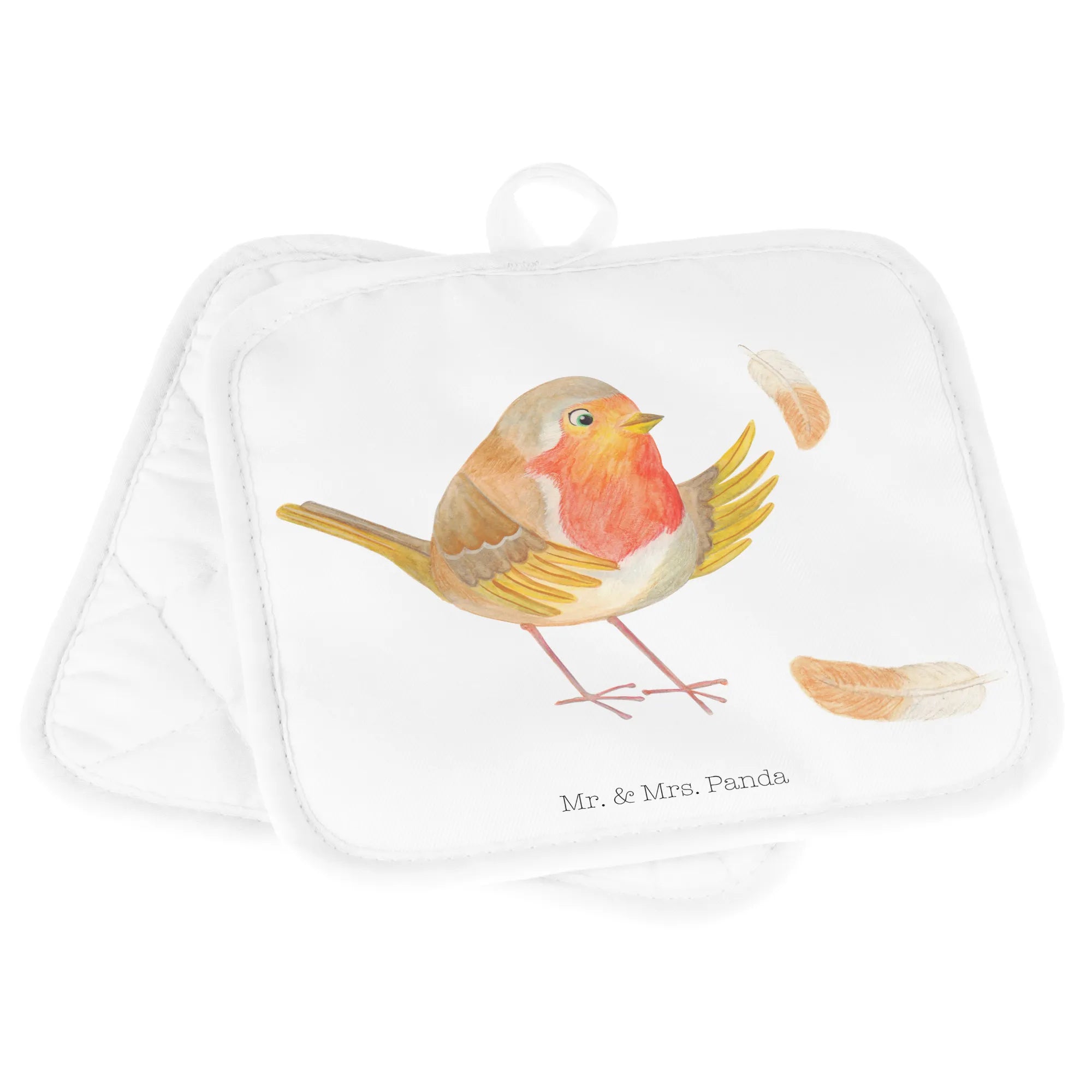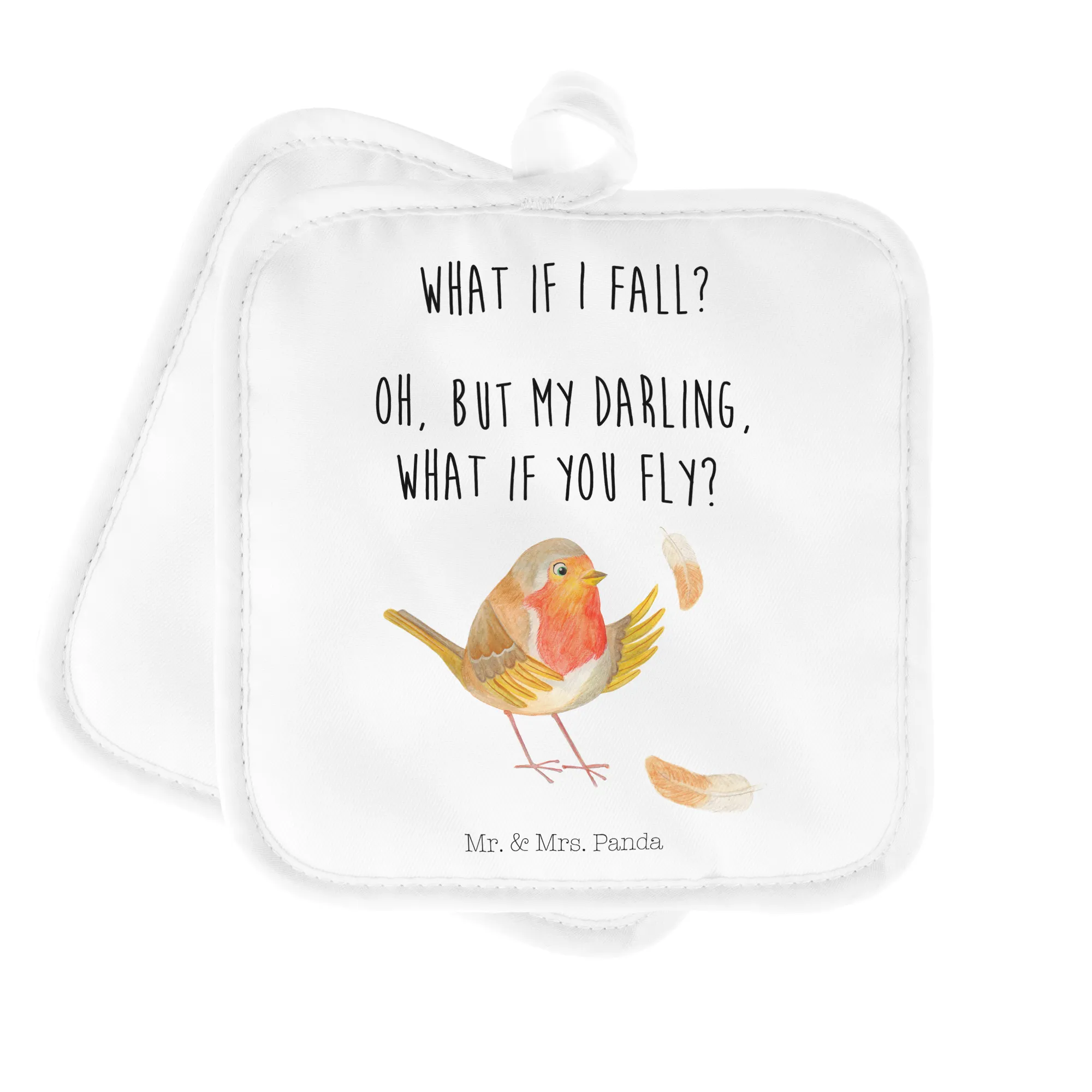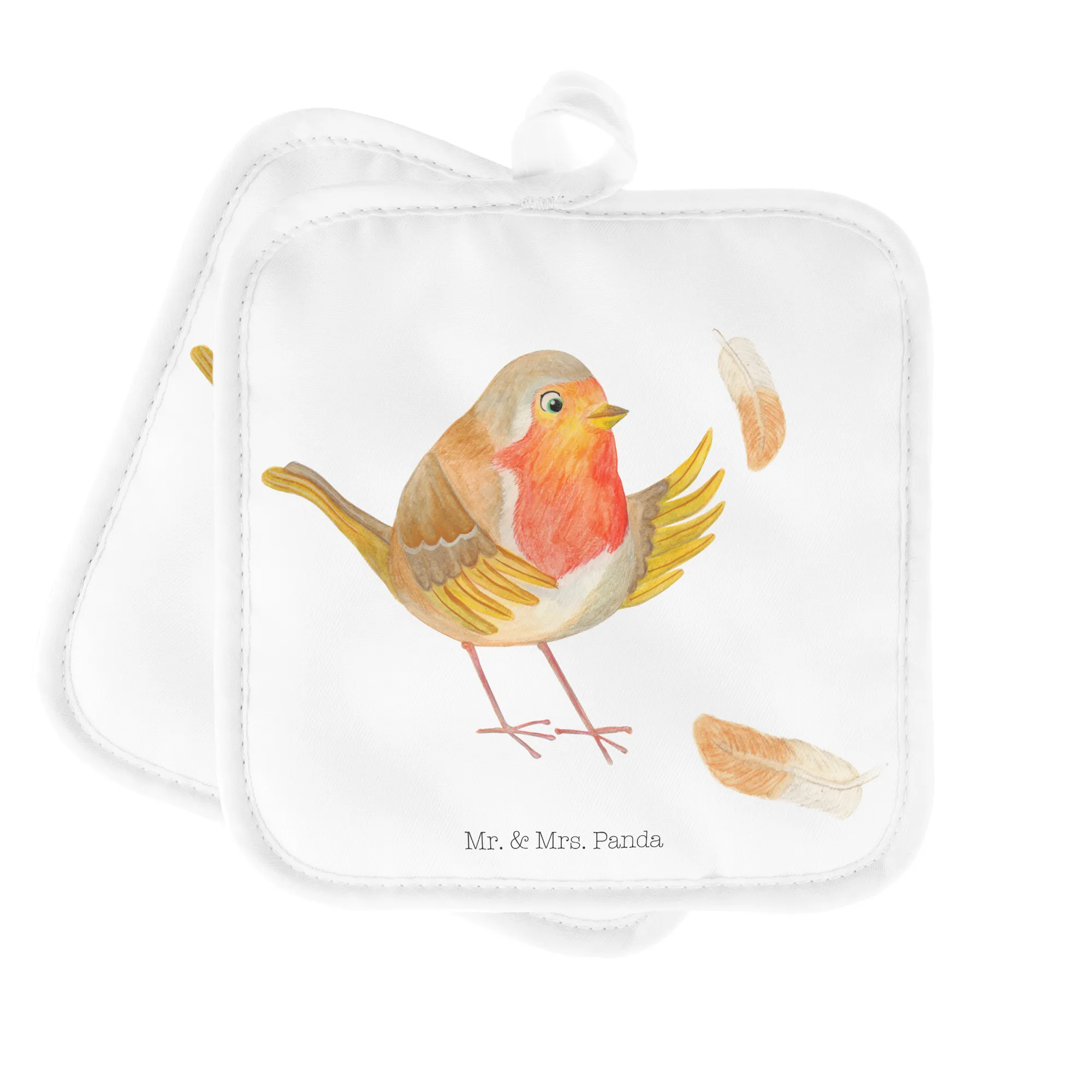 2-elementowy zestaw podkładek pod garnki rudzik Pióra - z napisem - biały