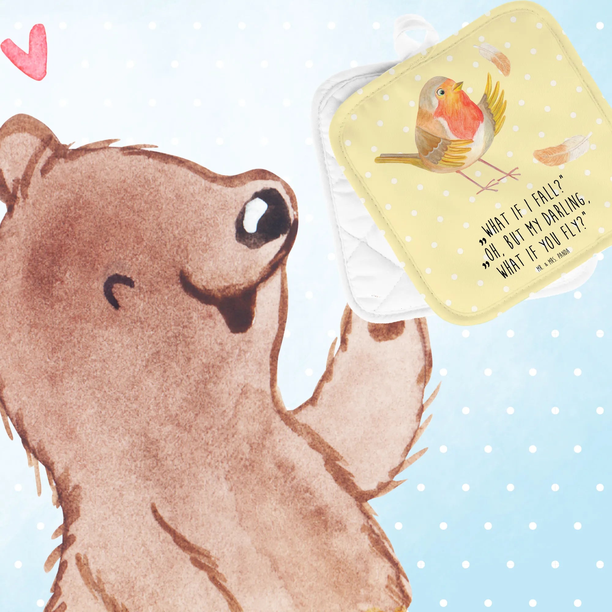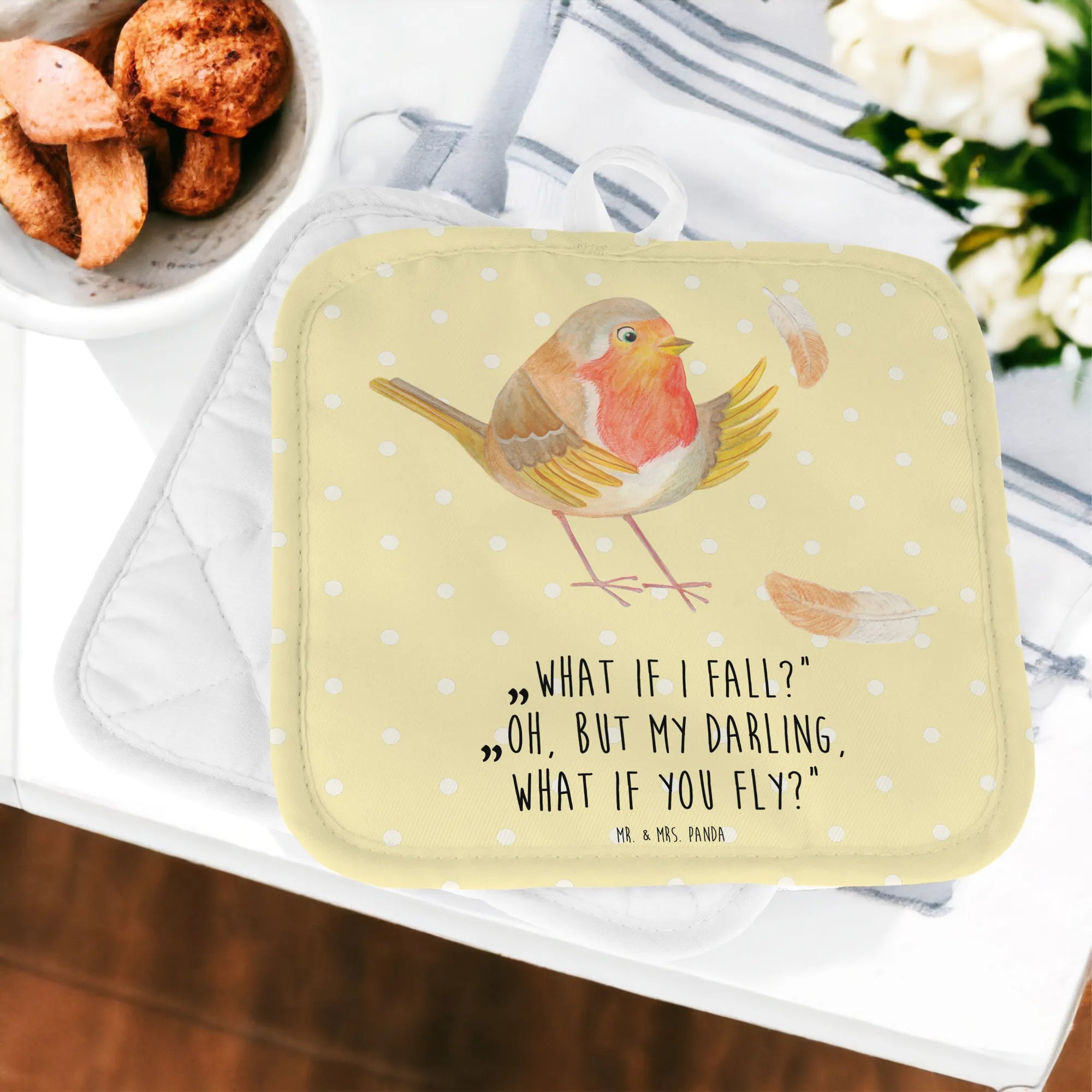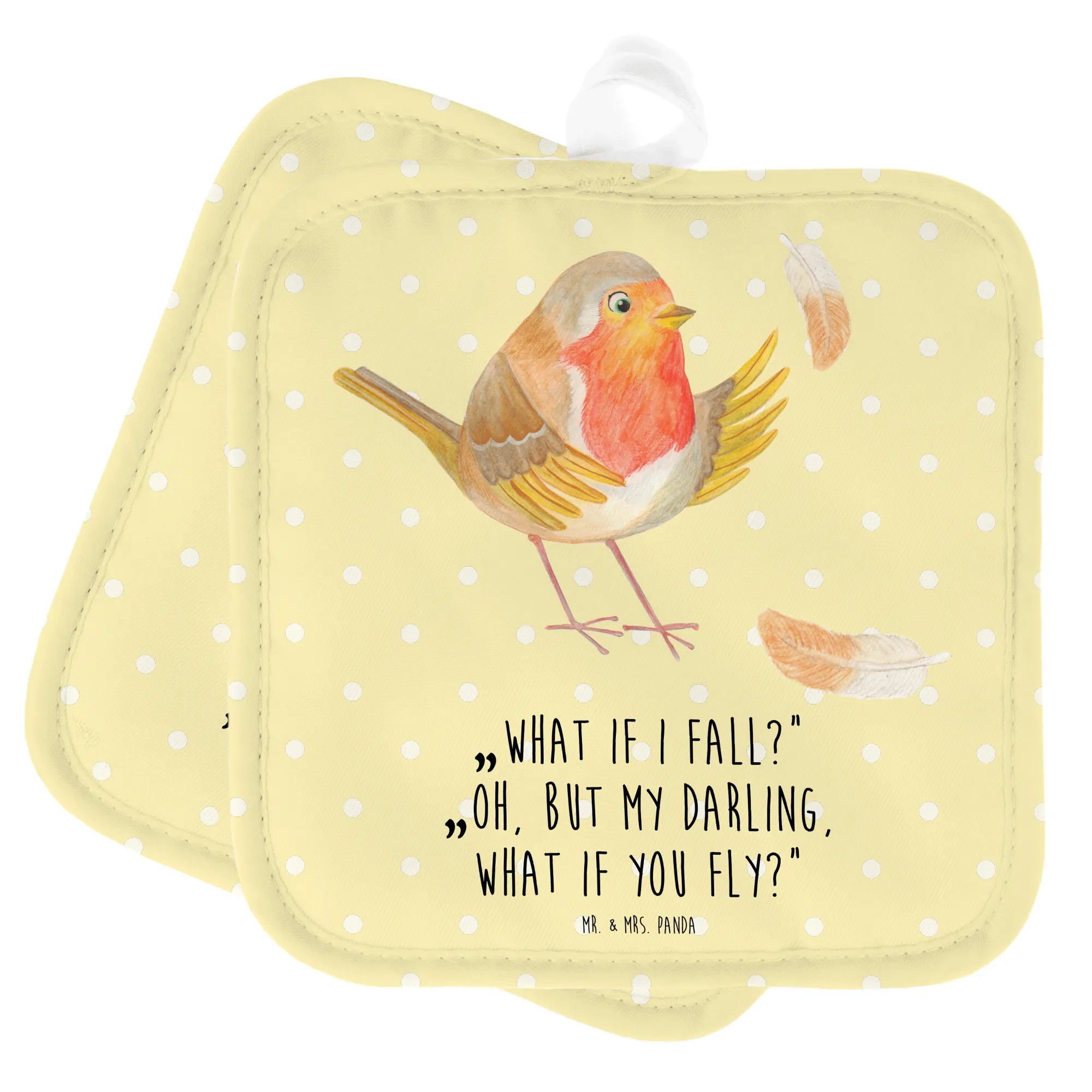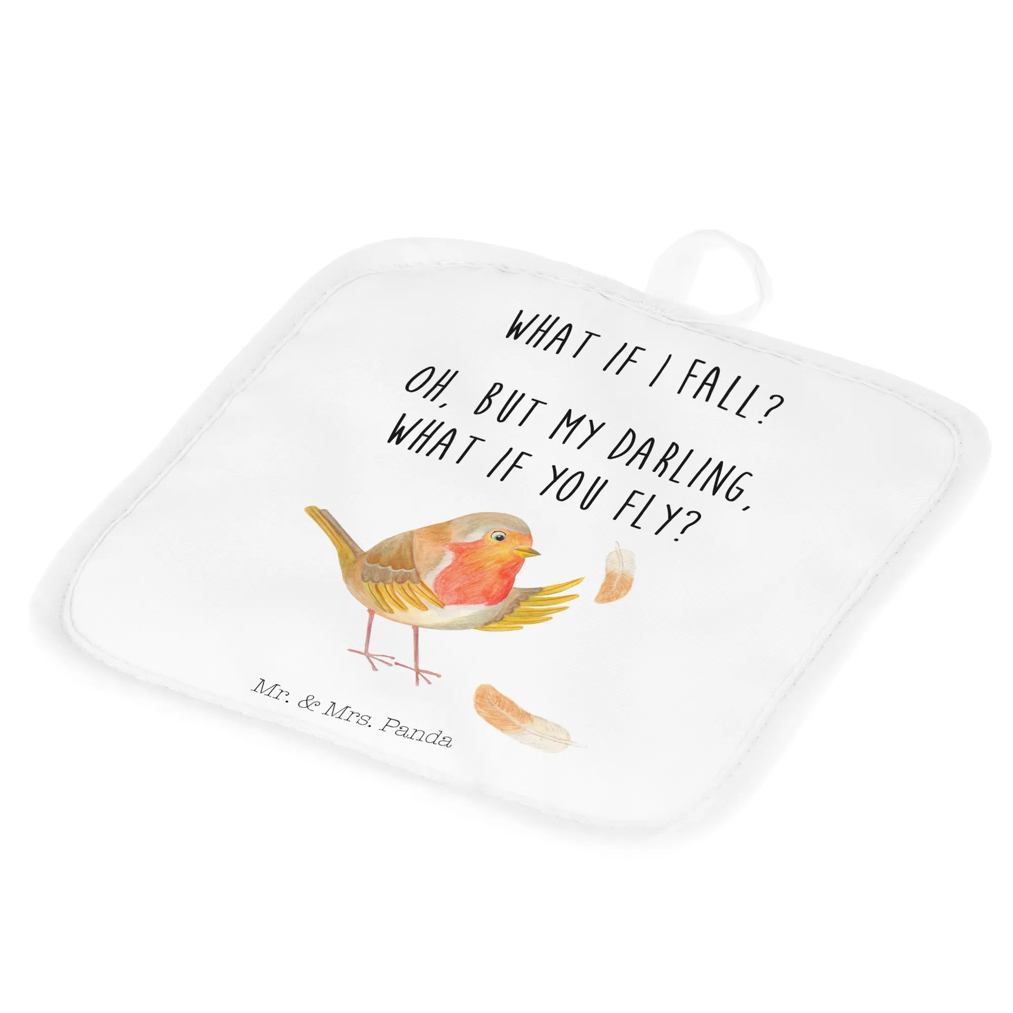 2-elementowy zestaw podkładek pod garnki rudzik Pióra - z napisem - biały
