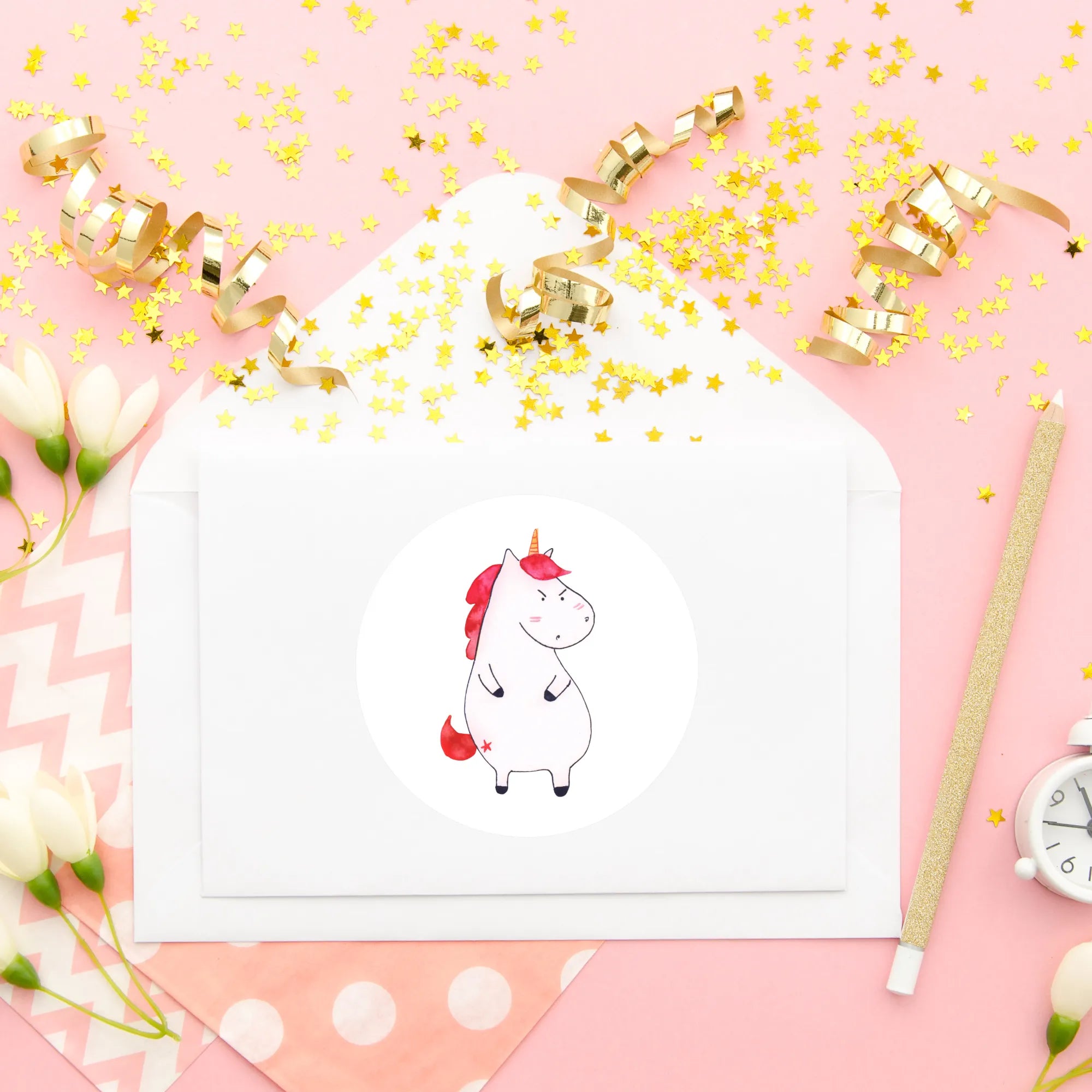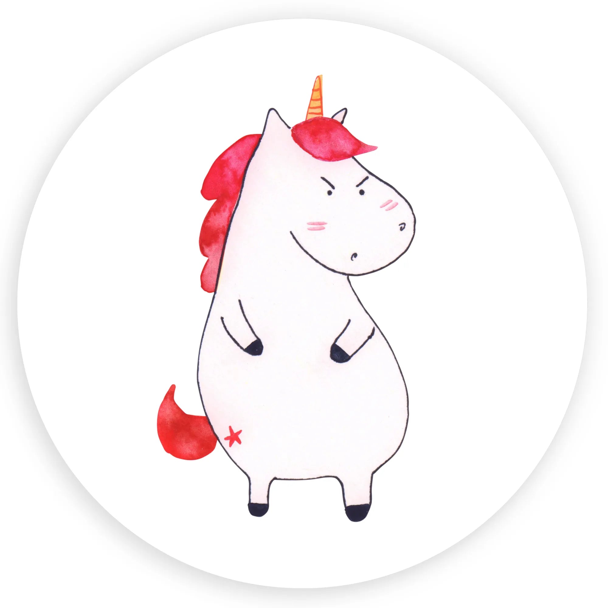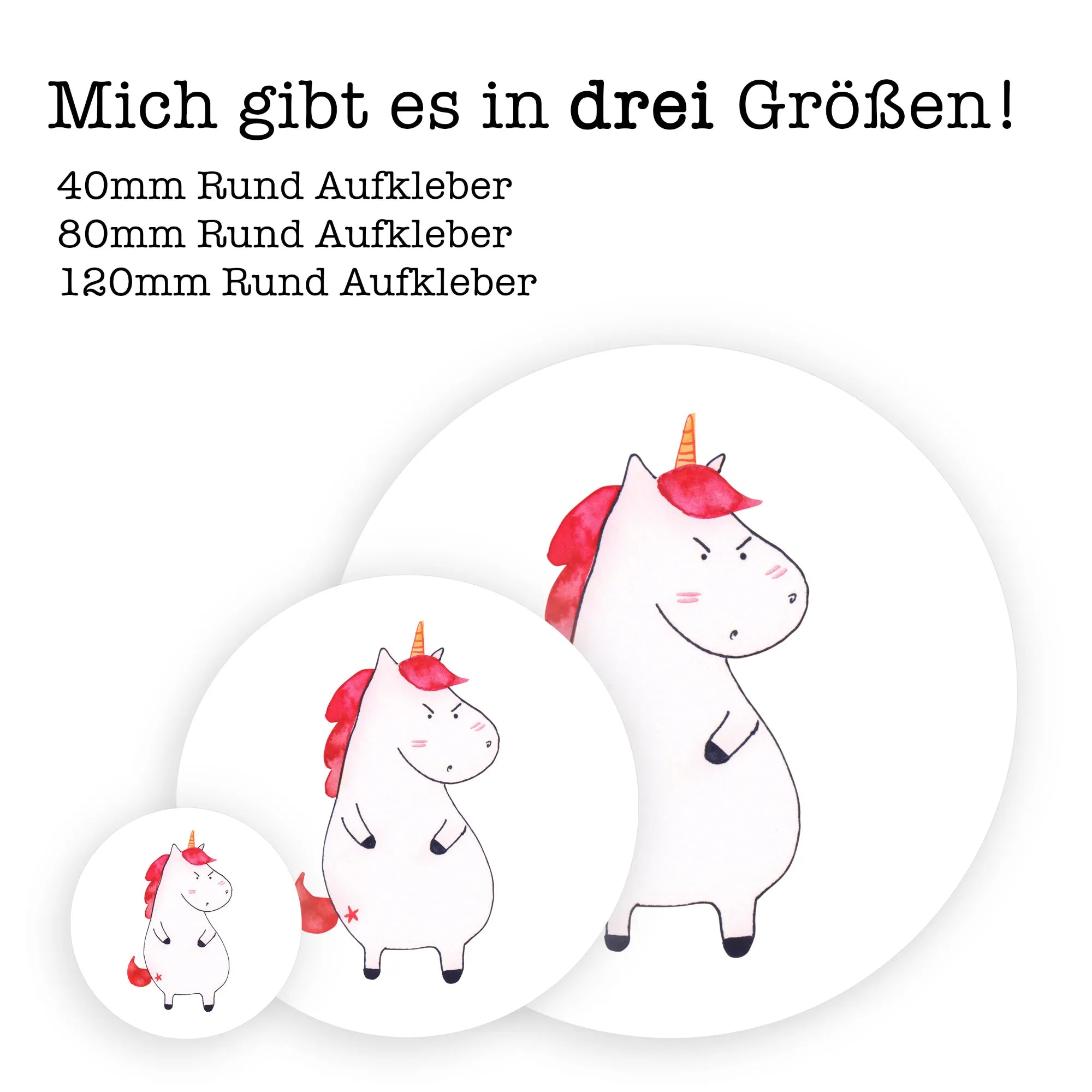 40mm okrągła naklejka Jednorożec gniew - 40mm Rund Aufkleber - z napisem