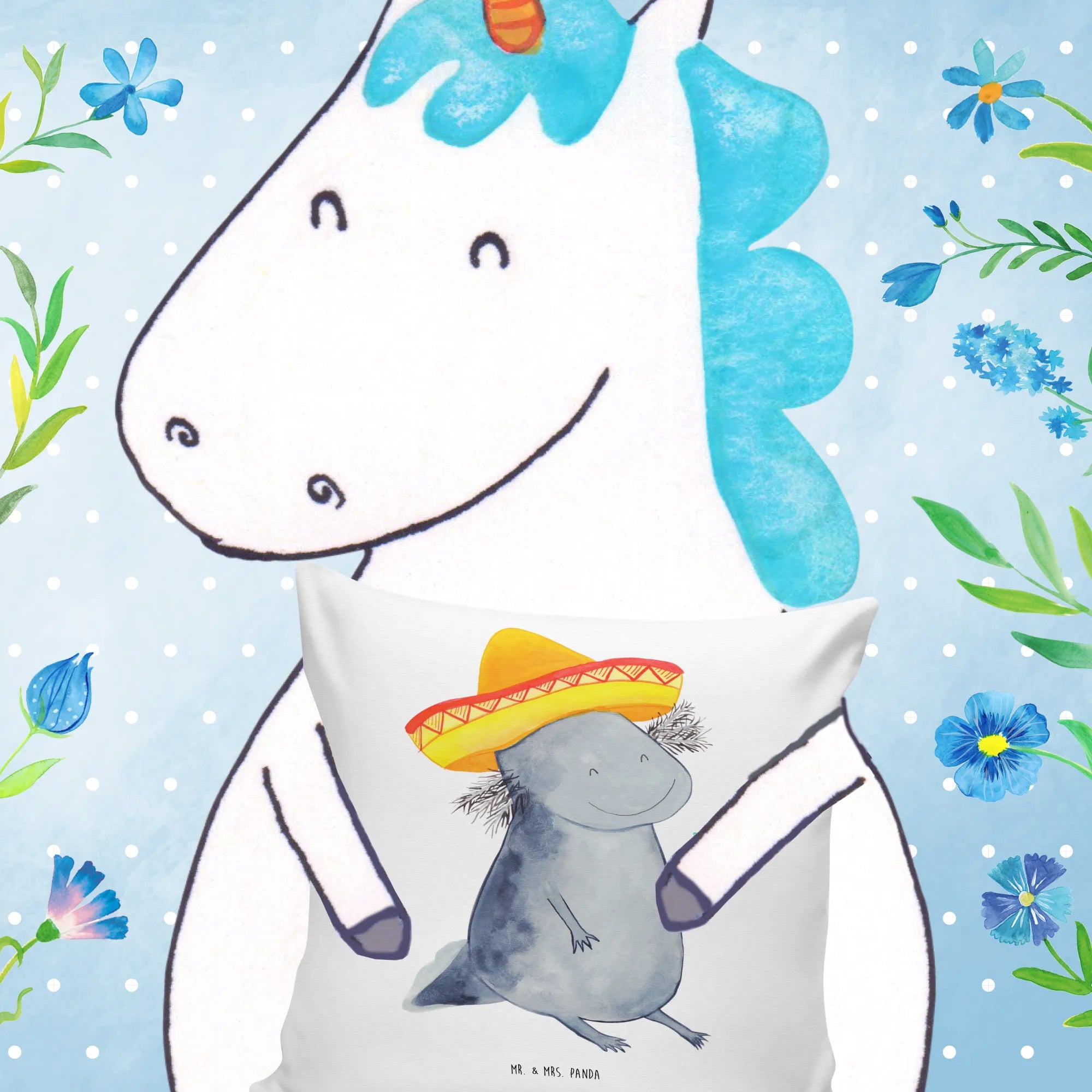 40x40 poduszka Aksolotl Tequila - z napisem - biały