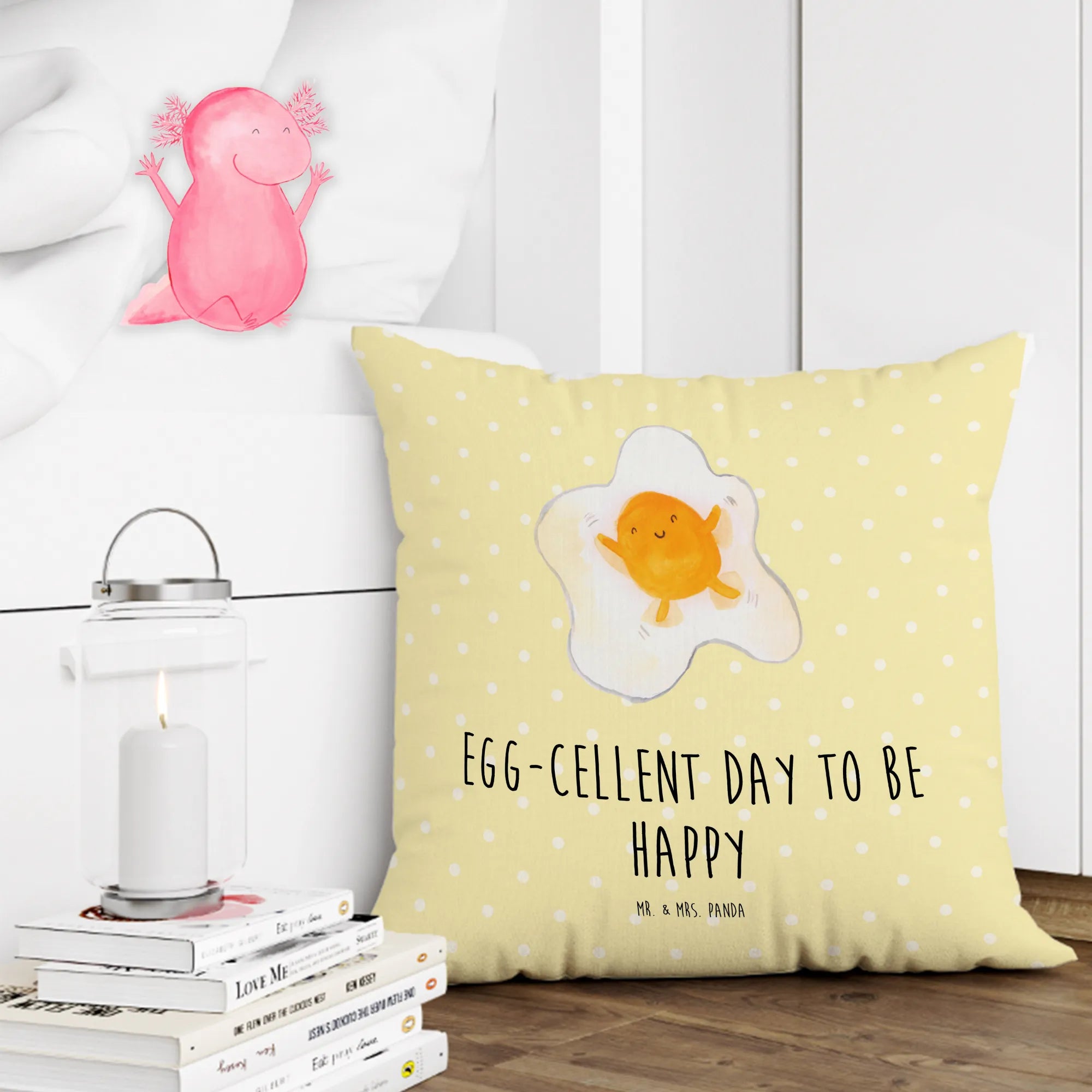 40x40 poduszka jajko sadzone jajko - z napisem - Pastelowy żółty