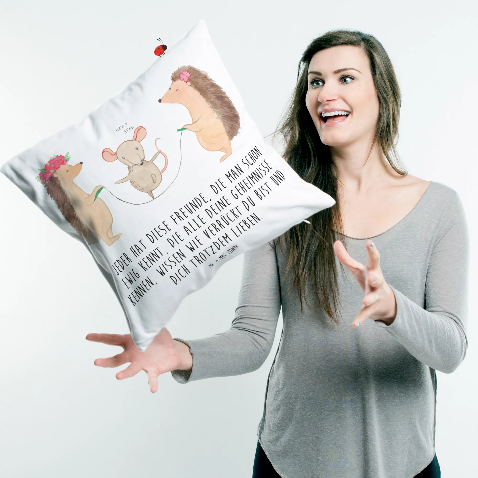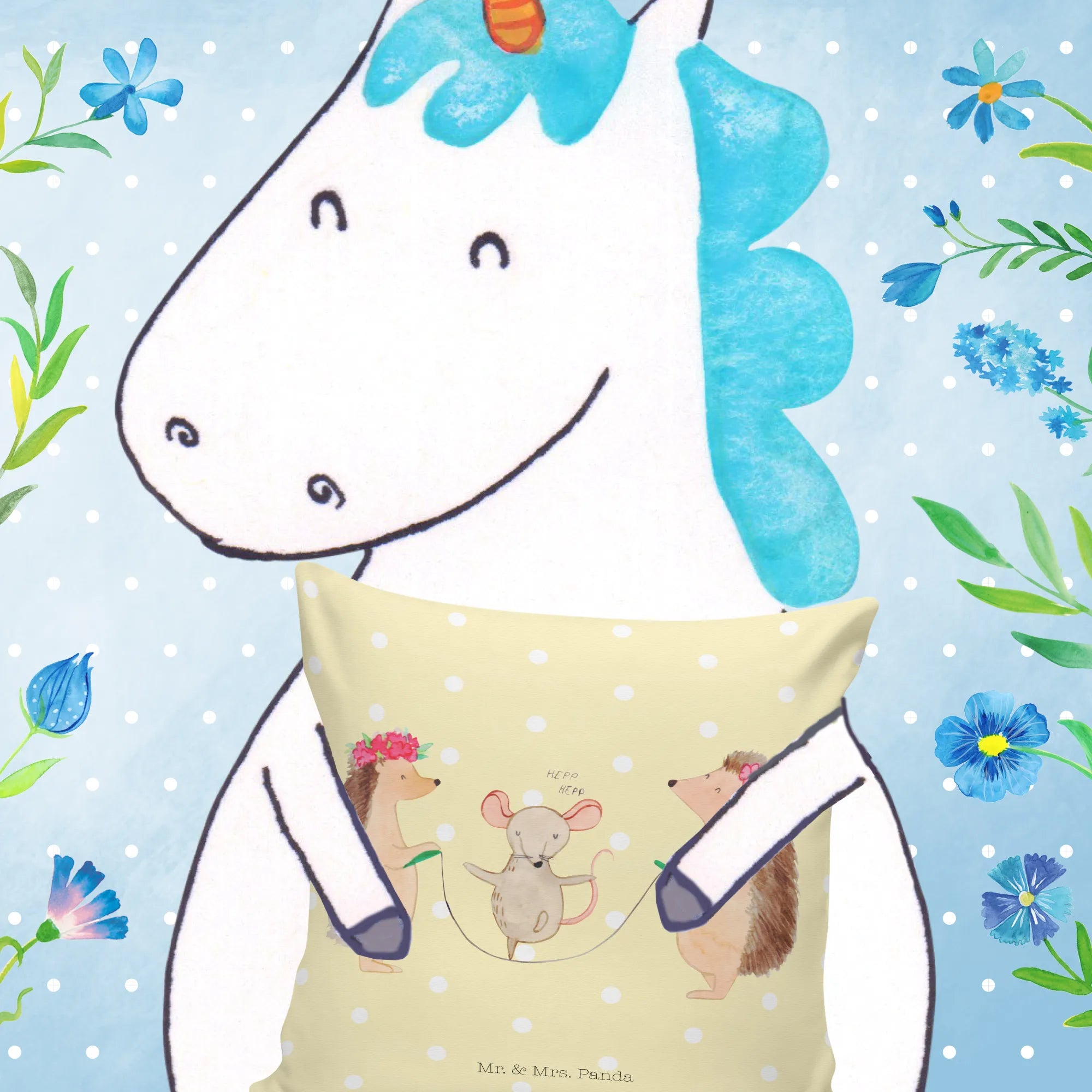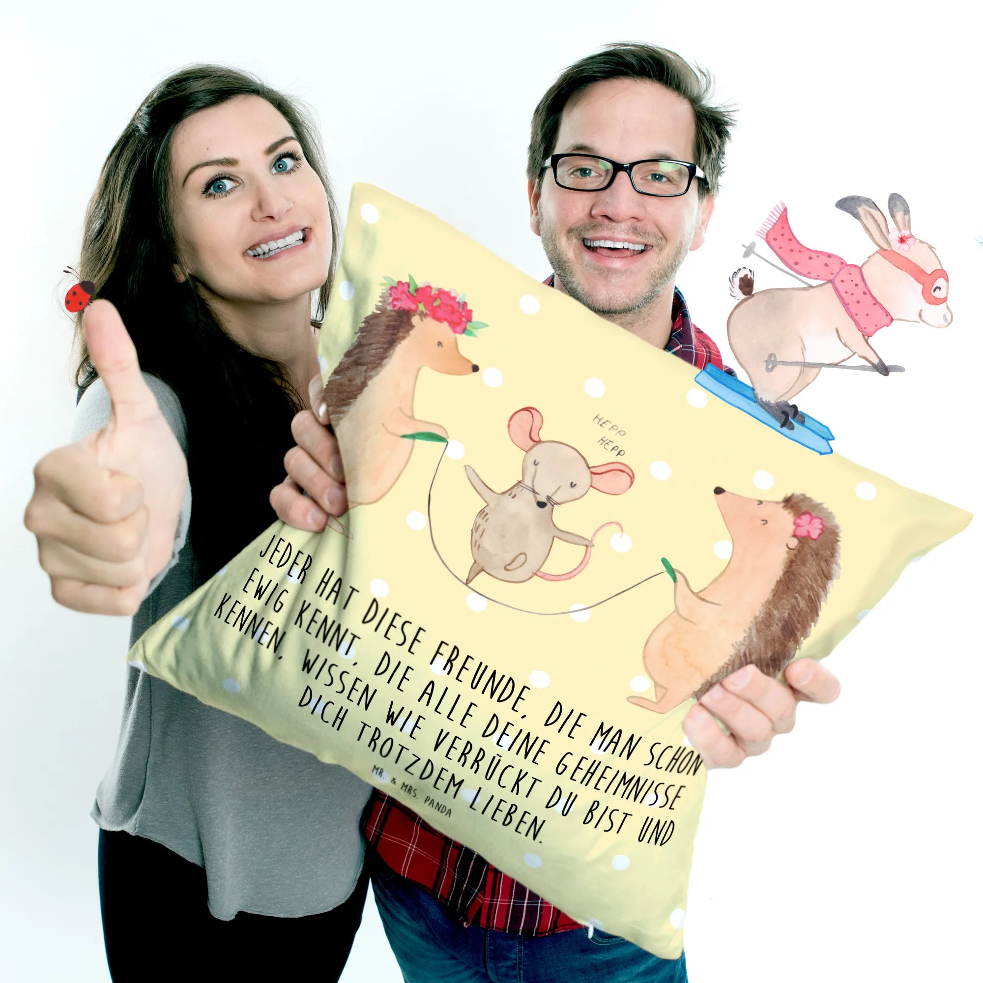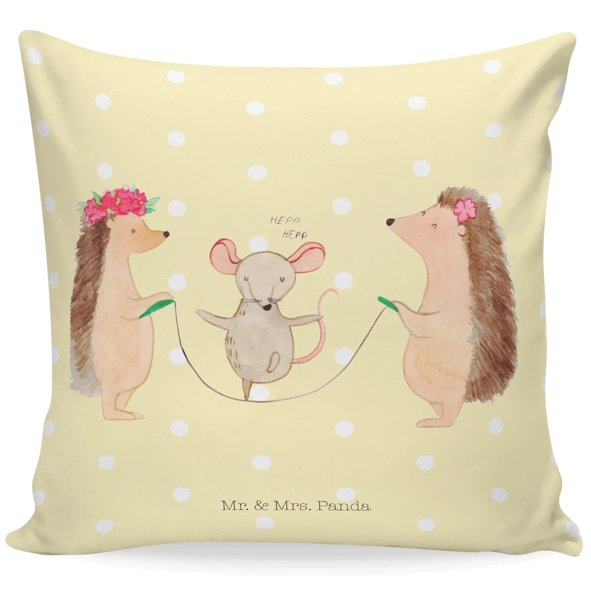 40x40 poduszka jeż Skakanie na skakance - z napisem - Żółty Pastel