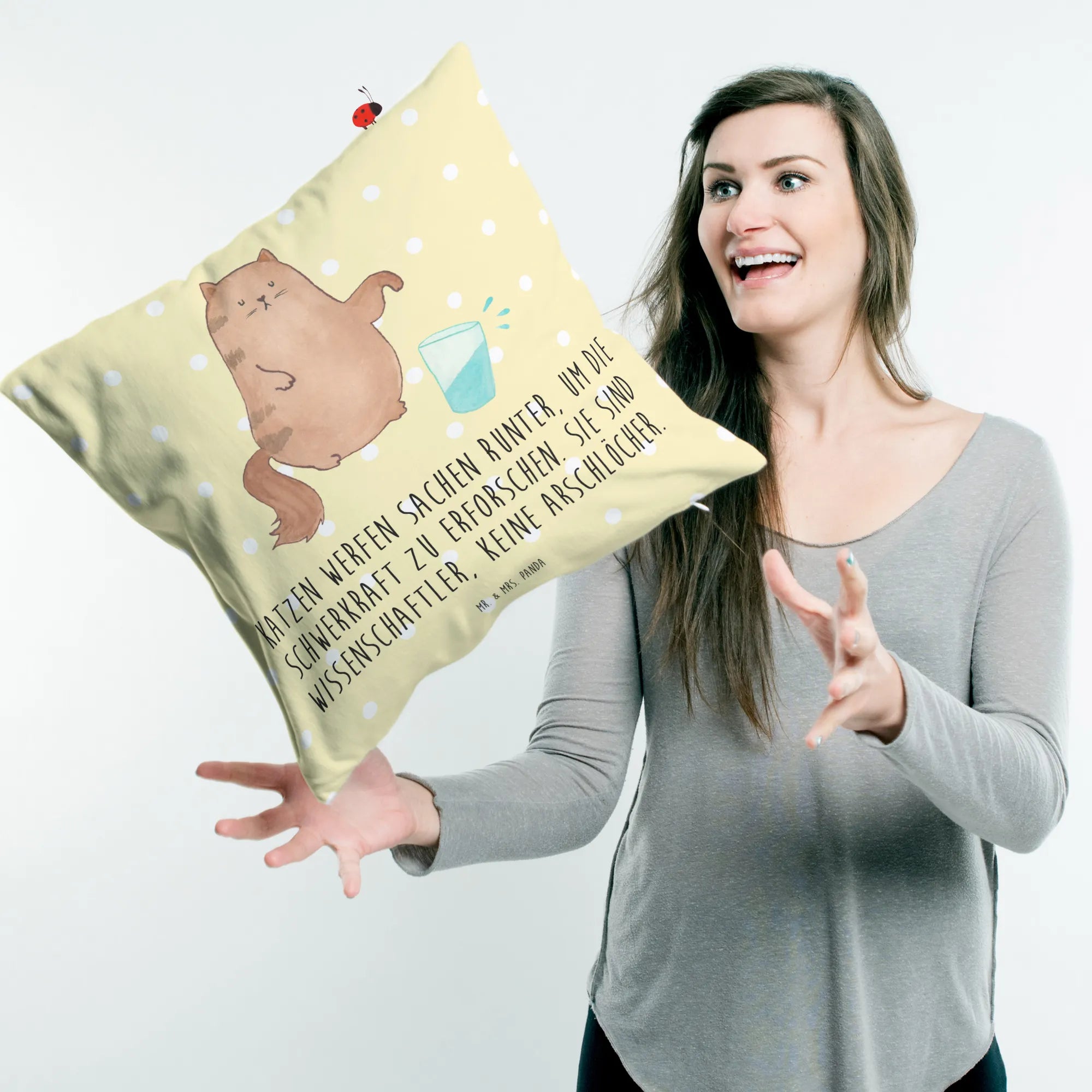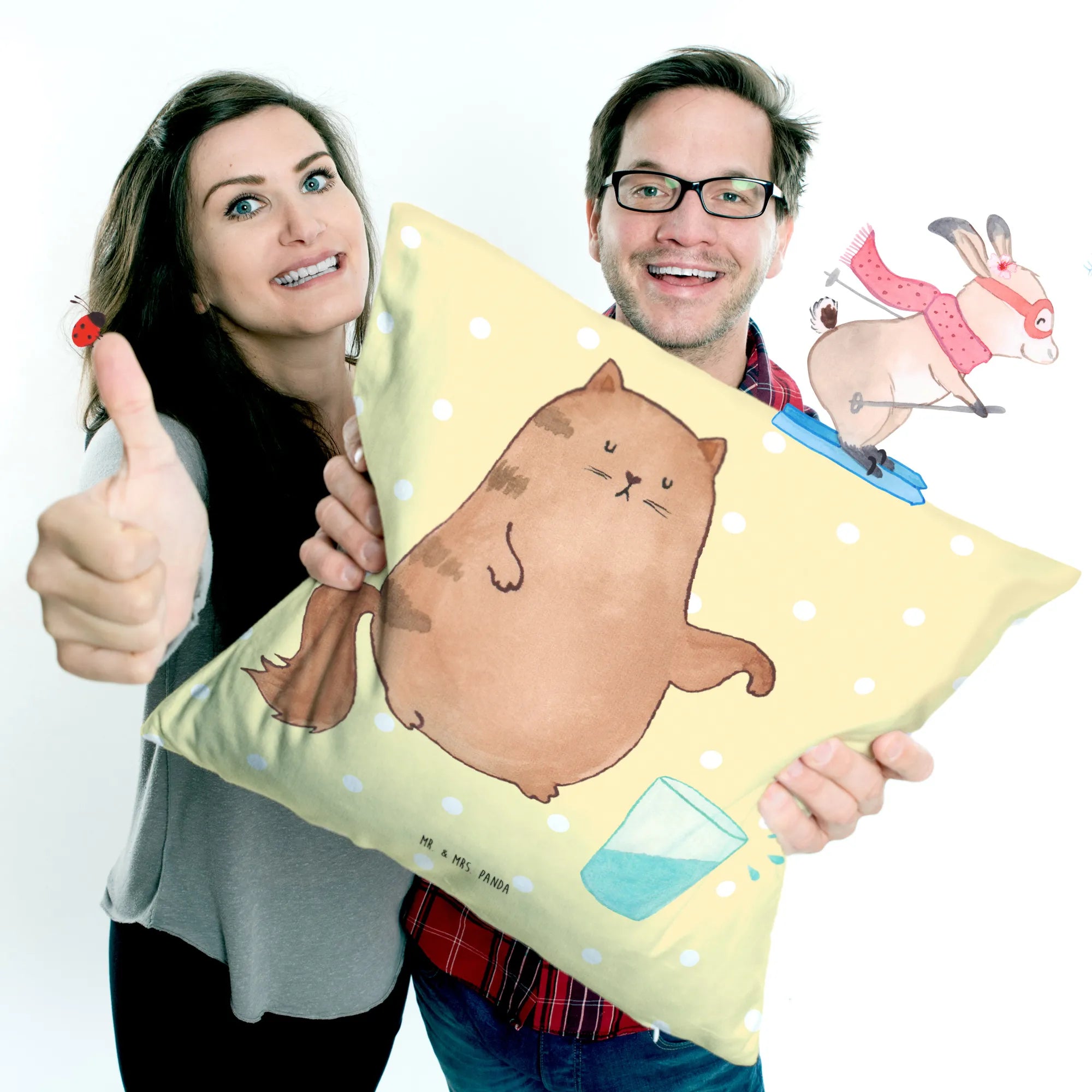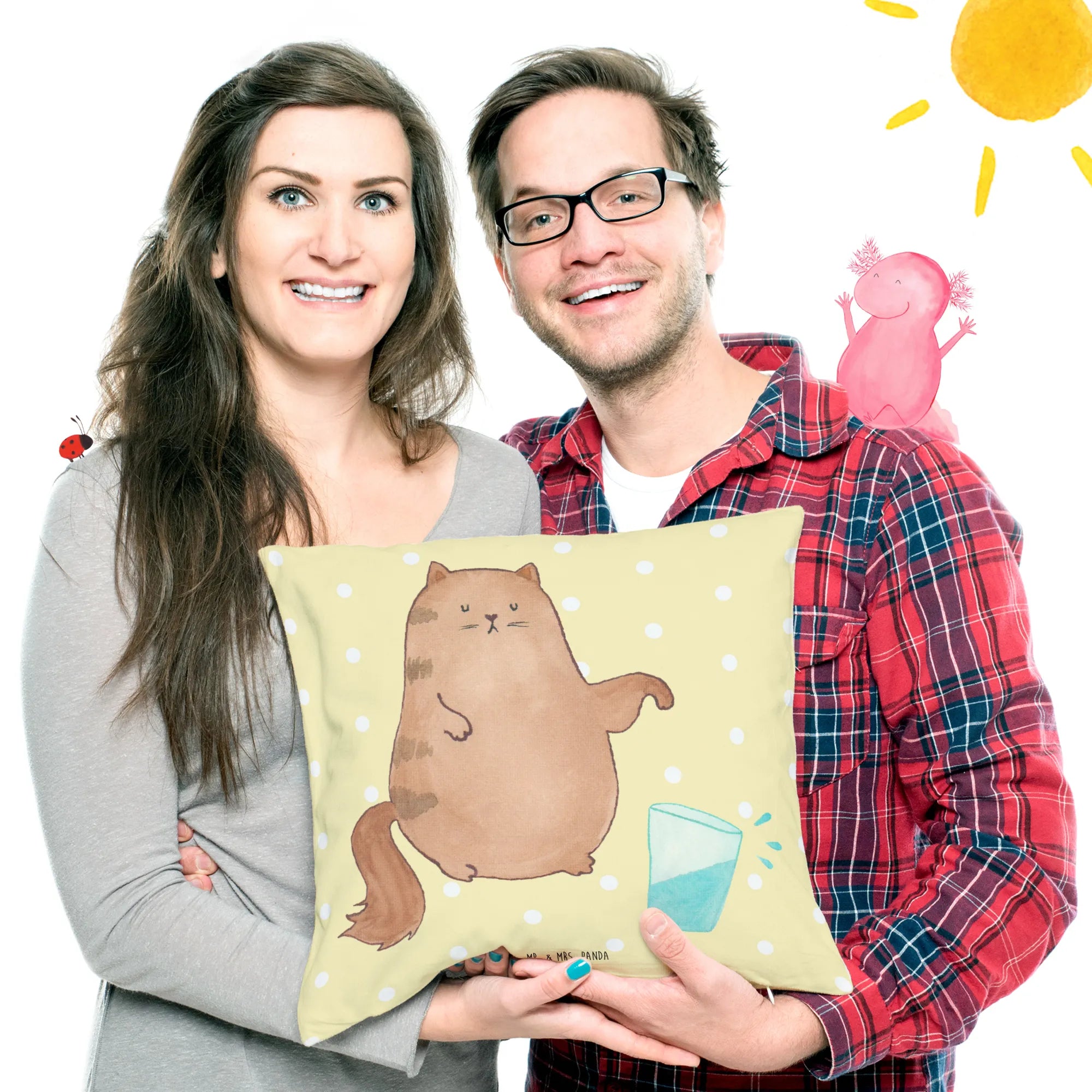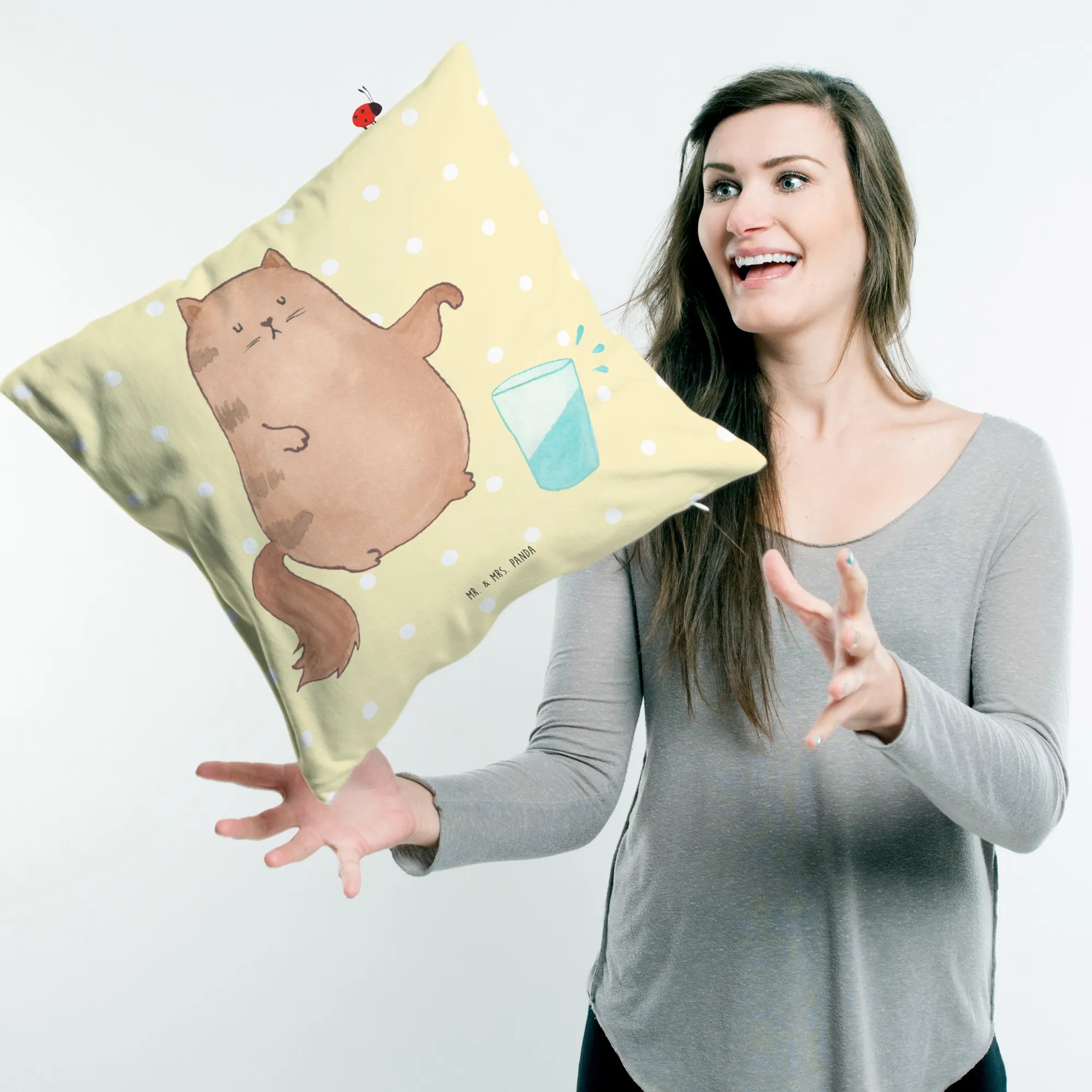 40x40 poduszka kot szklanka wody - z napisem - Żółty Pastel