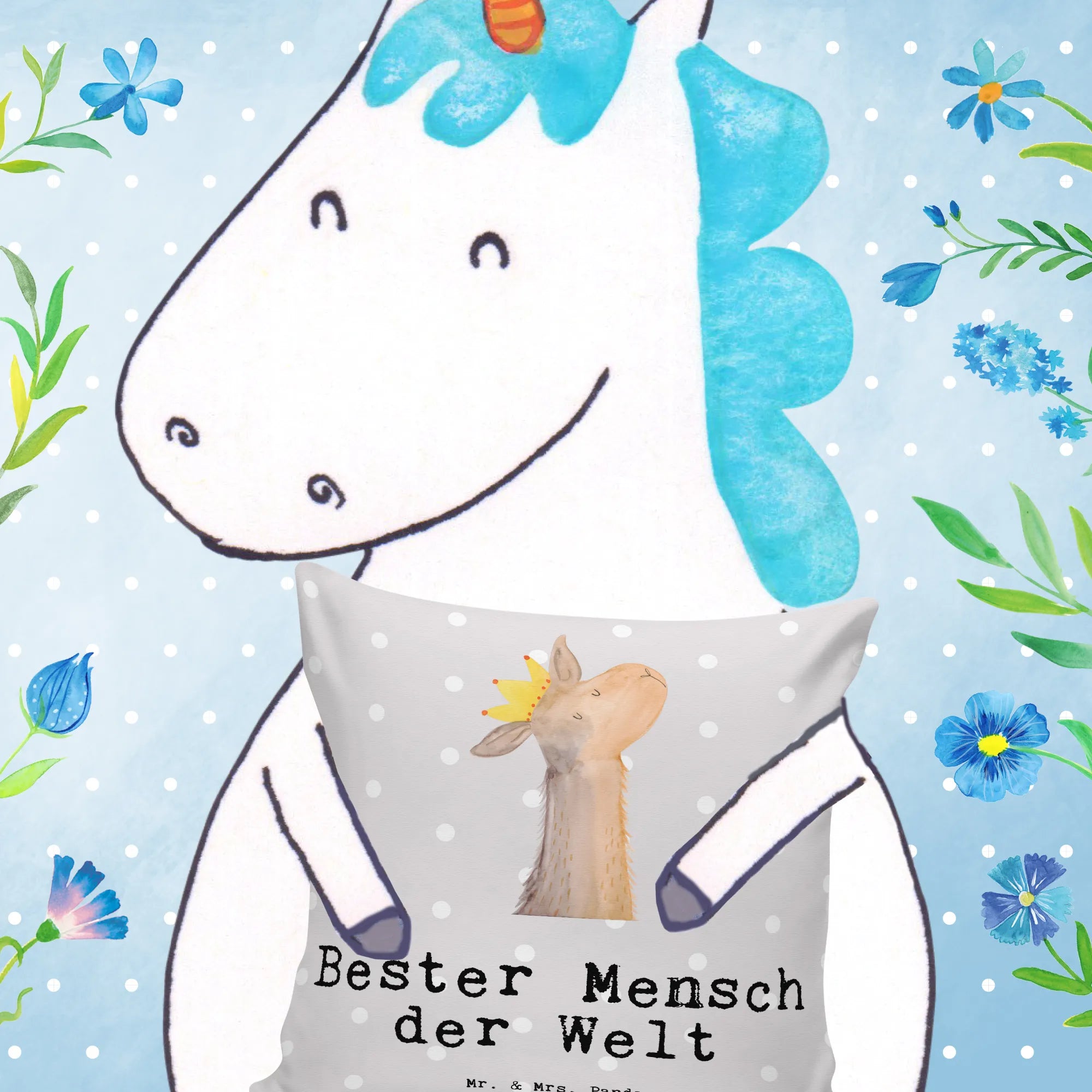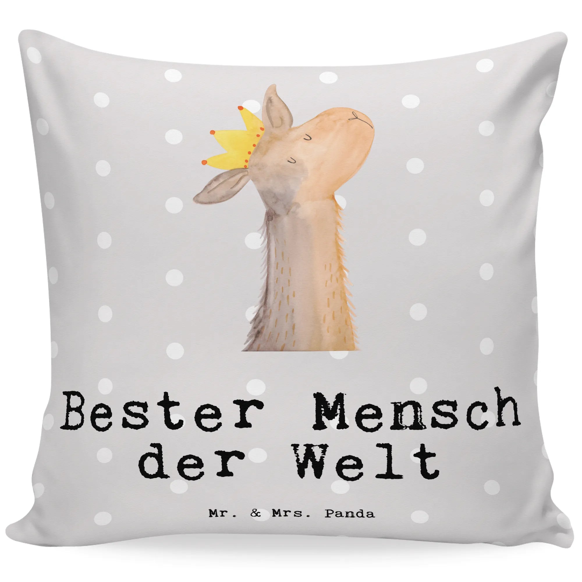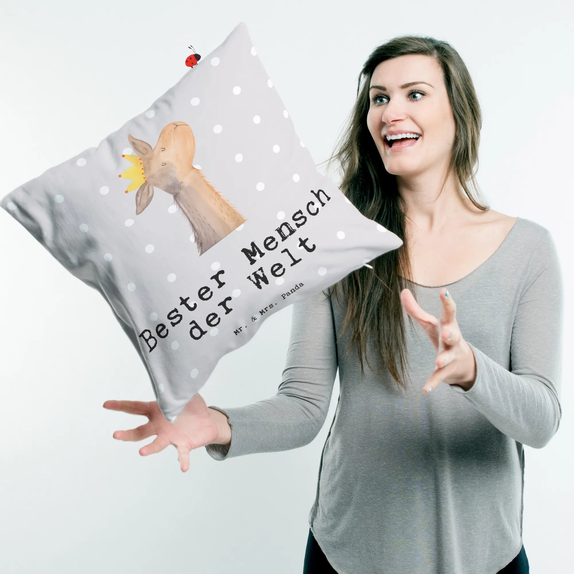40x40 poduszka lama Najlepszy człowiek na świecie - Szary Pastel