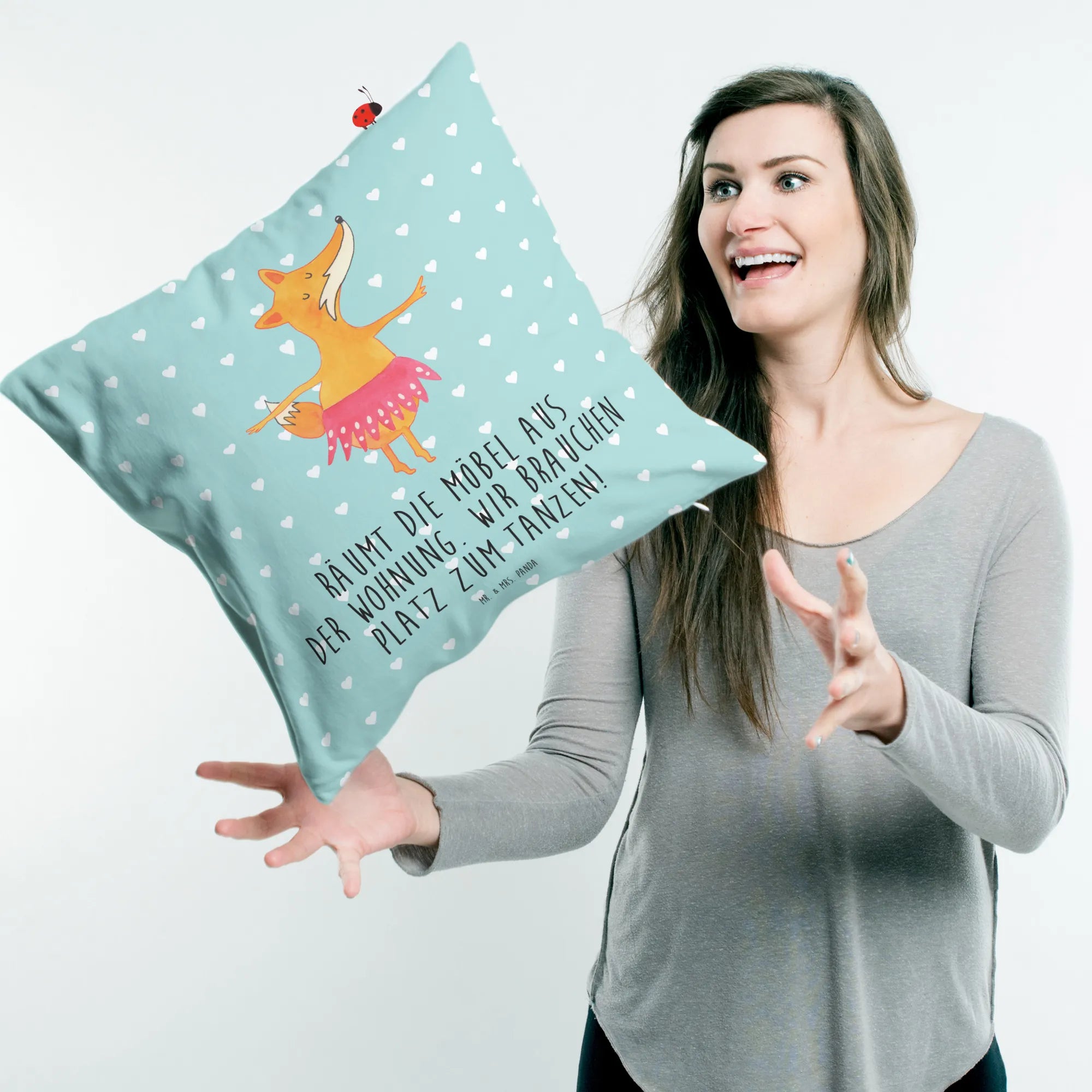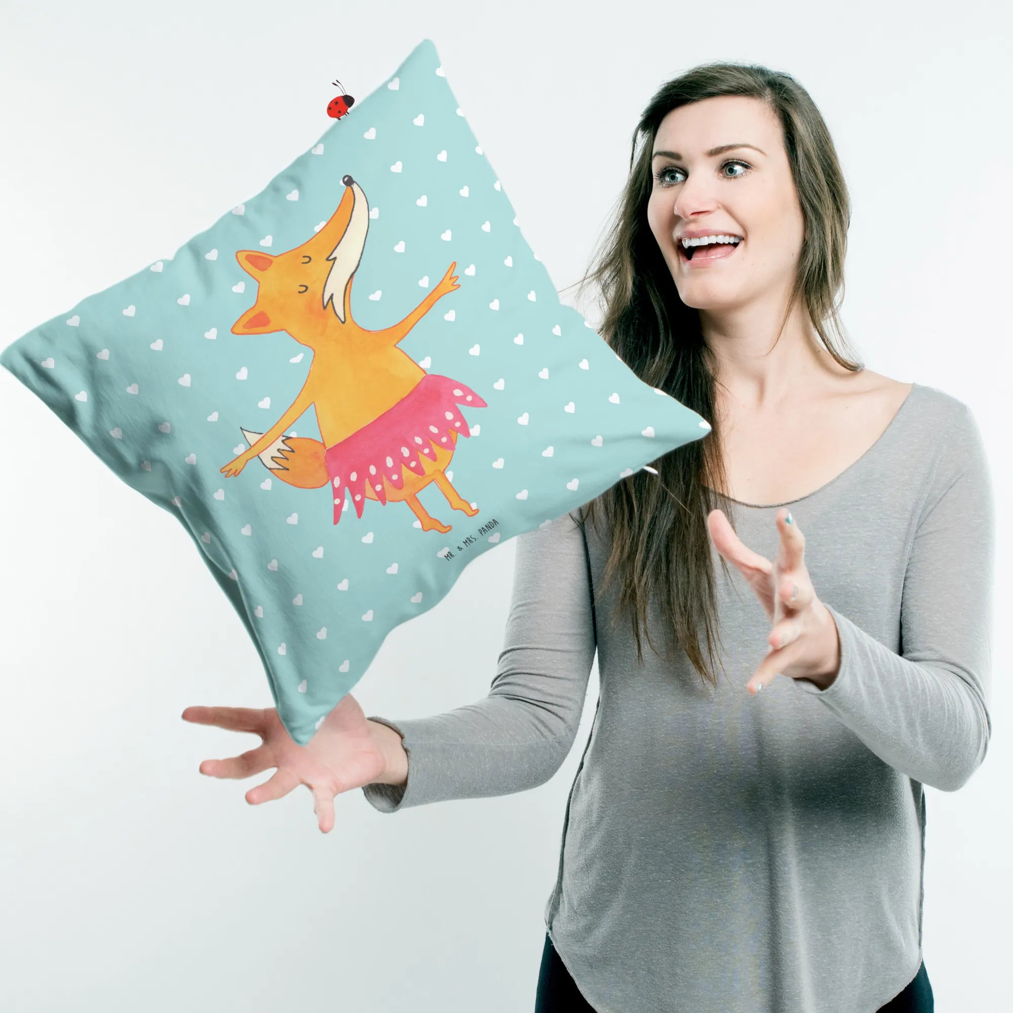 40x40 poduszka Lis baletnica - z napisem - Biały