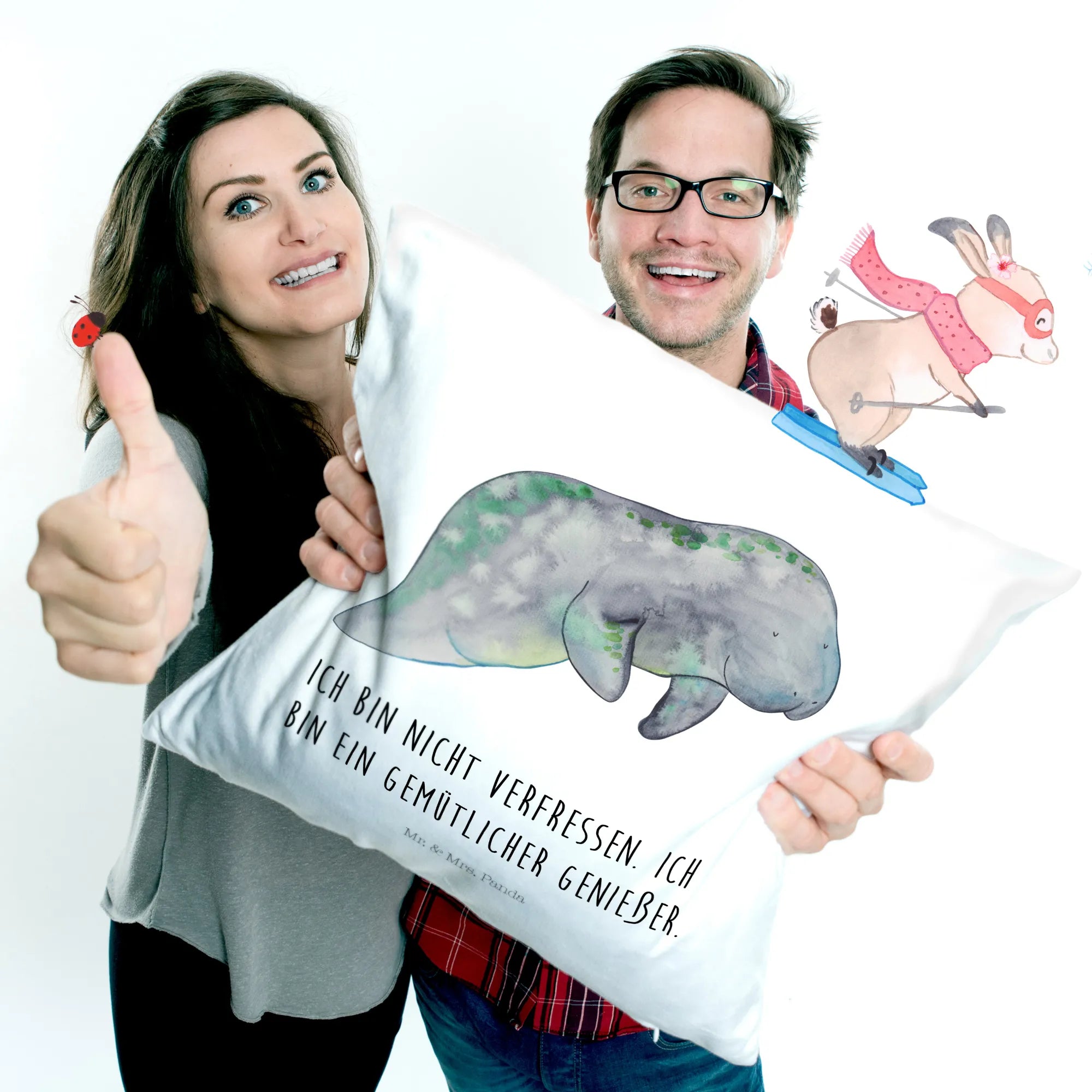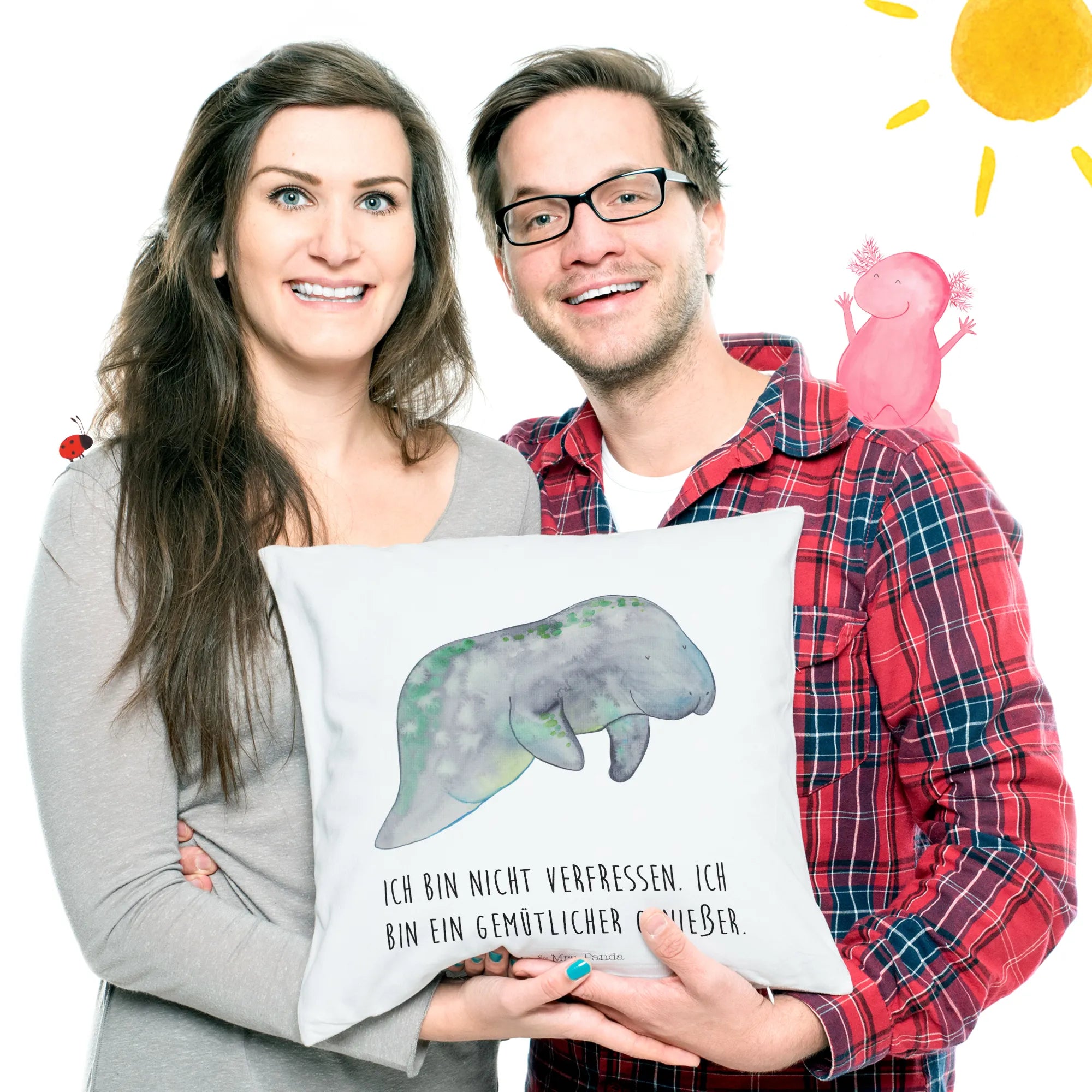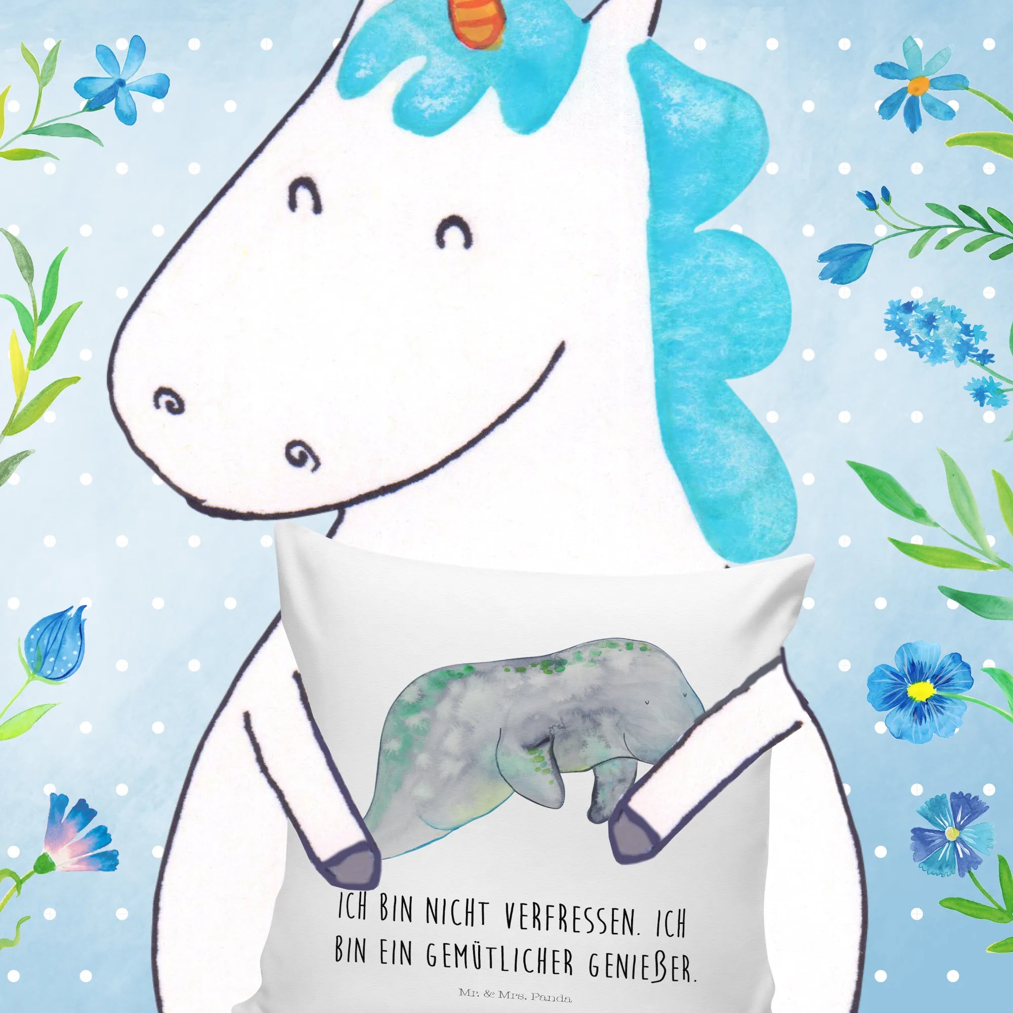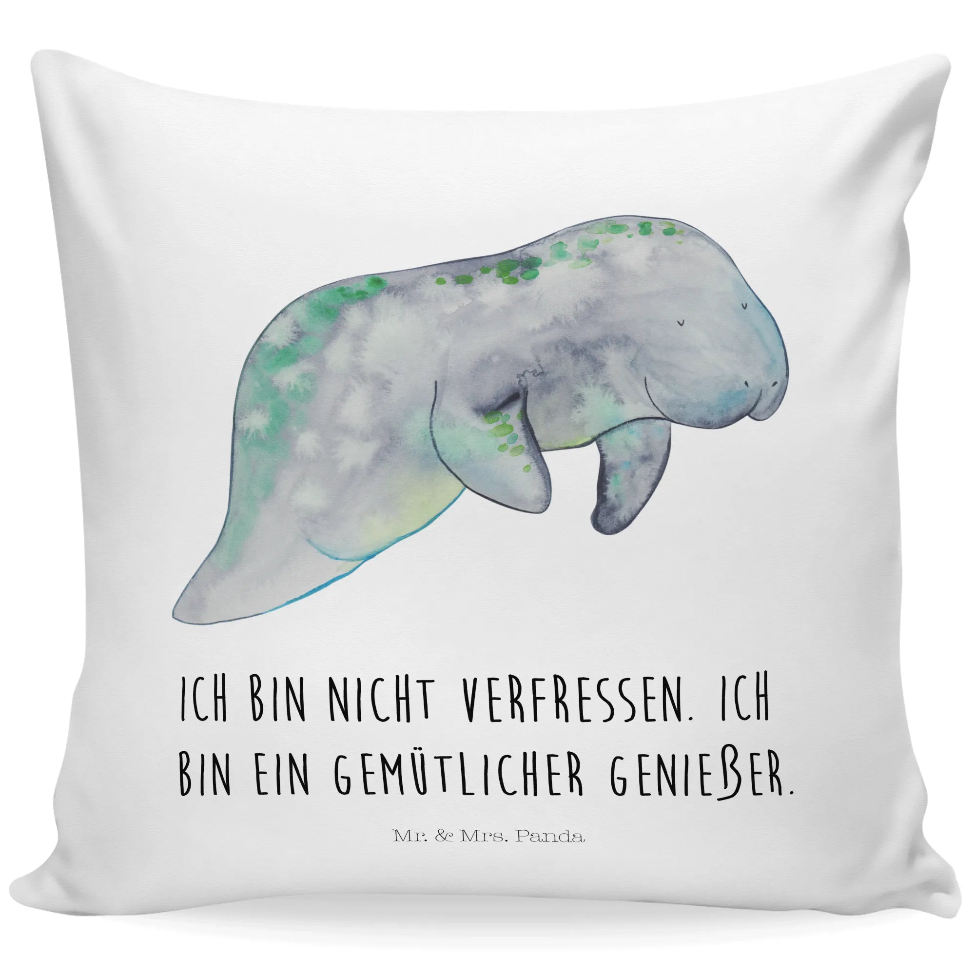 Suchst du ein kuscheliges Geschenk, das Meer, Gemütlichkeit und ein Augenzwinkern vereint? Unser 40x40 Kissen „Seekuh chillt“ von Mr. & Mrs. Panda bringt Urlaubsstimmung direkt auf dein Sofa. Die handgezeichnete Aquarell-Seekuh in sanften Blau- und Grüntönen wirkt beruhigend und harmonisch – perfekt für gemütliche Stunden.