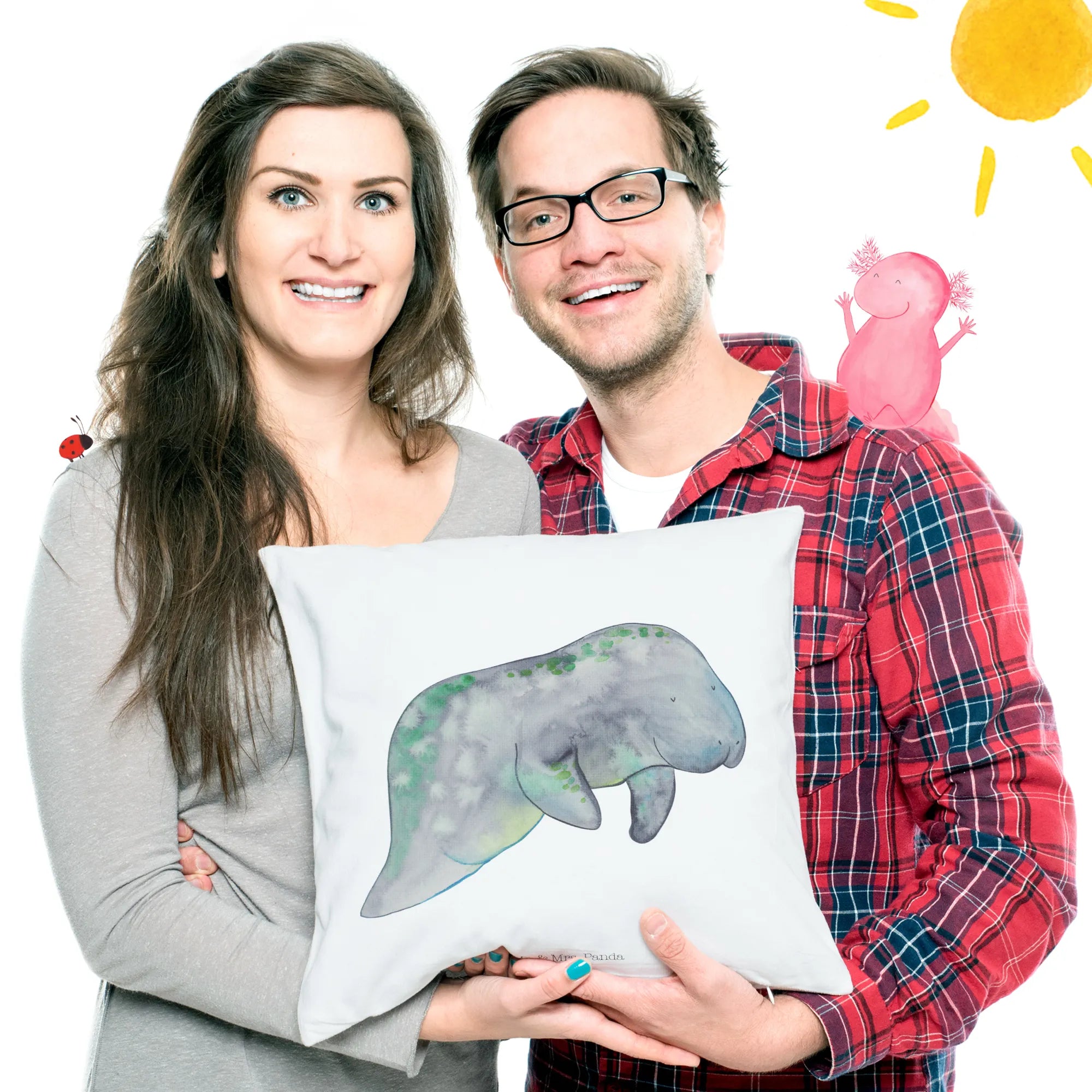 Teil der Meerestiere-Kollektion: Die Seekuh ist Teil unserer liebevoll gestalteten Kollektion mit Fischen, Walen, Krabben und vielen anderen Bewohnern der Tiefsee. Jedes Motiv wurde mit Aquarelltechnik handgezeichnet und macht sich hervorragend als Dekokissen oder Kuschelkissen.