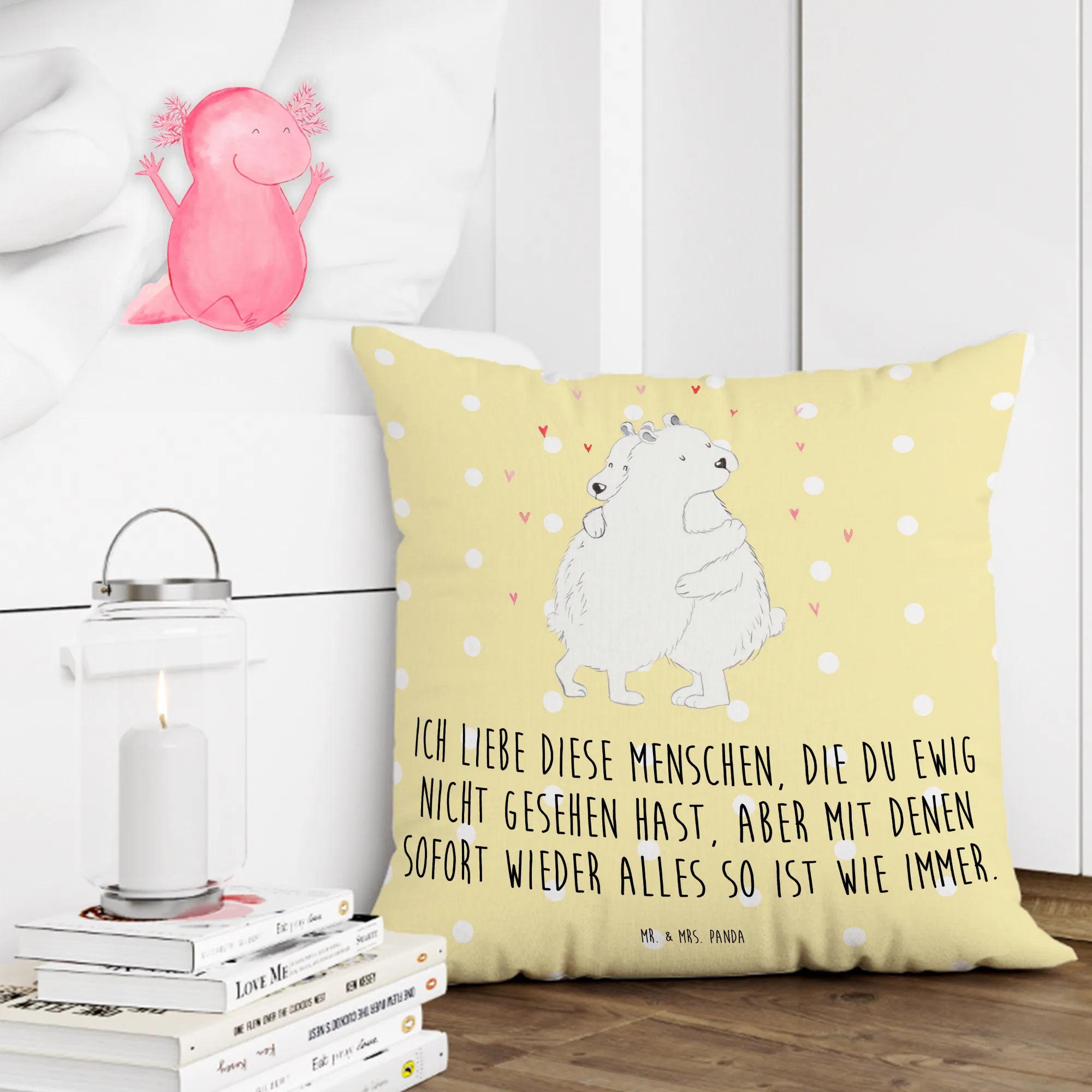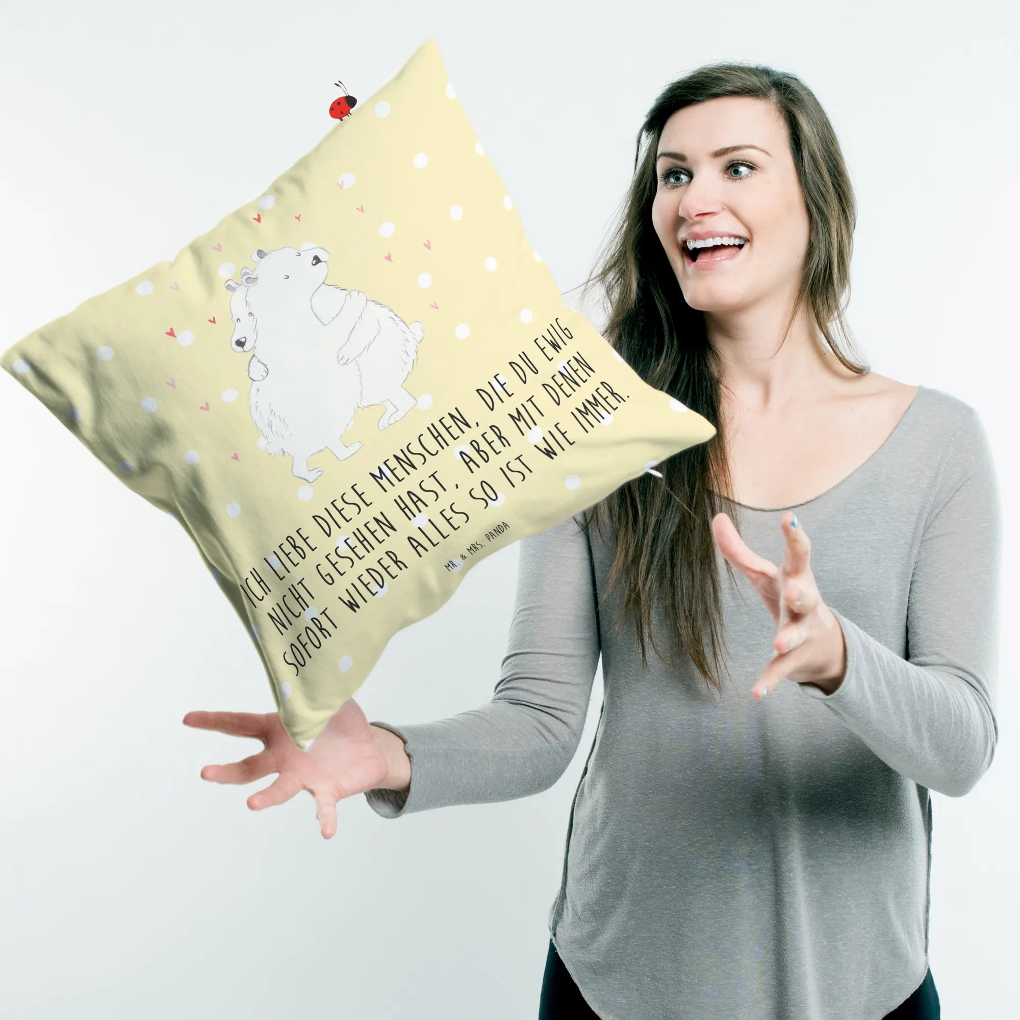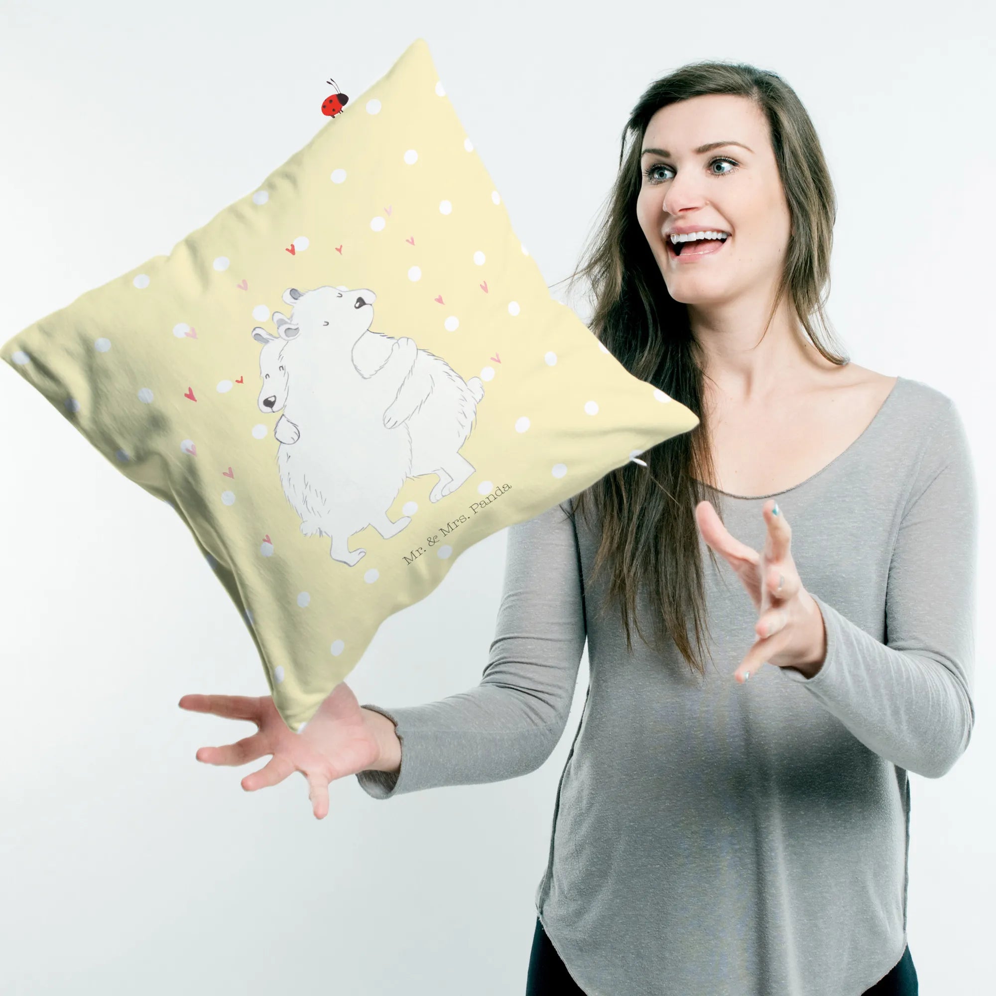 40x40 poduszka Niedźwiedź polarny obejmować - z napisem - Pastelowy żółty