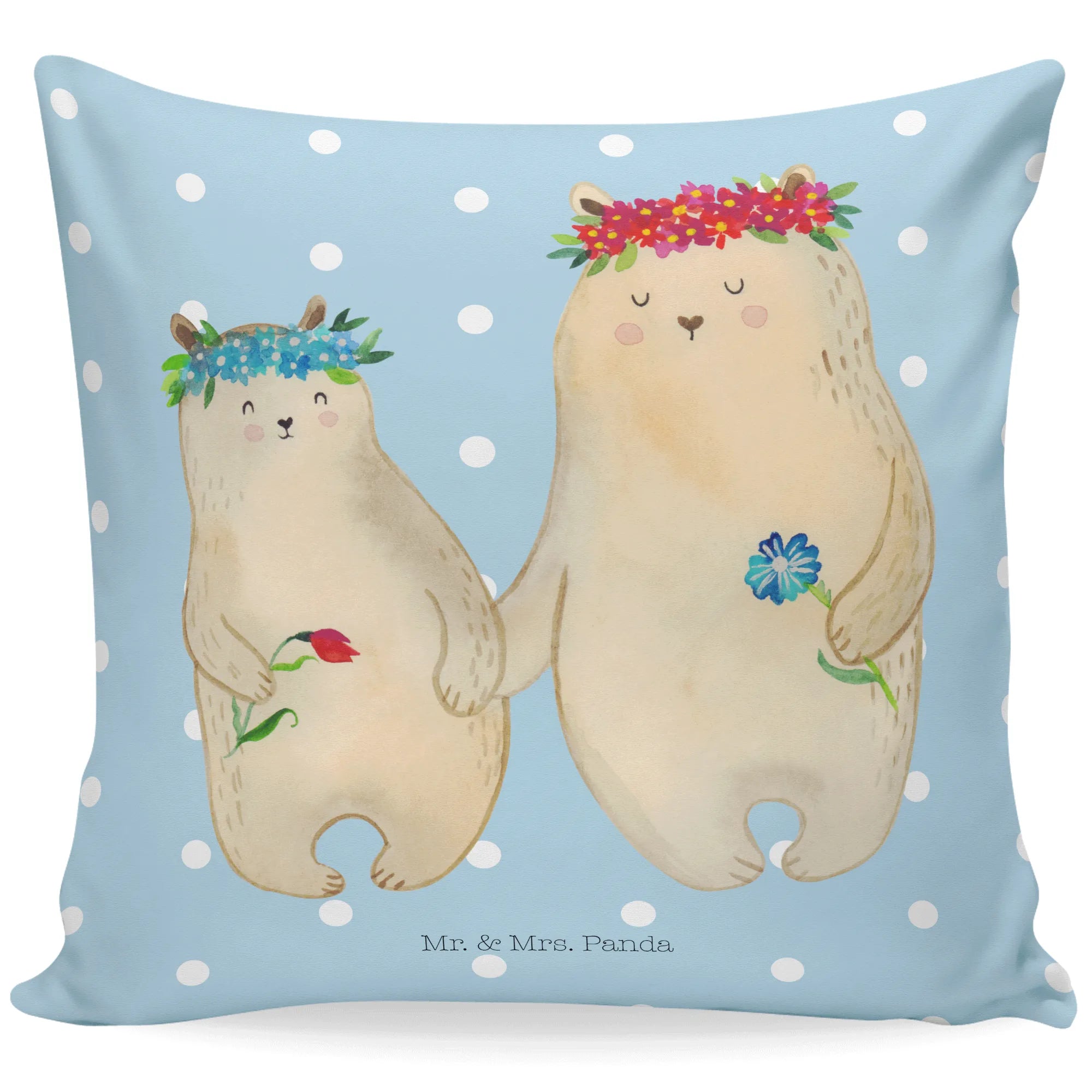 40x40 poduszka Niedźwiedzie z wianuszkiem - z napisem - Pastelowy niebieski