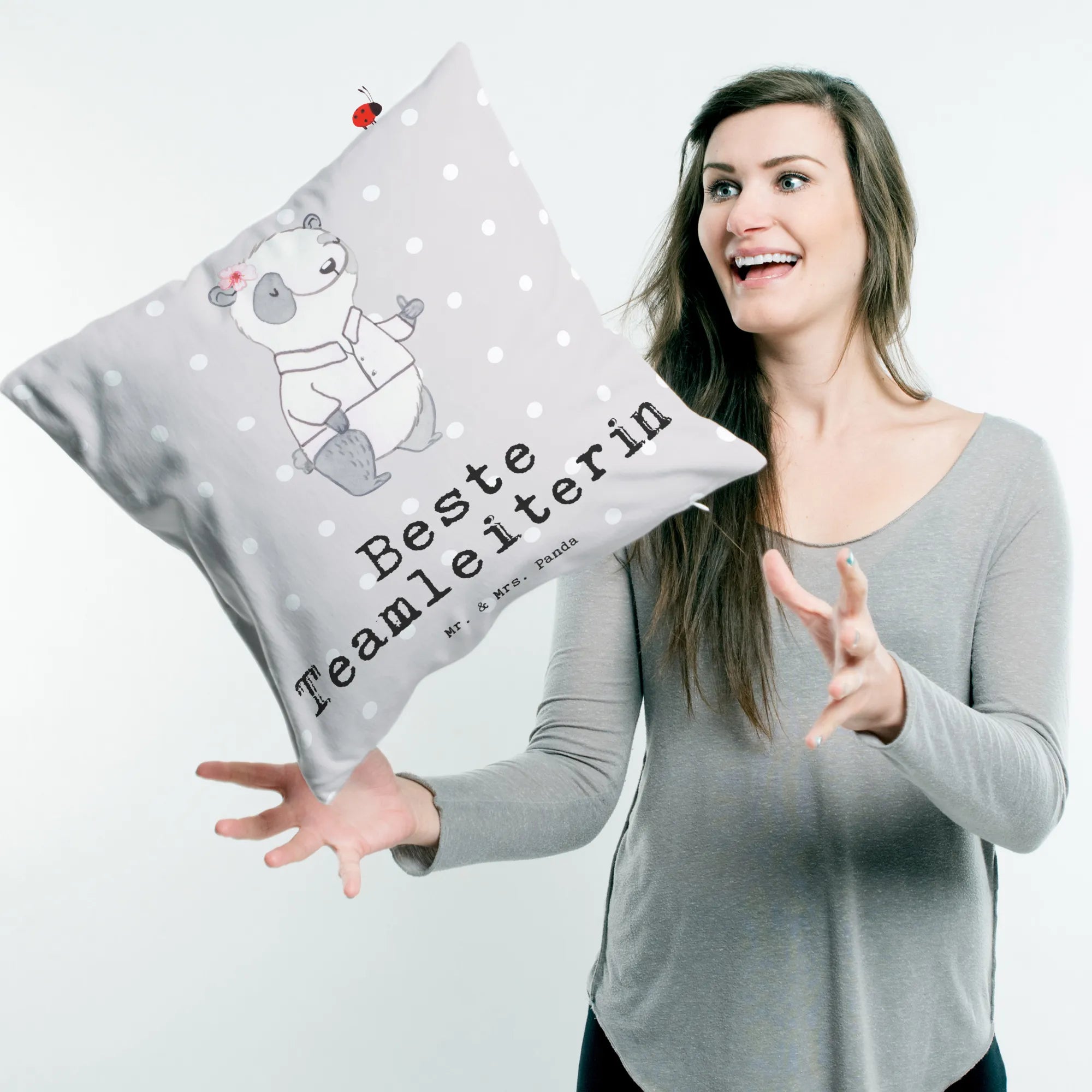 40x40 poduszka Panda Najlepsza kierowniczka zespołu - Pastelowy szary