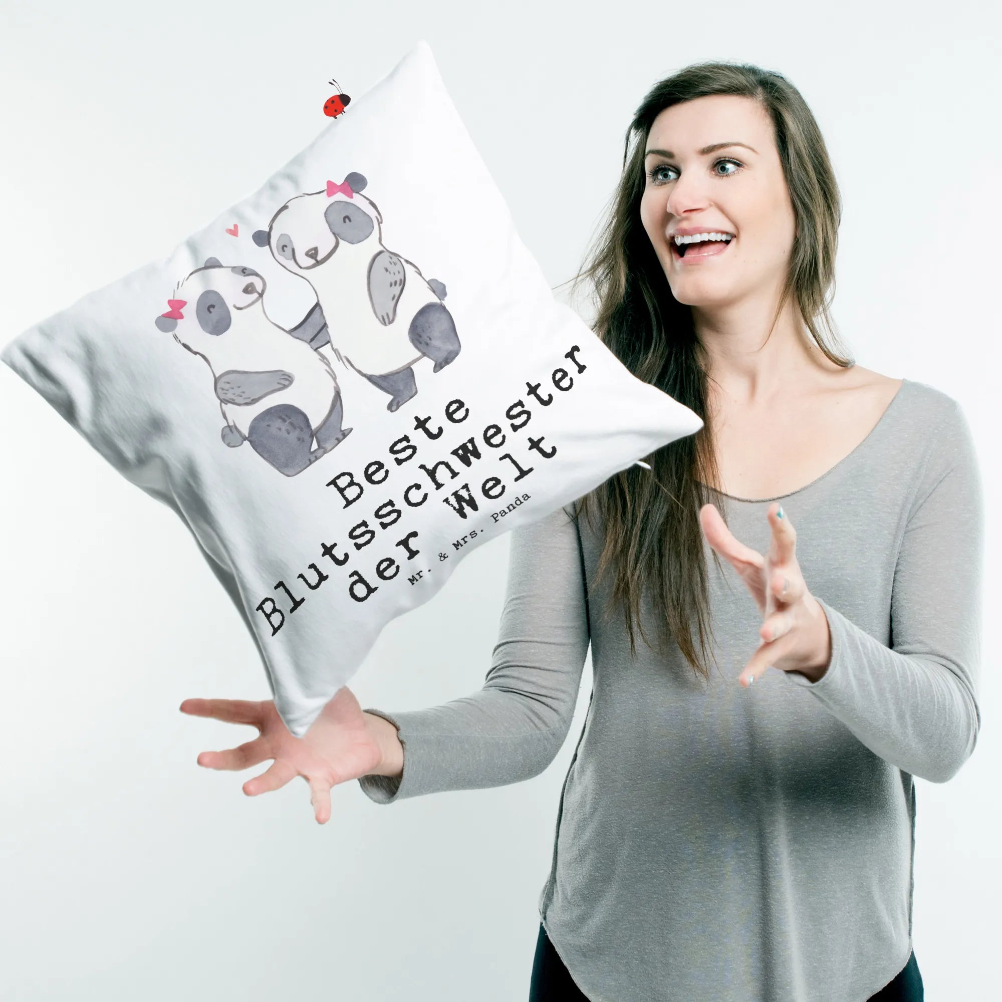 40x40 poduszka Panda Najlepsza siostra od krwi na świecie - biały