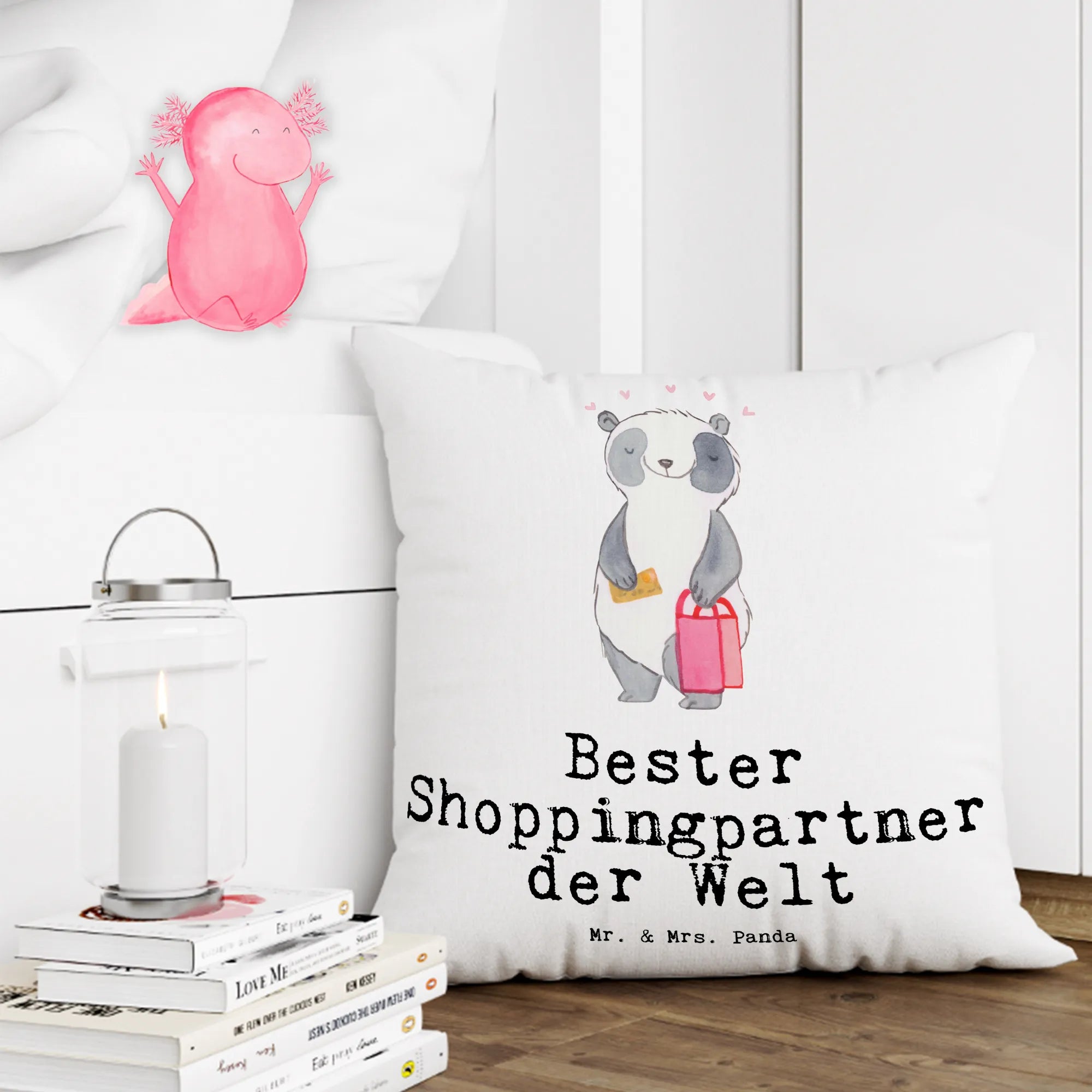 40x40 poduszka Panda Najlepszy partner zakupowy na świecie - biały