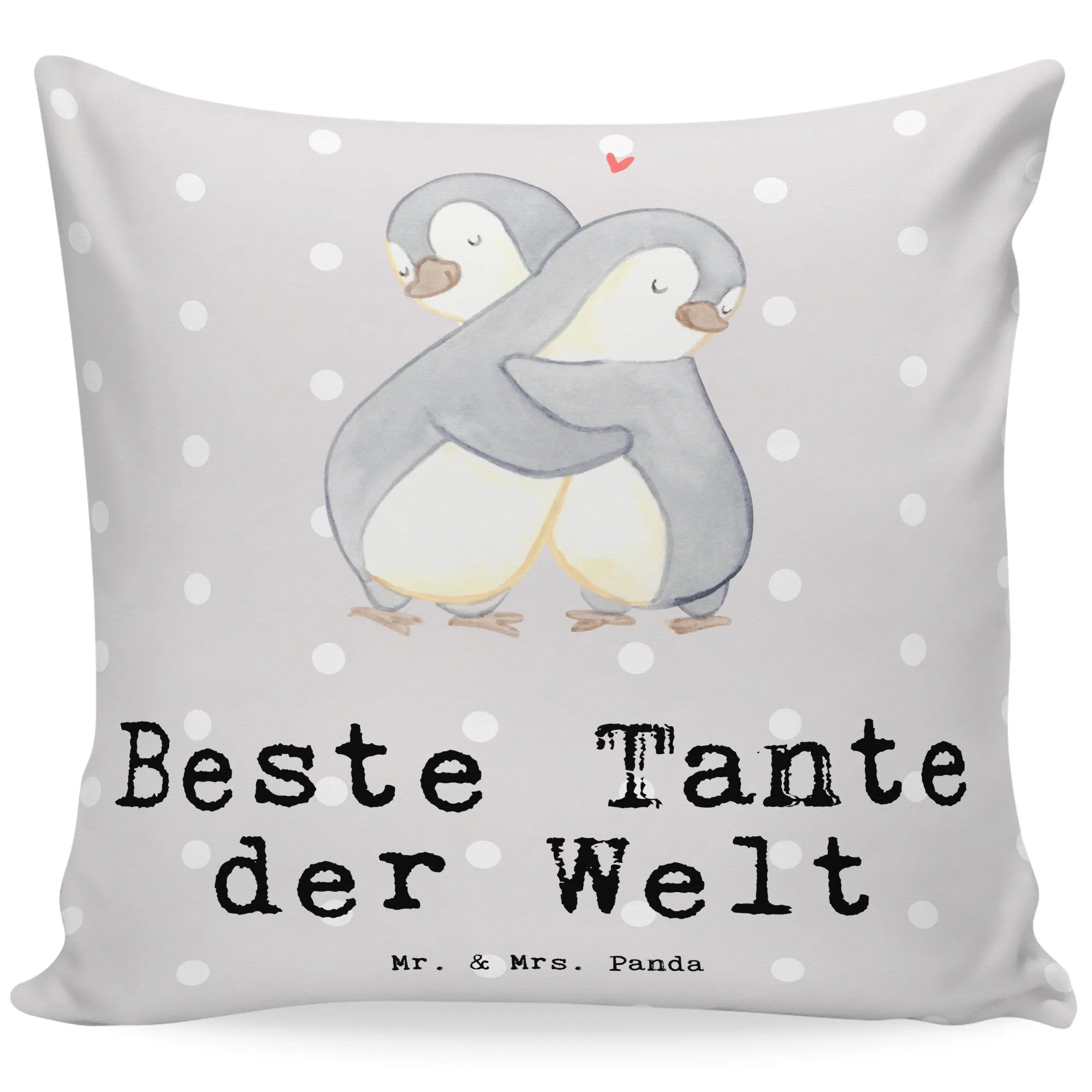 40x40 poduszka pingwin Najlepsza ciocia na świecie - Biały