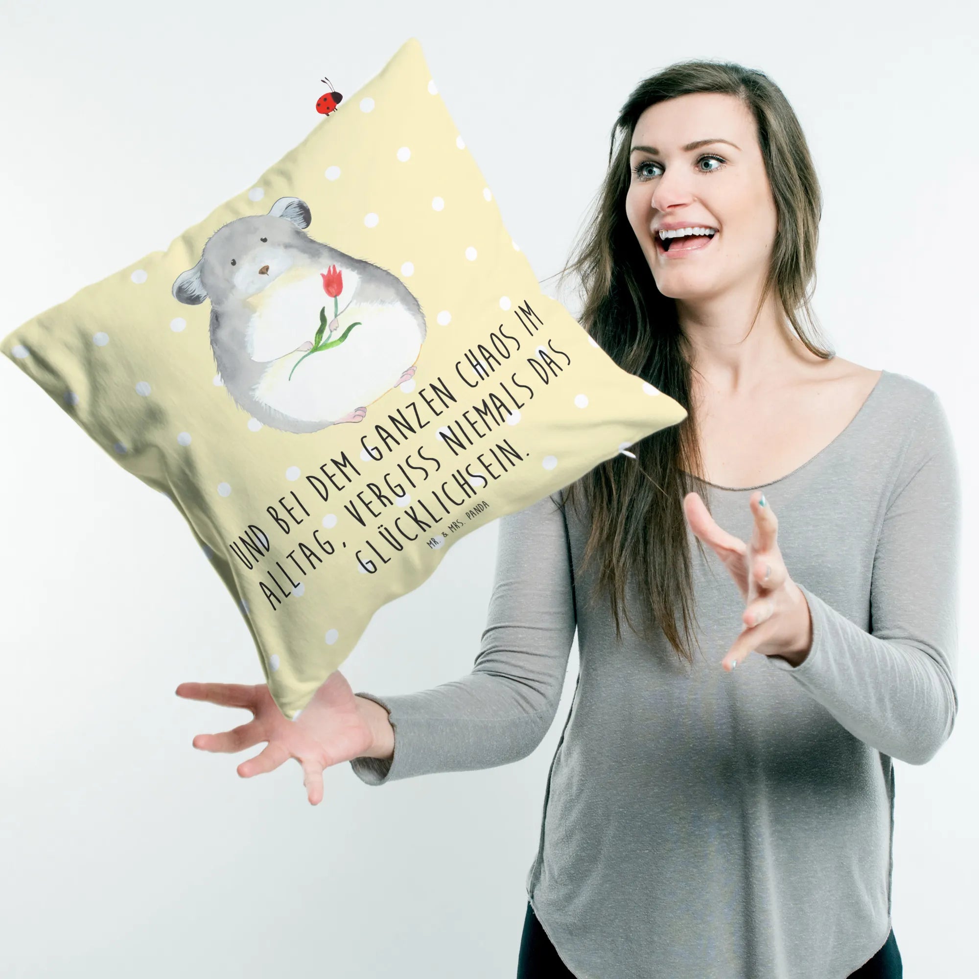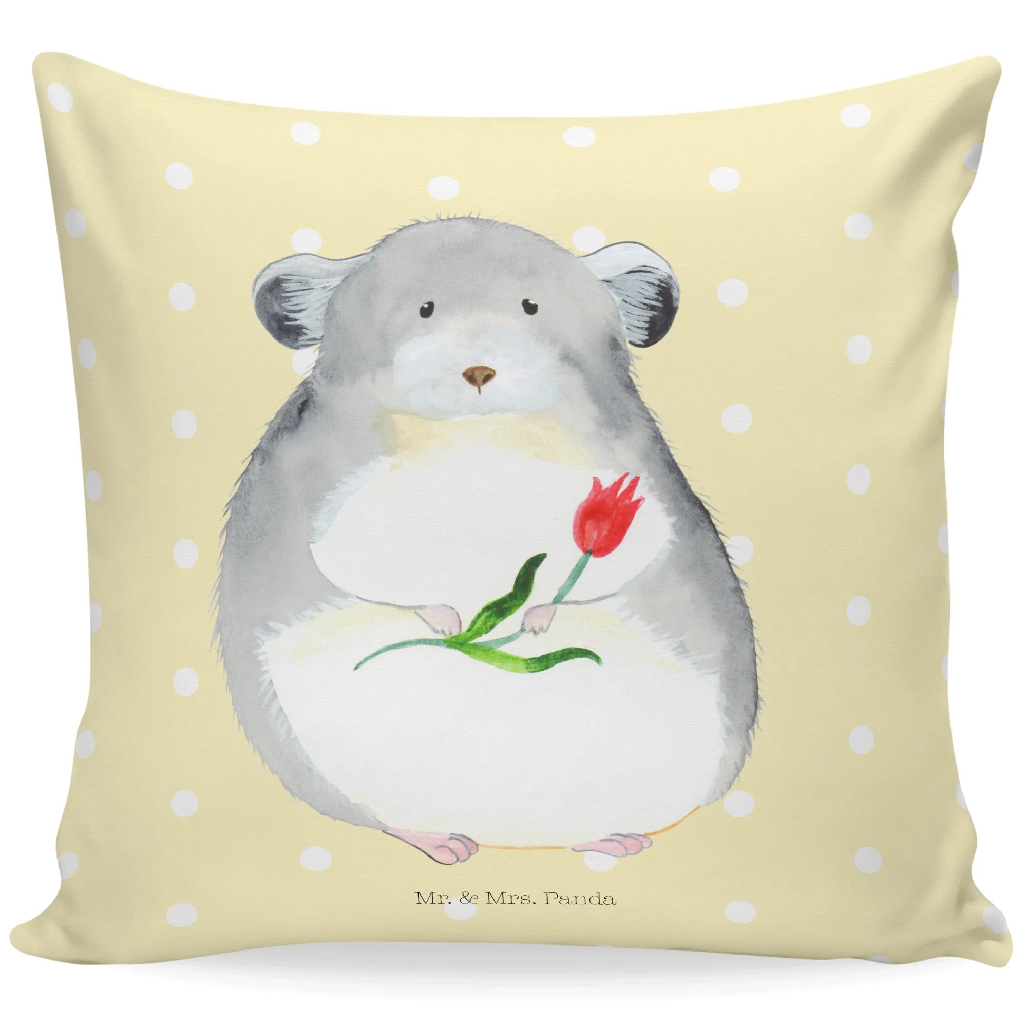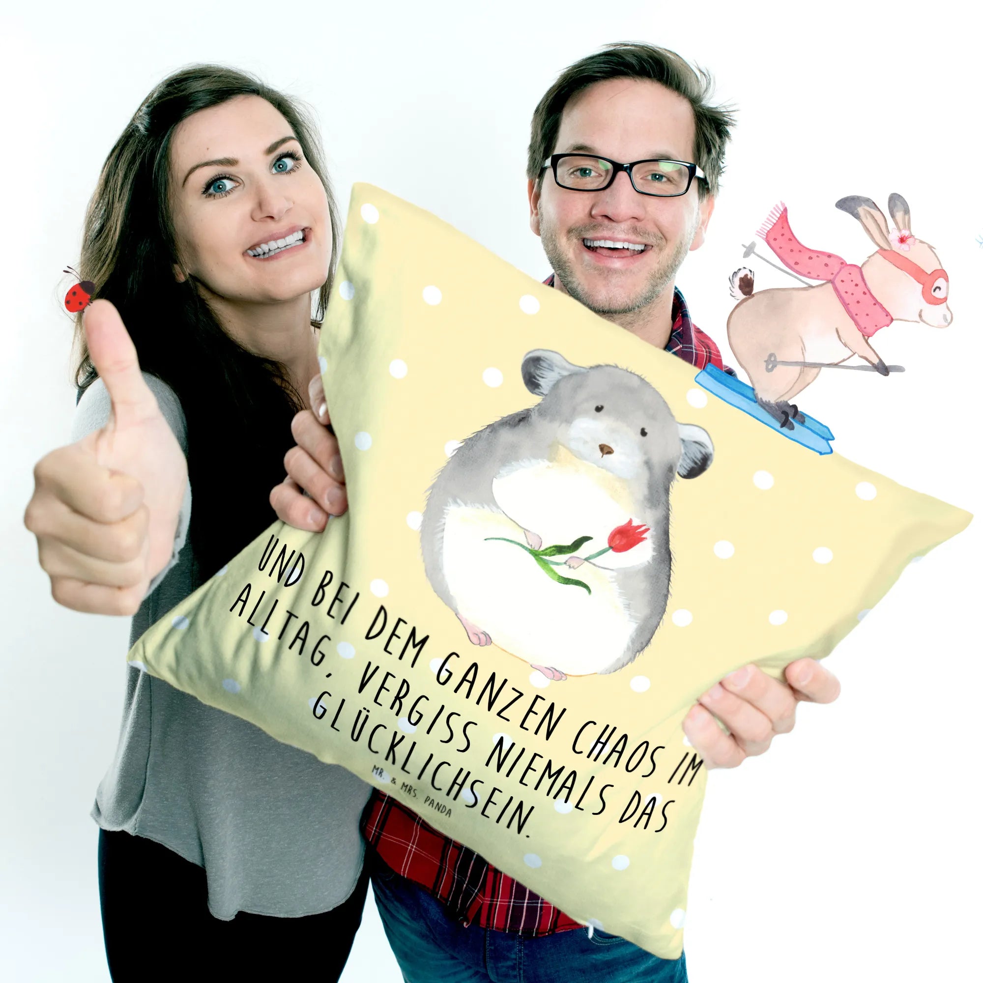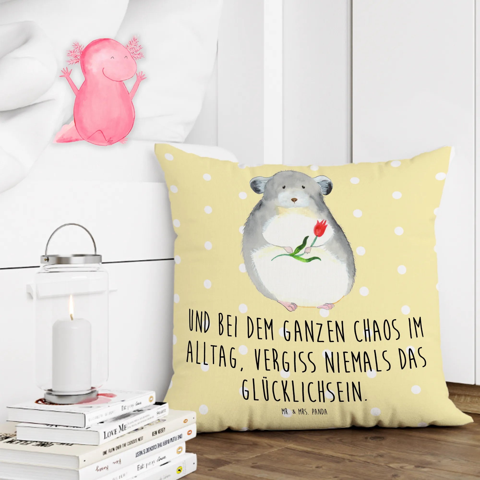 40x40 poduszka szynszyla kwiat - z napisem - Pastelowy żółty