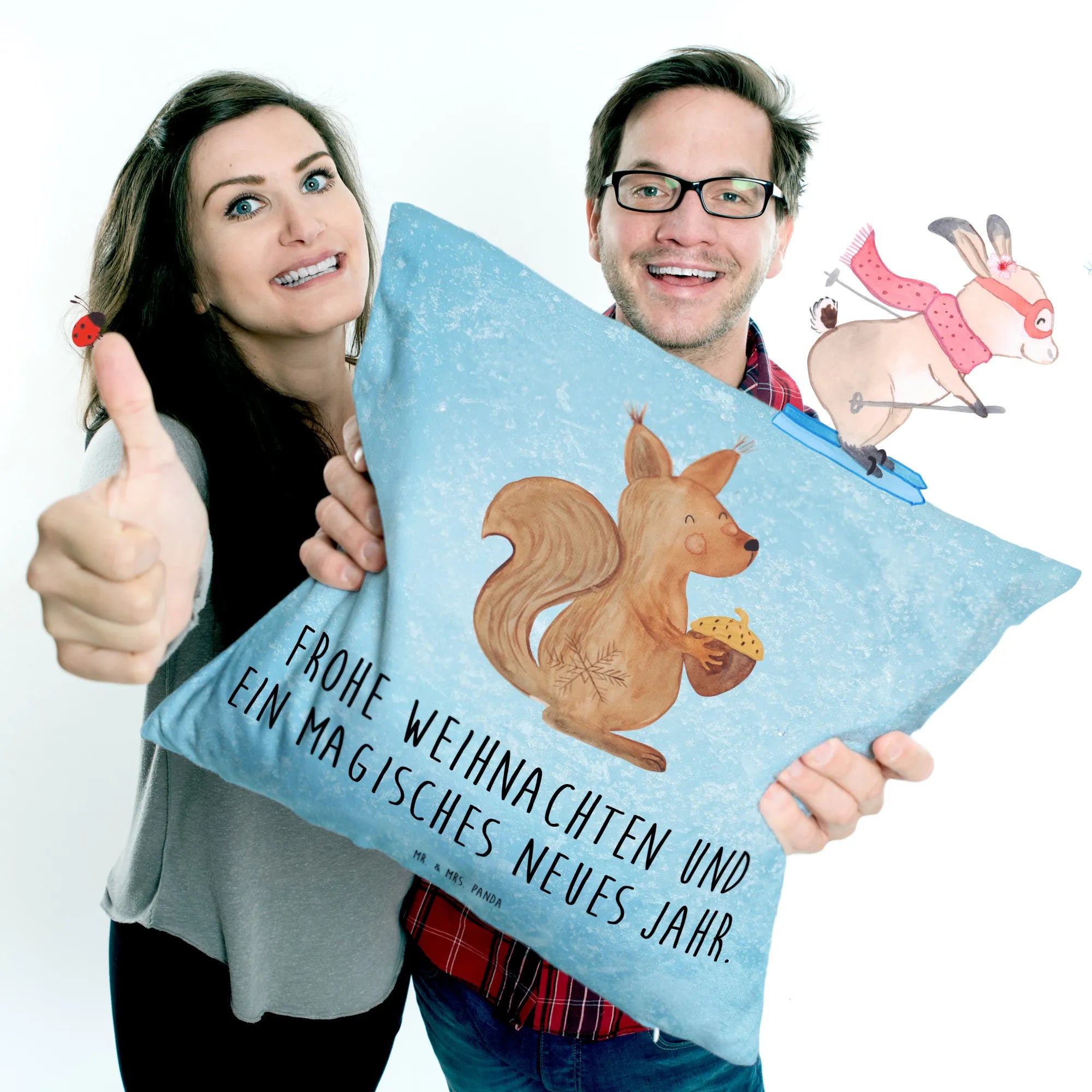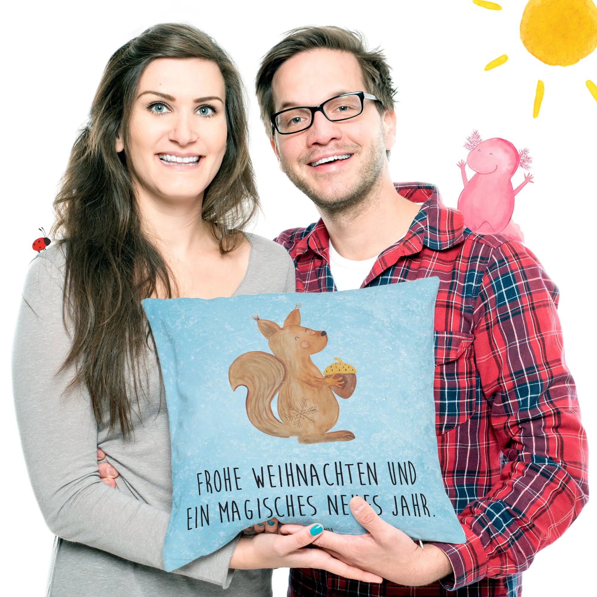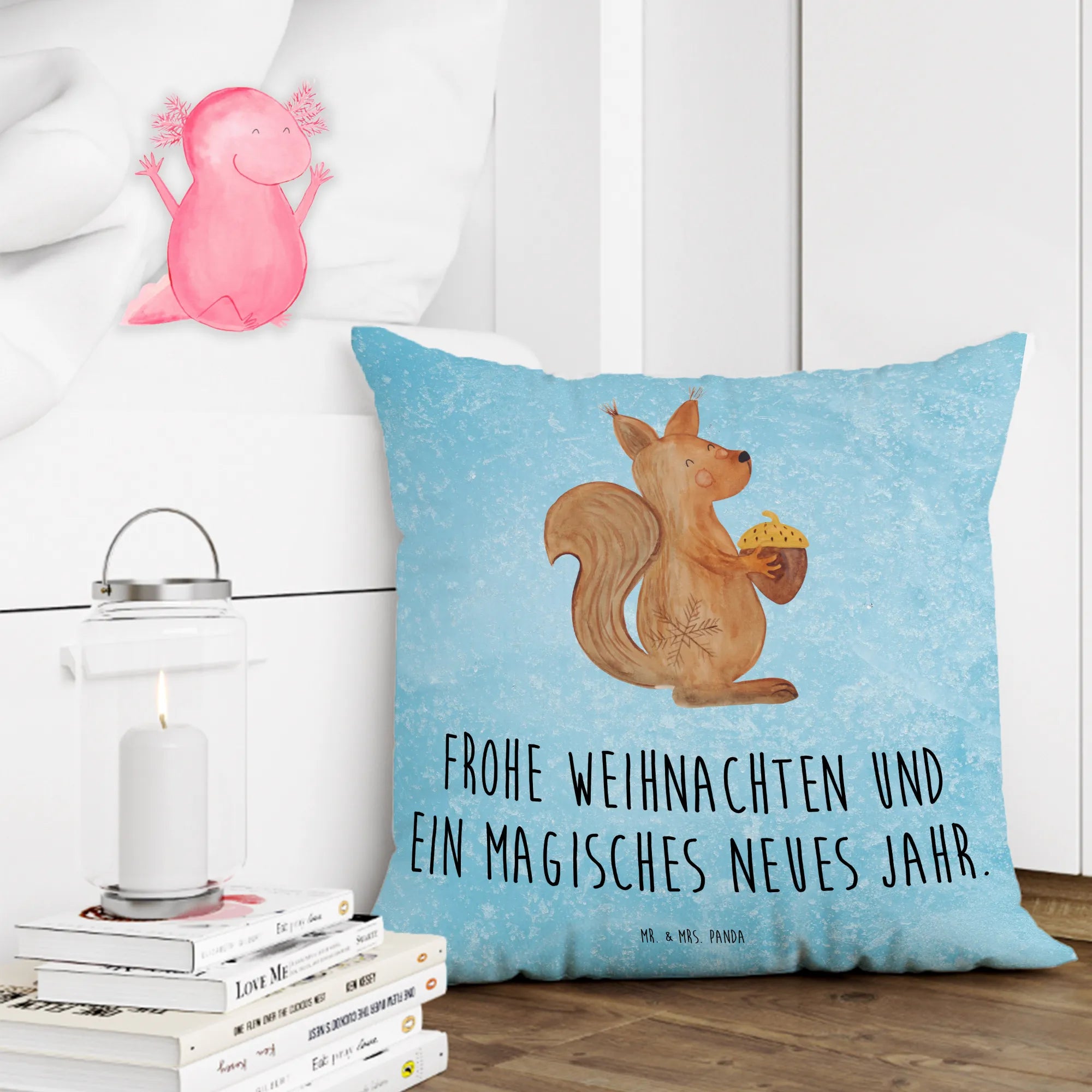 40x40 poduszka wiewiórka Czas Bożego Narodzenia - z napisem - lodowoniebieski