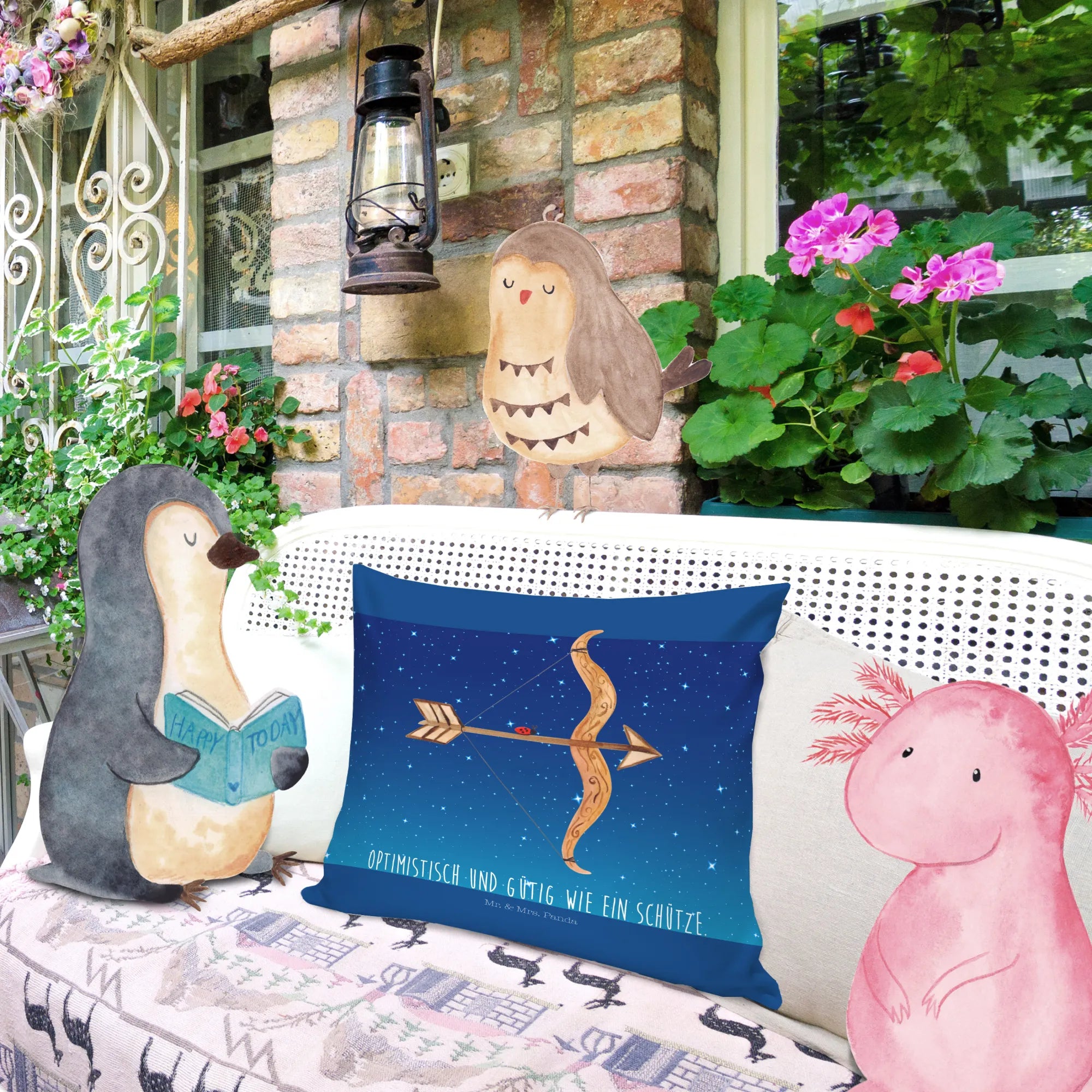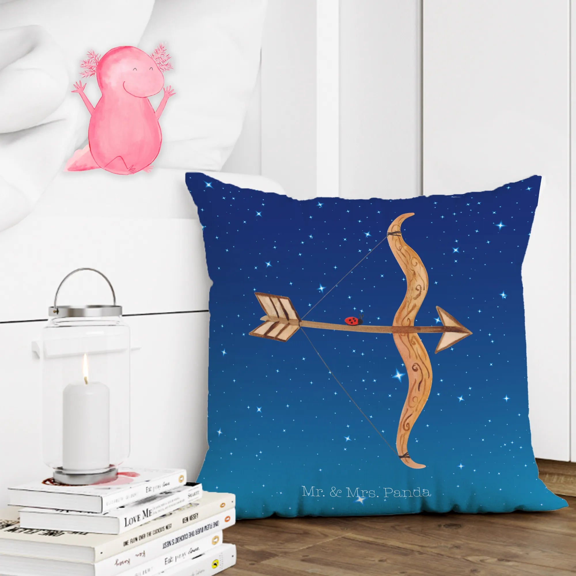 40x40 poduszka Znak zodiaku Strzelec - z napisem - Sternenhimmel Blau