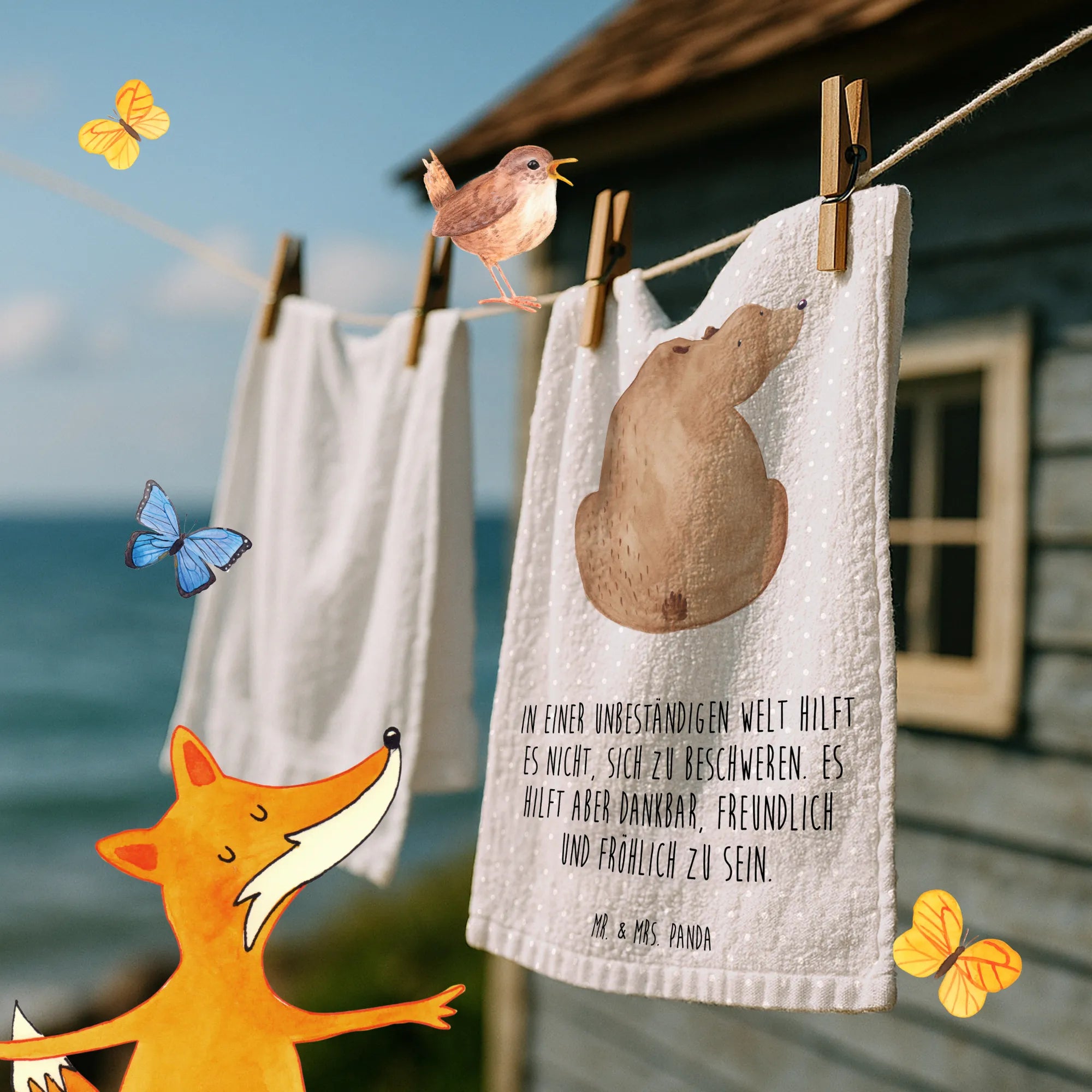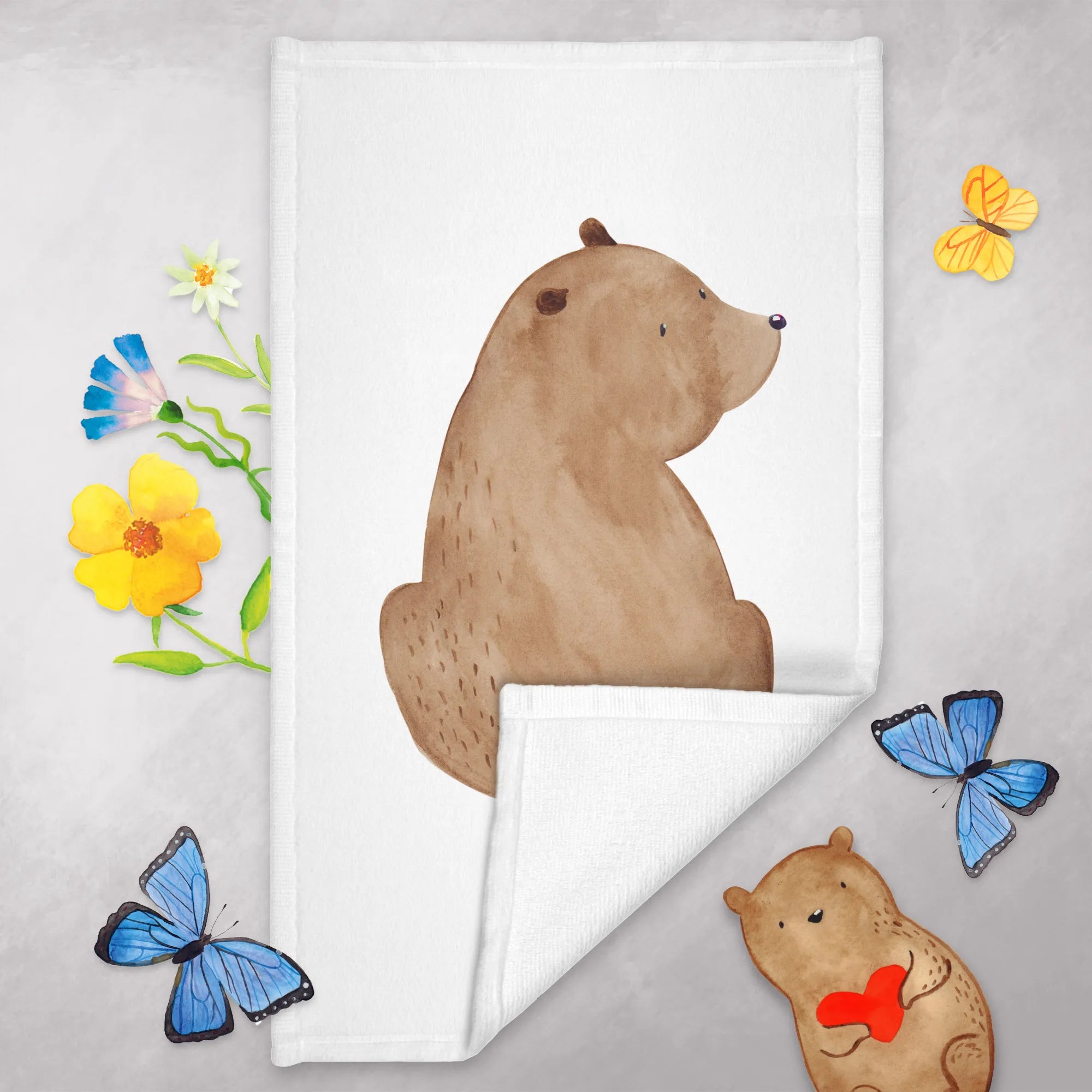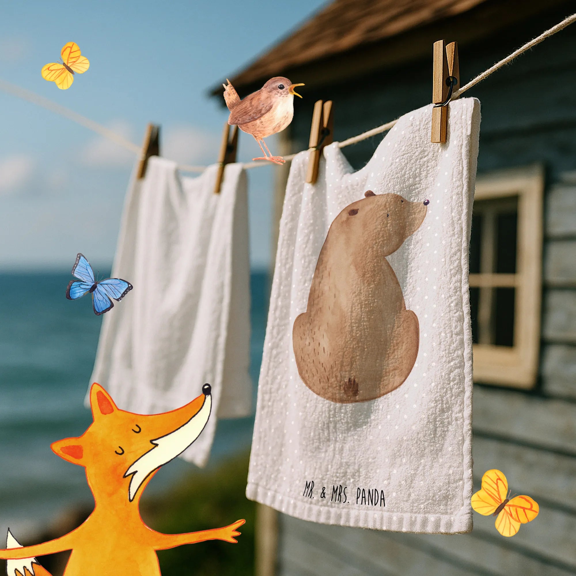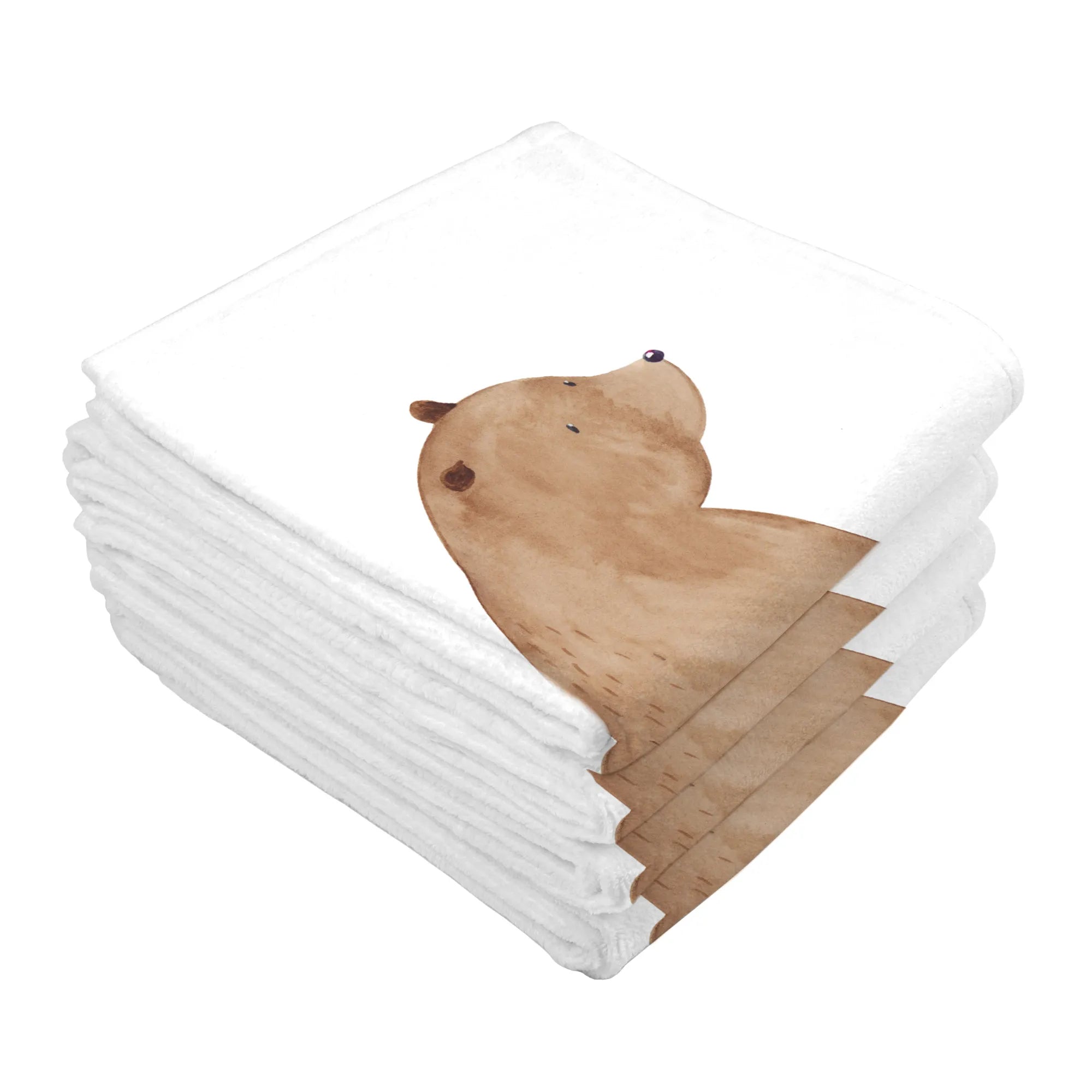50 x 100 ręcznik niedźwiedź spojrzenie przez ramię - 50 x 100 ręcznik - z napisem - Biały
