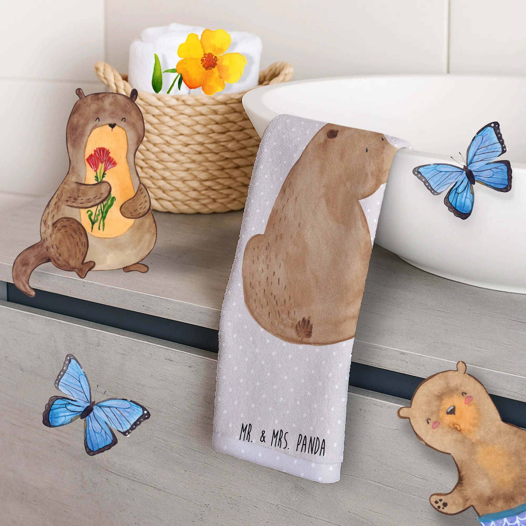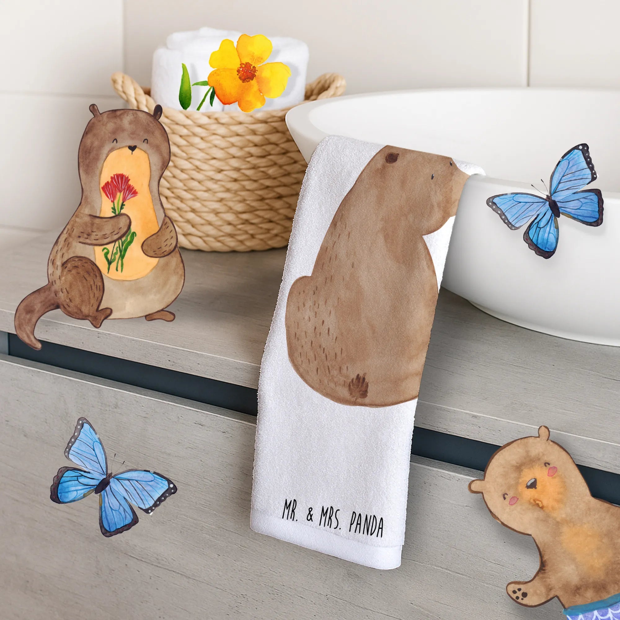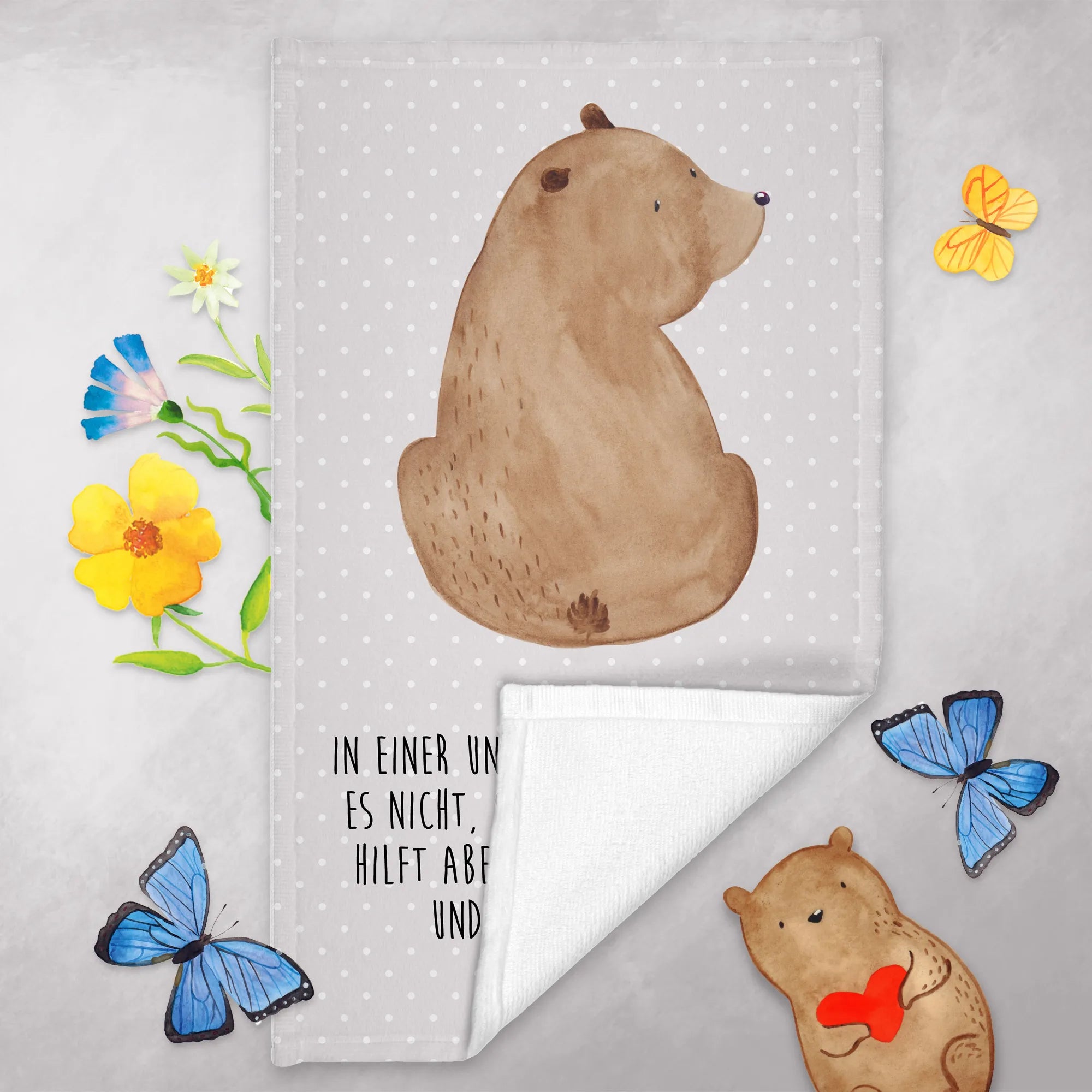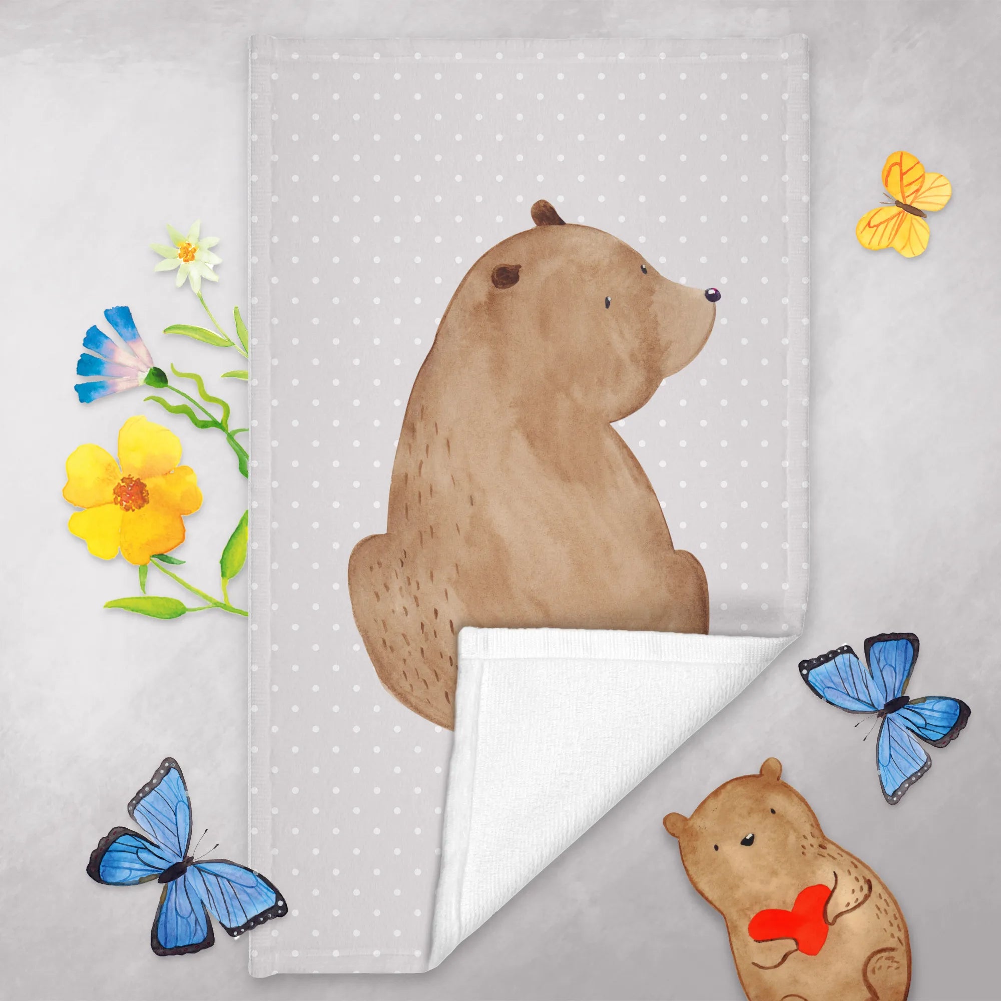 50 x 100 ręcznik niedźwiedź spojrzenie przez ramię - 50 x 100 ręcznik - z napisem - Biały