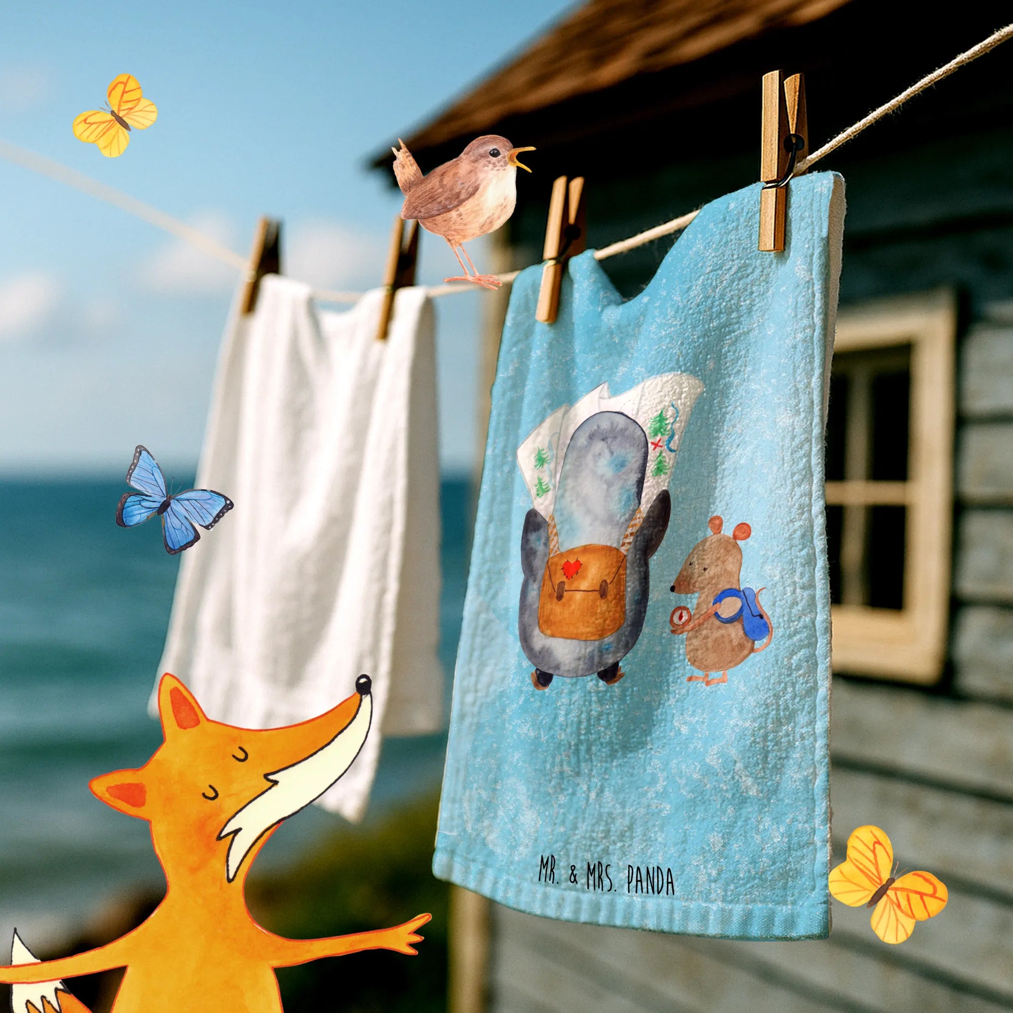 50 x 100 ręcznik Pingwin i Mysz Wędrowcy - z napisem - biały