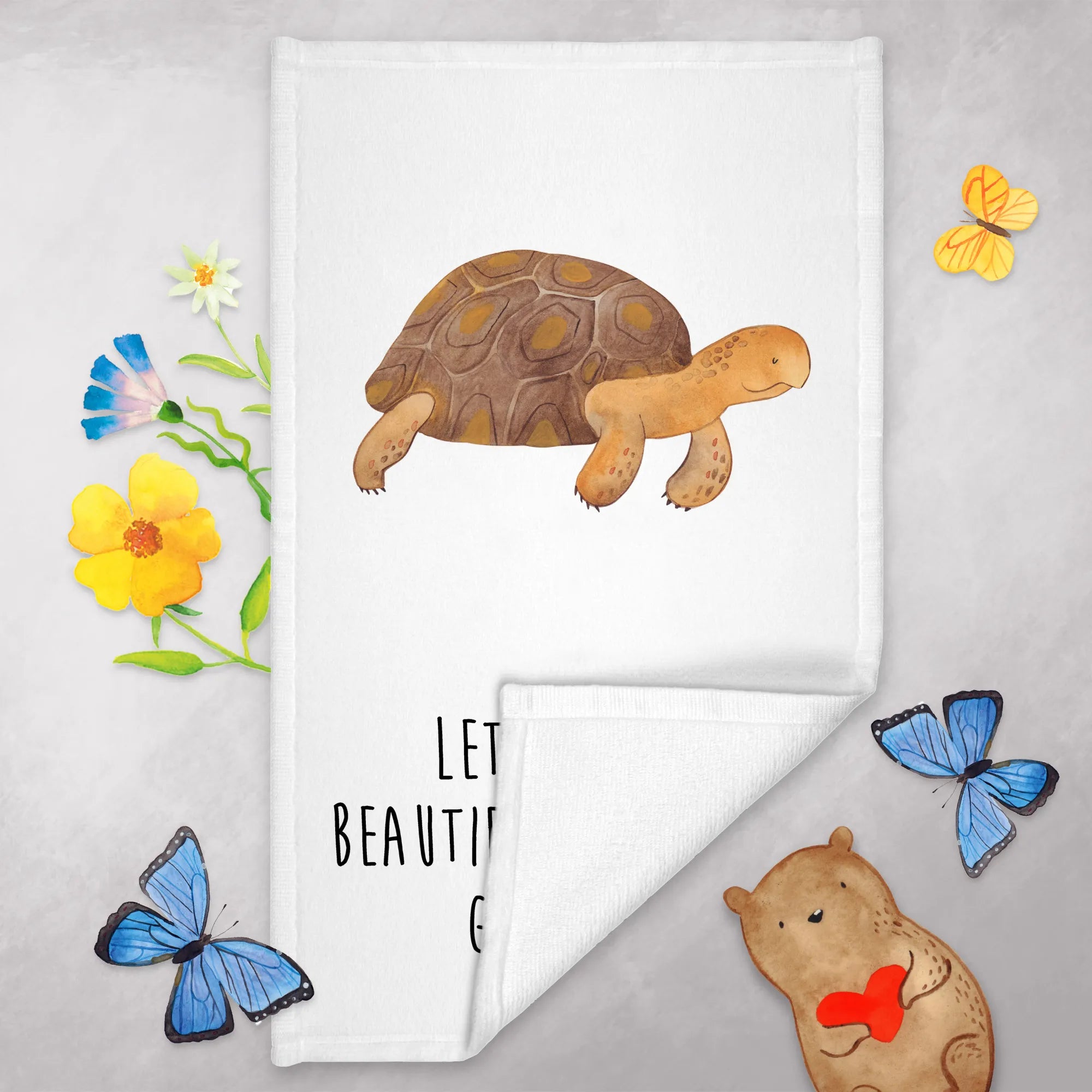50 x 100 ręcznik Żółw maszerować - 50 x 100 ręcznik - z napisem - biały