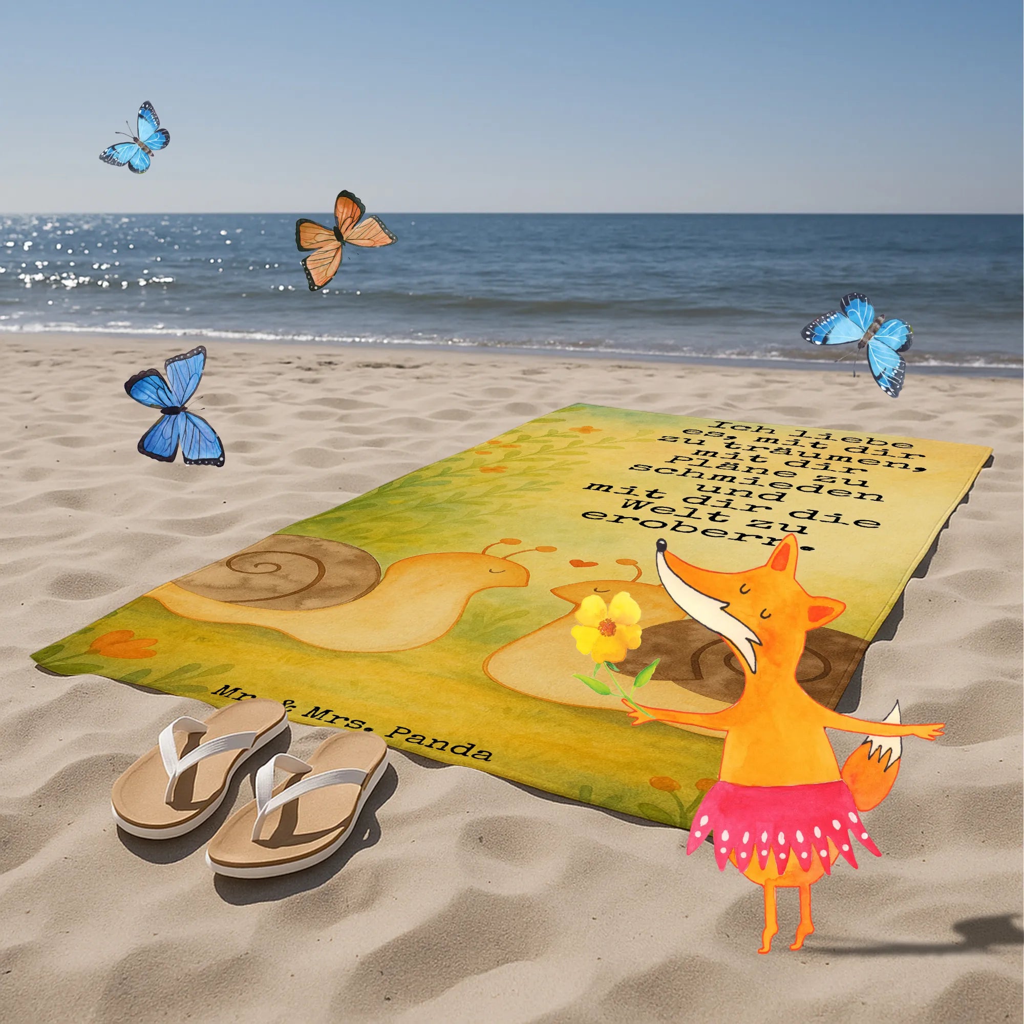 70 x 140 ręcznik Miłość ślimaków Design - z napisem - biały