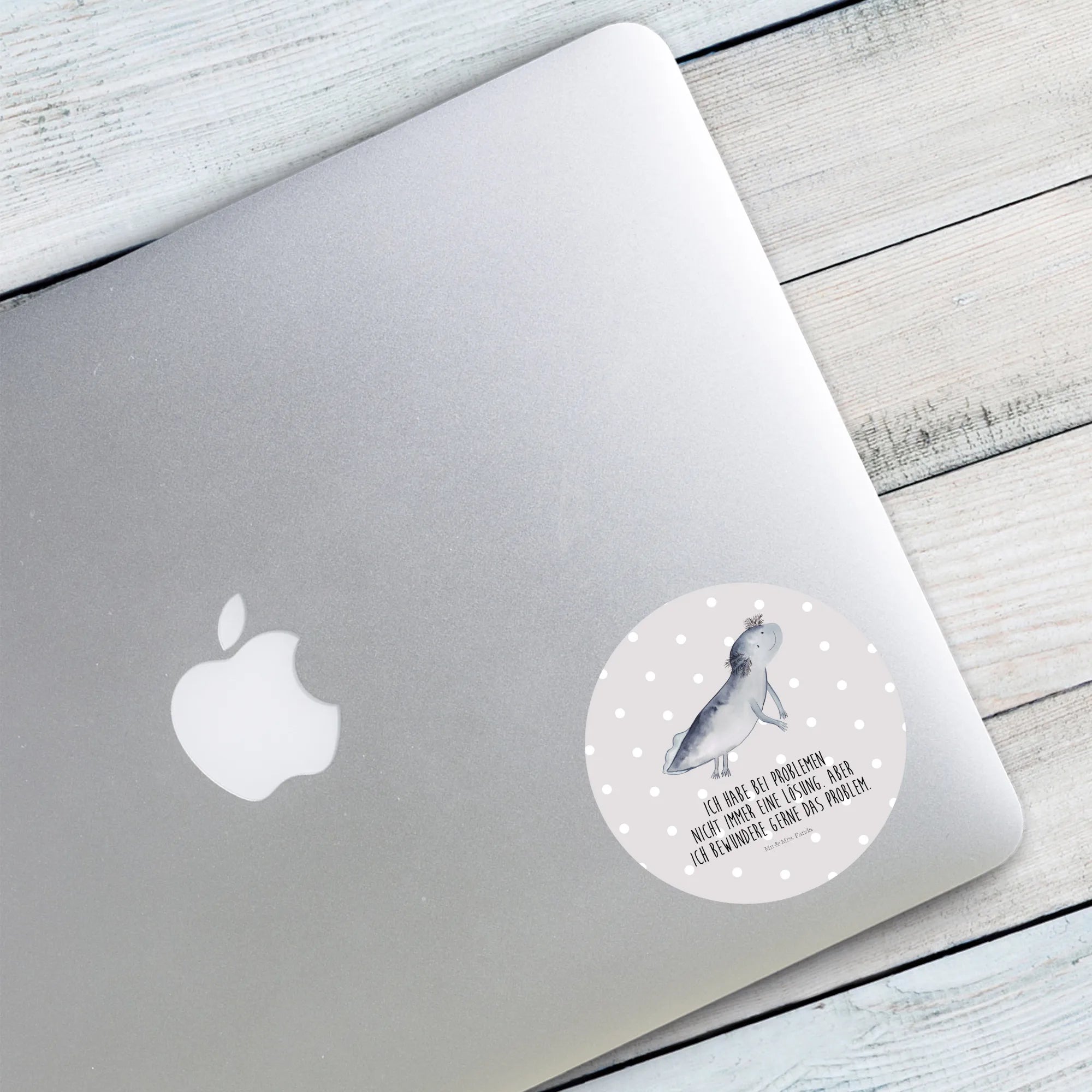 80mm okrągła naklejka ajolotl pływanie - 80mm Rund Aufkleber - z napisem - Pastelowy szary