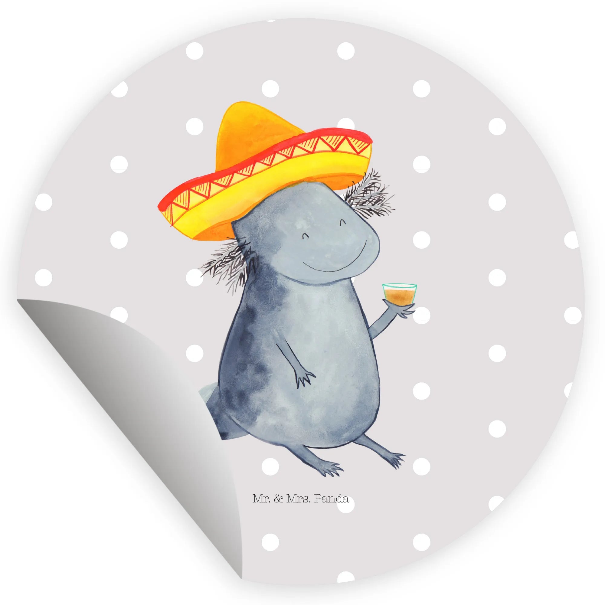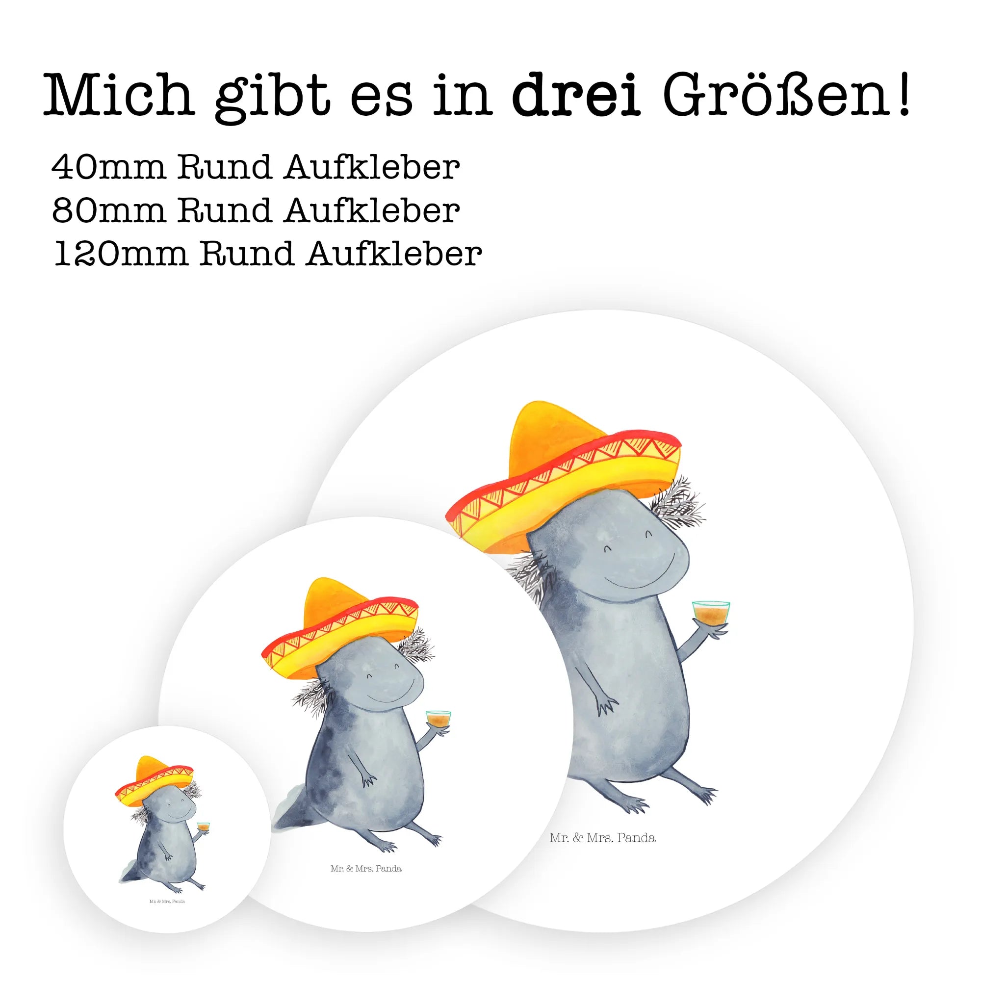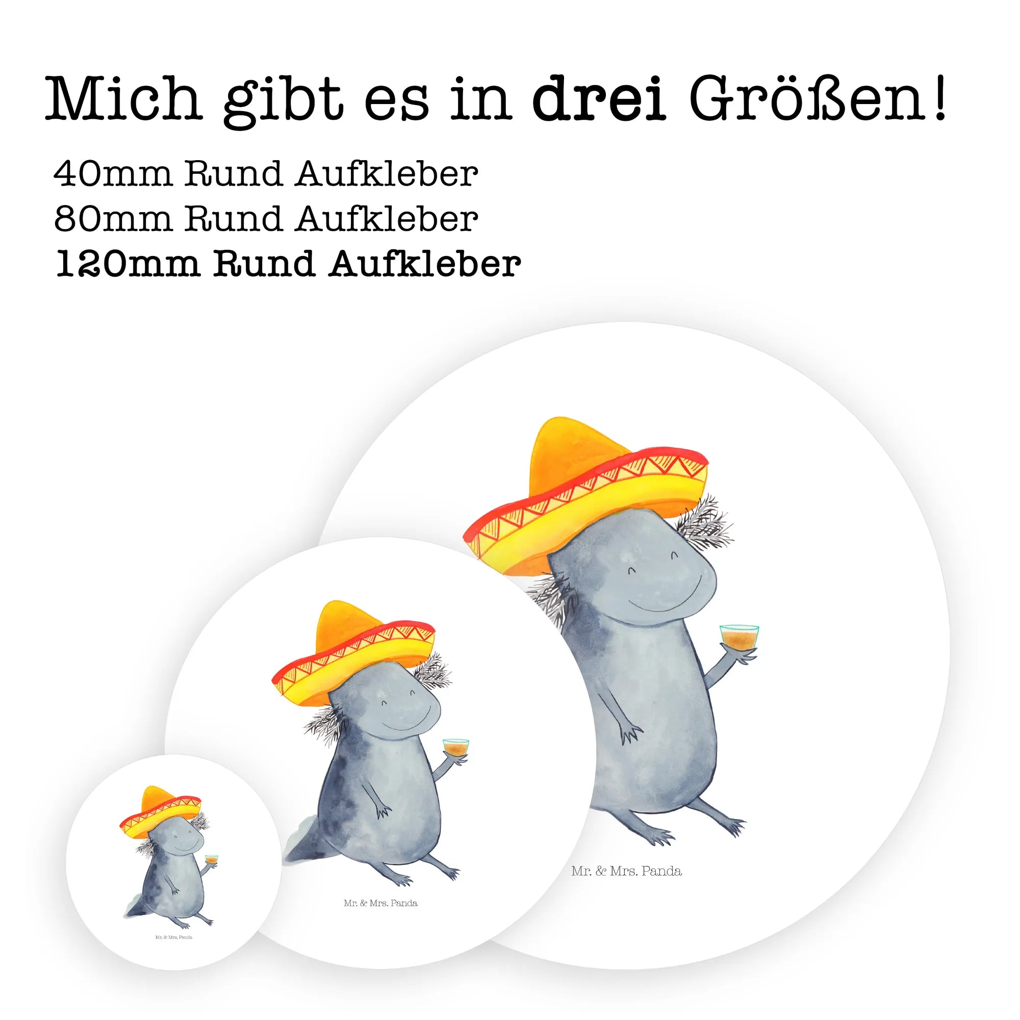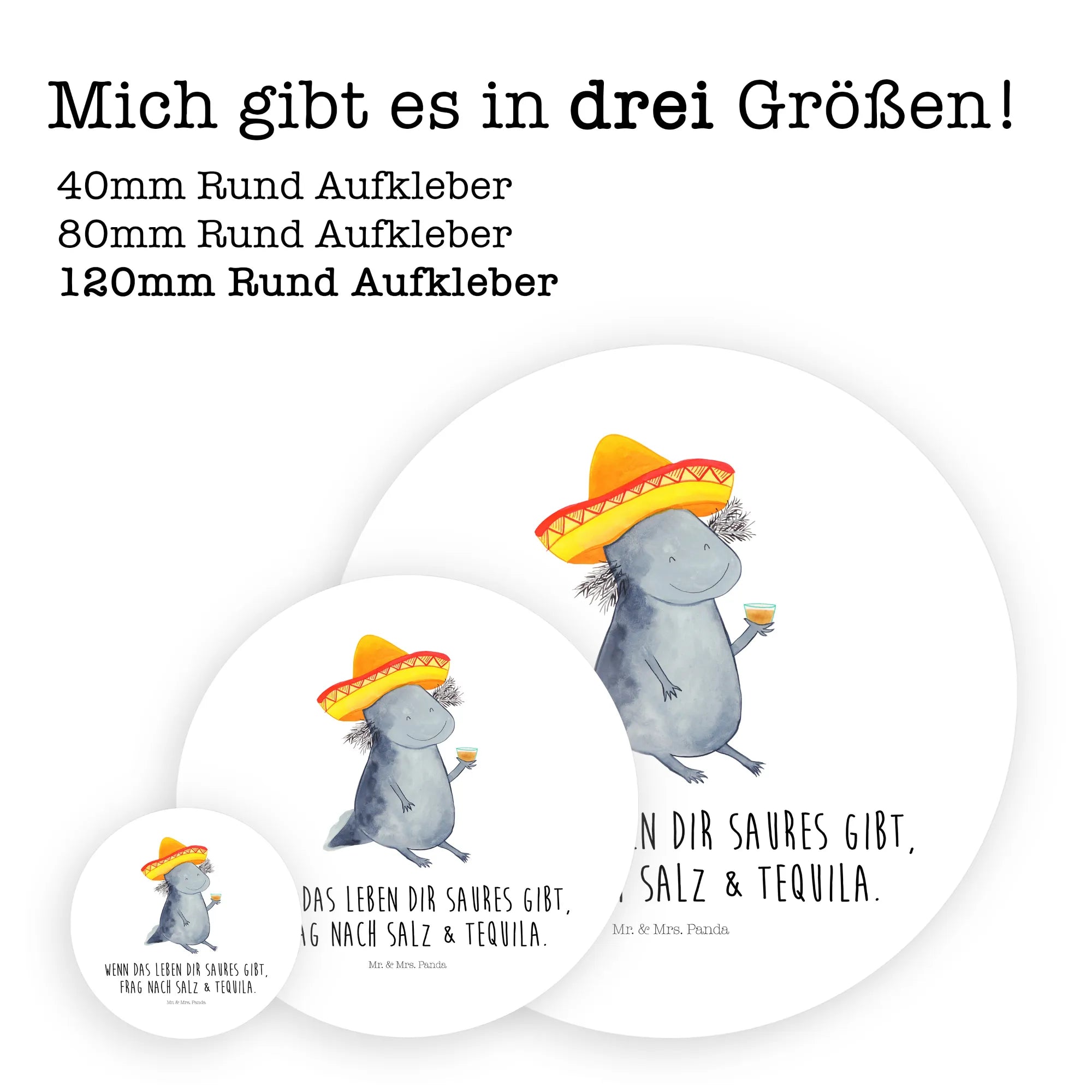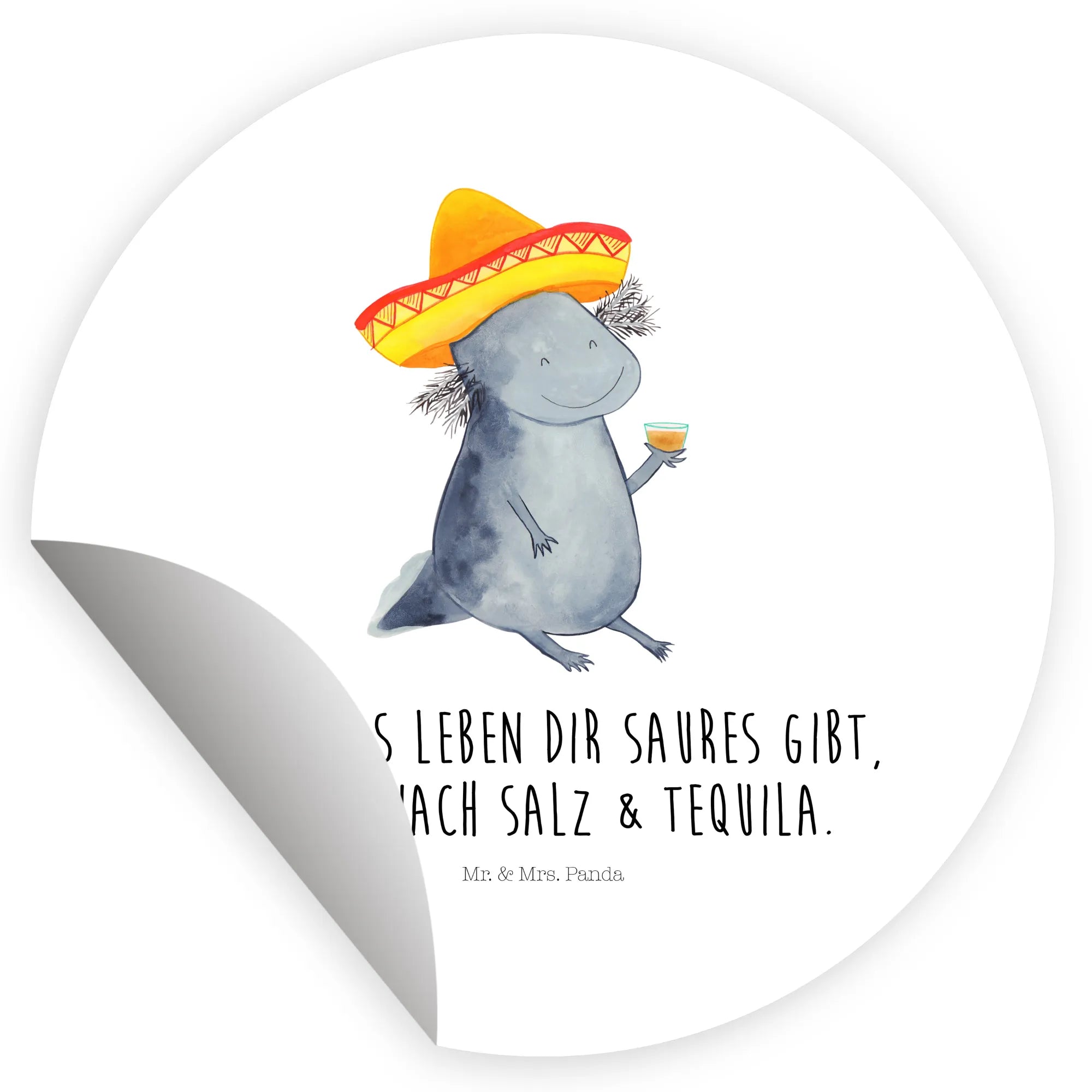 80mm okrągła naklejka Aksolotl Tequila - 80mm Rund Aufkleber - z napisem - biały
