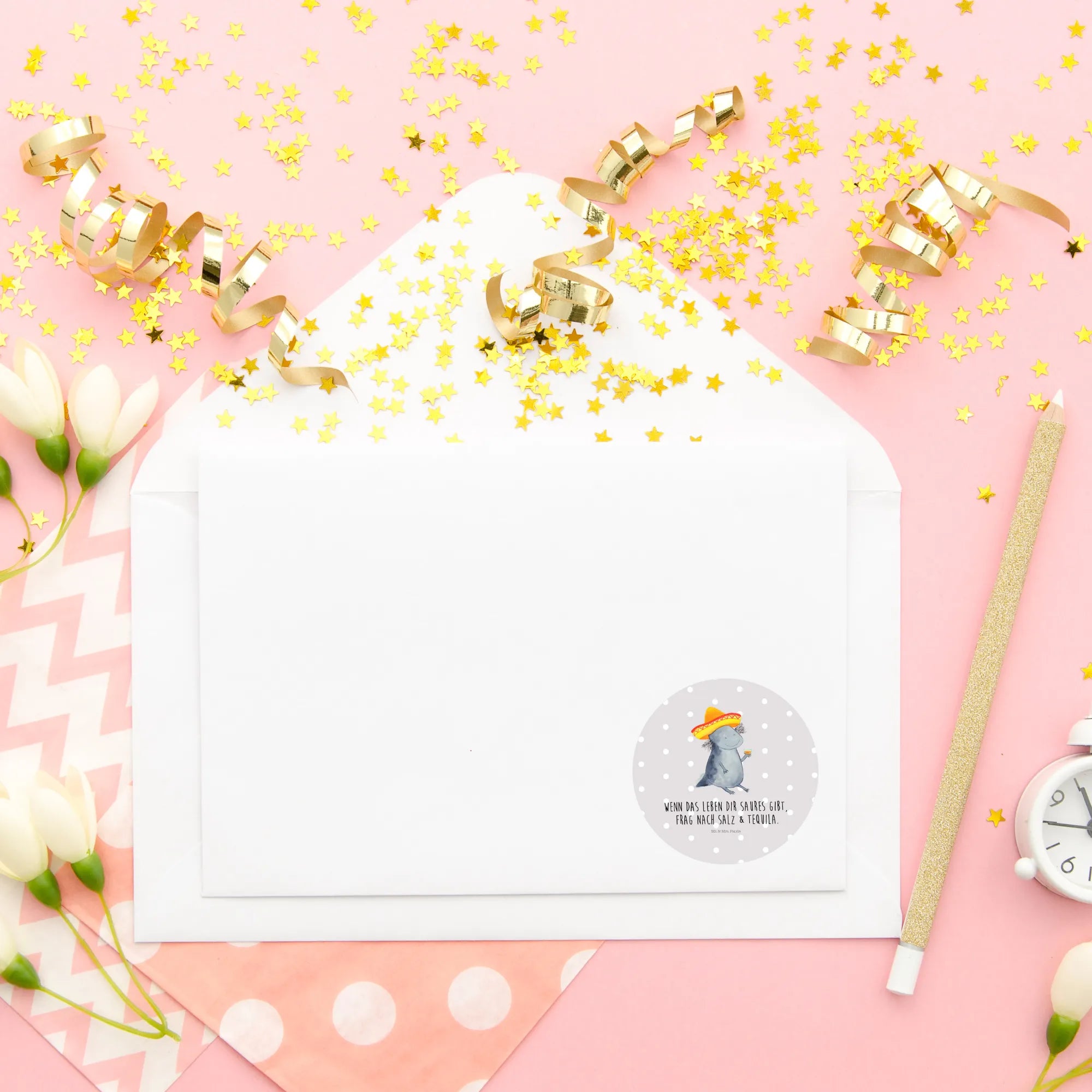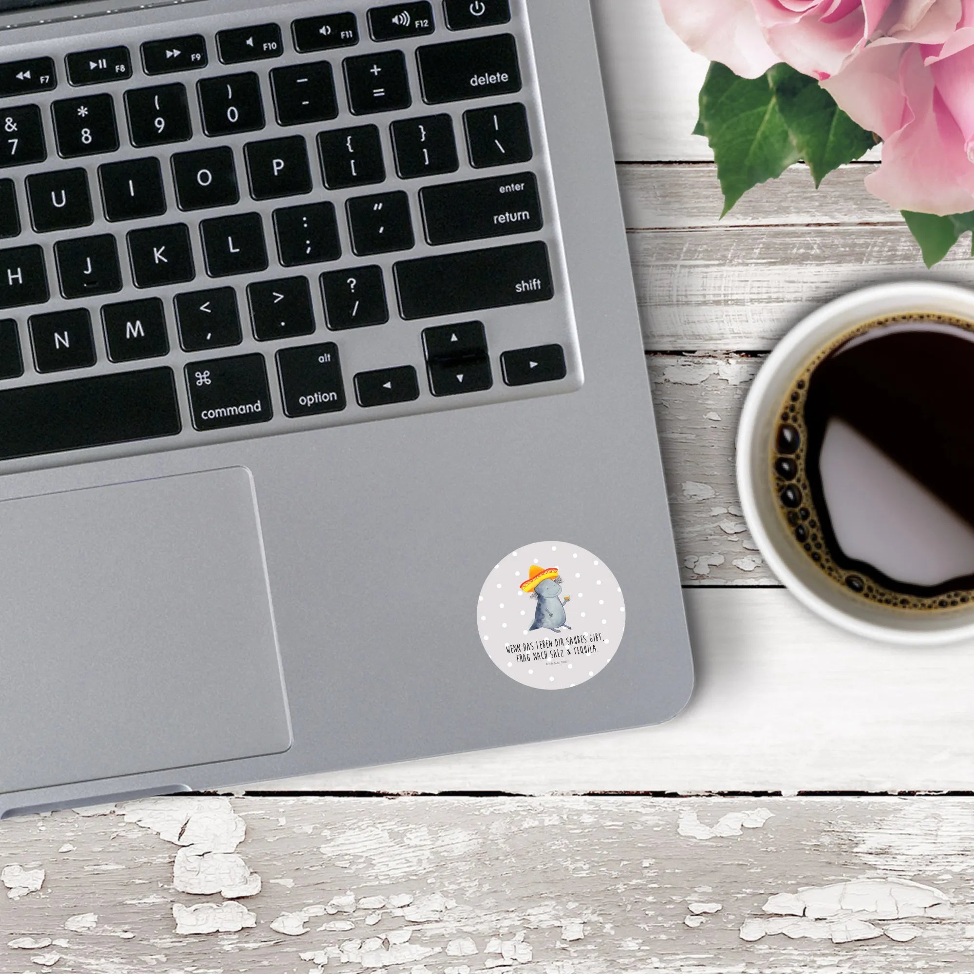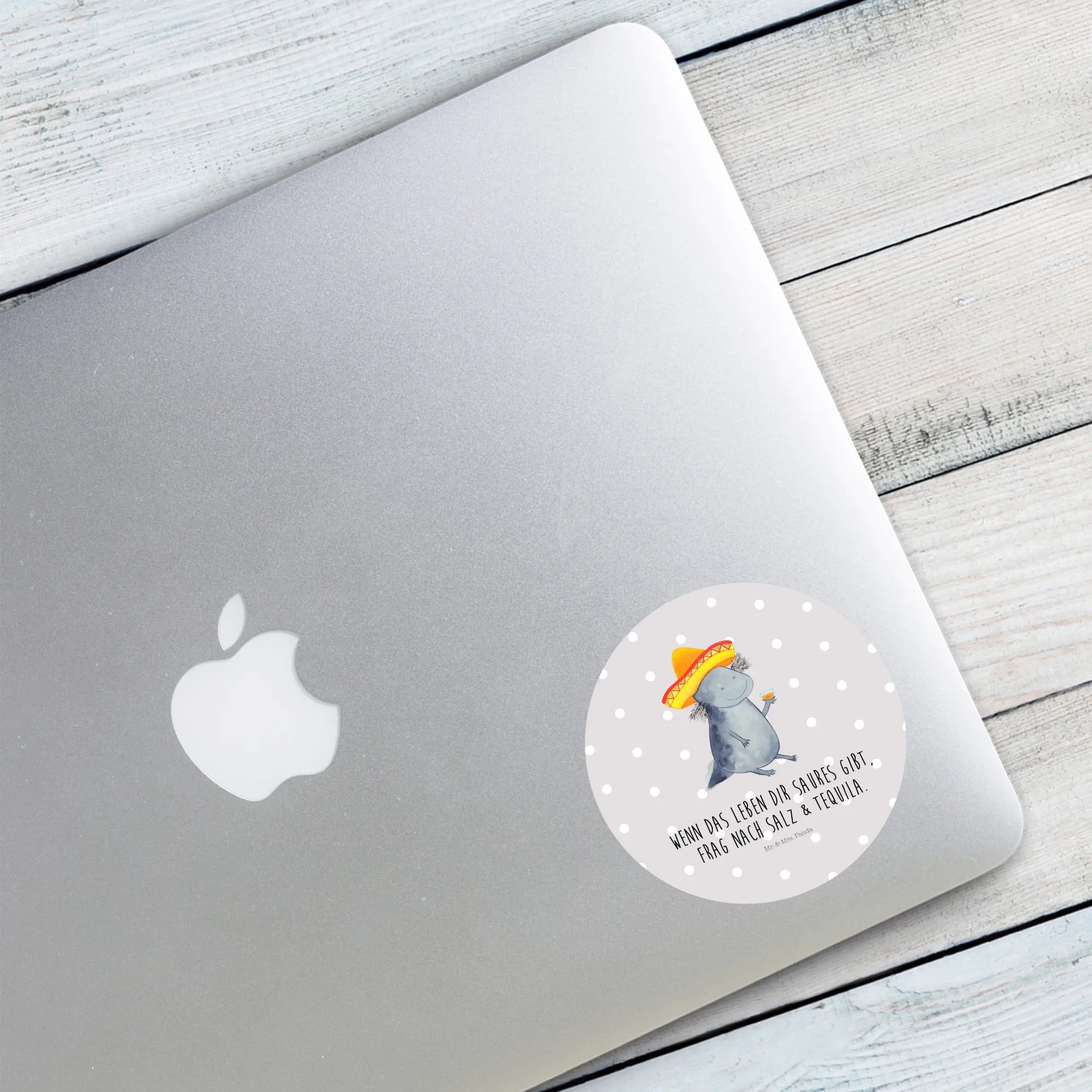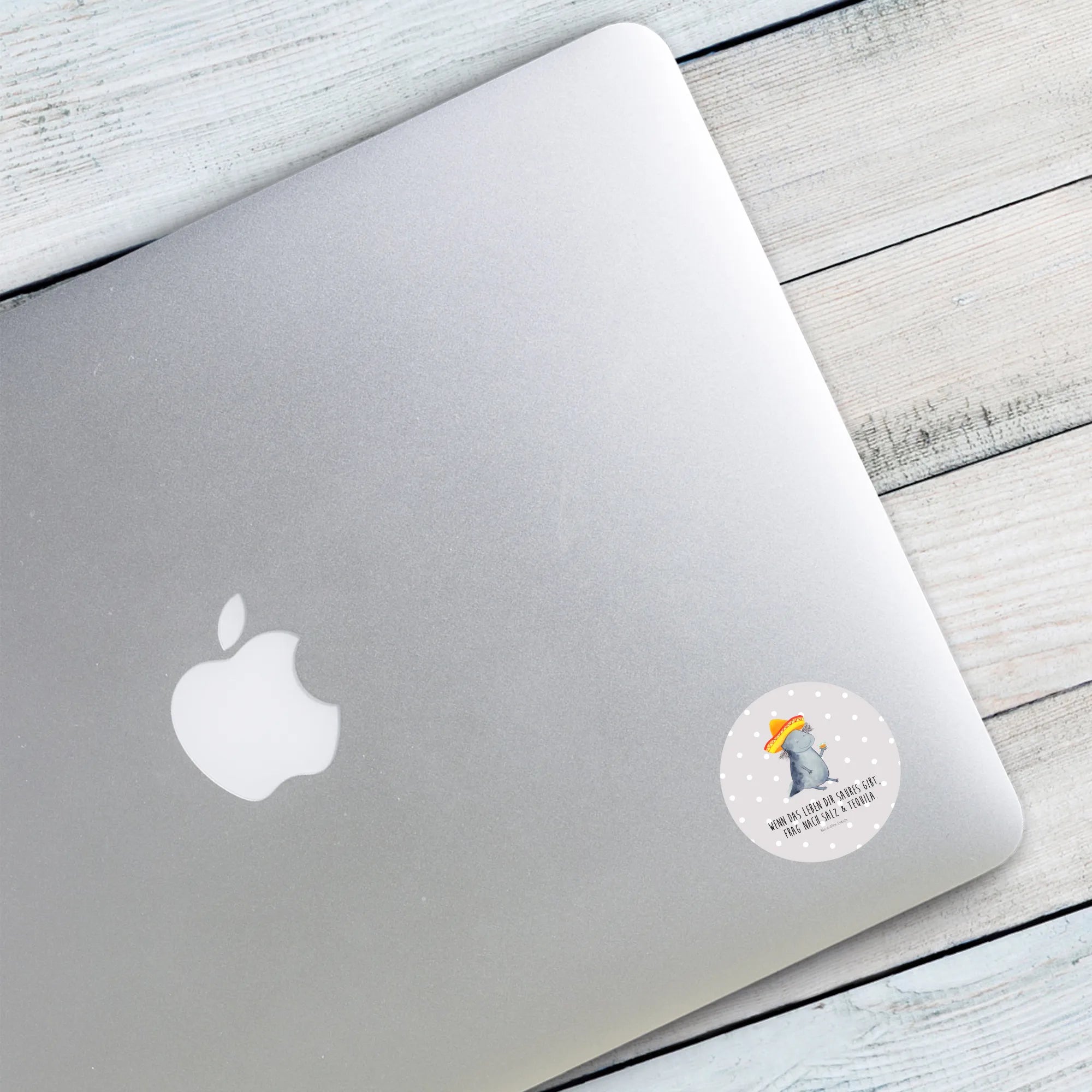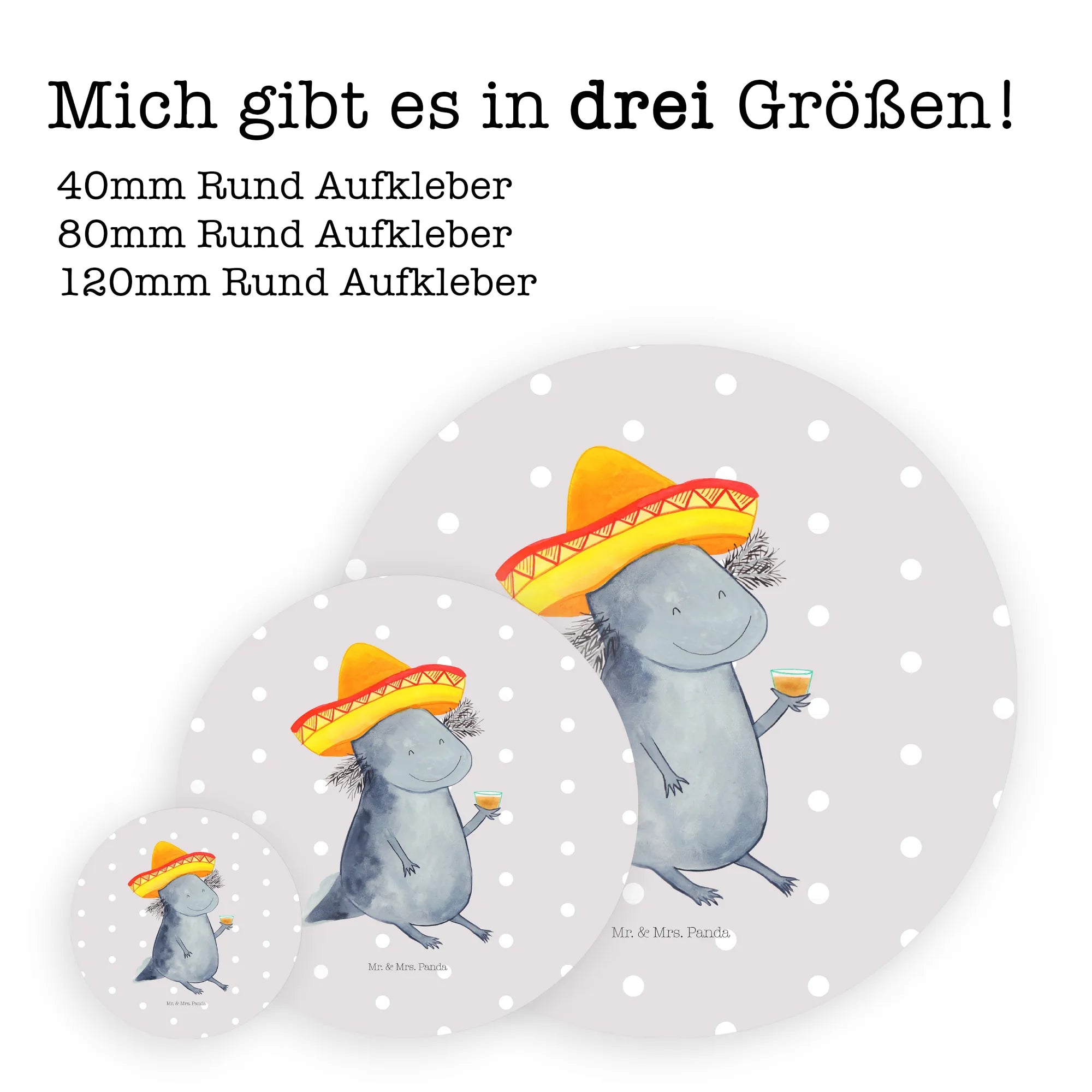 80mm okrągła naklejka Aksolotl Tequila - 80mm Rund Aufkleber - z napisem - biały