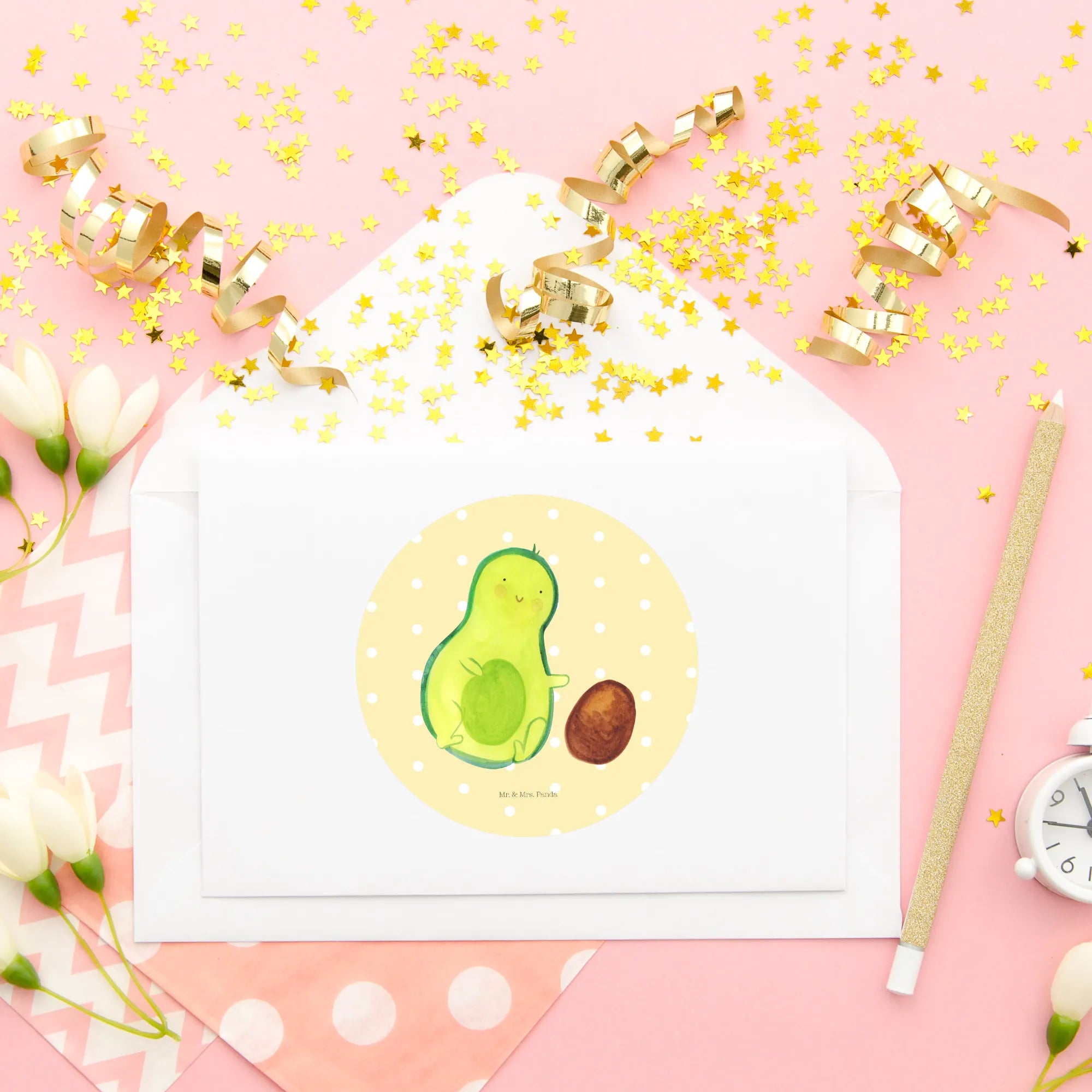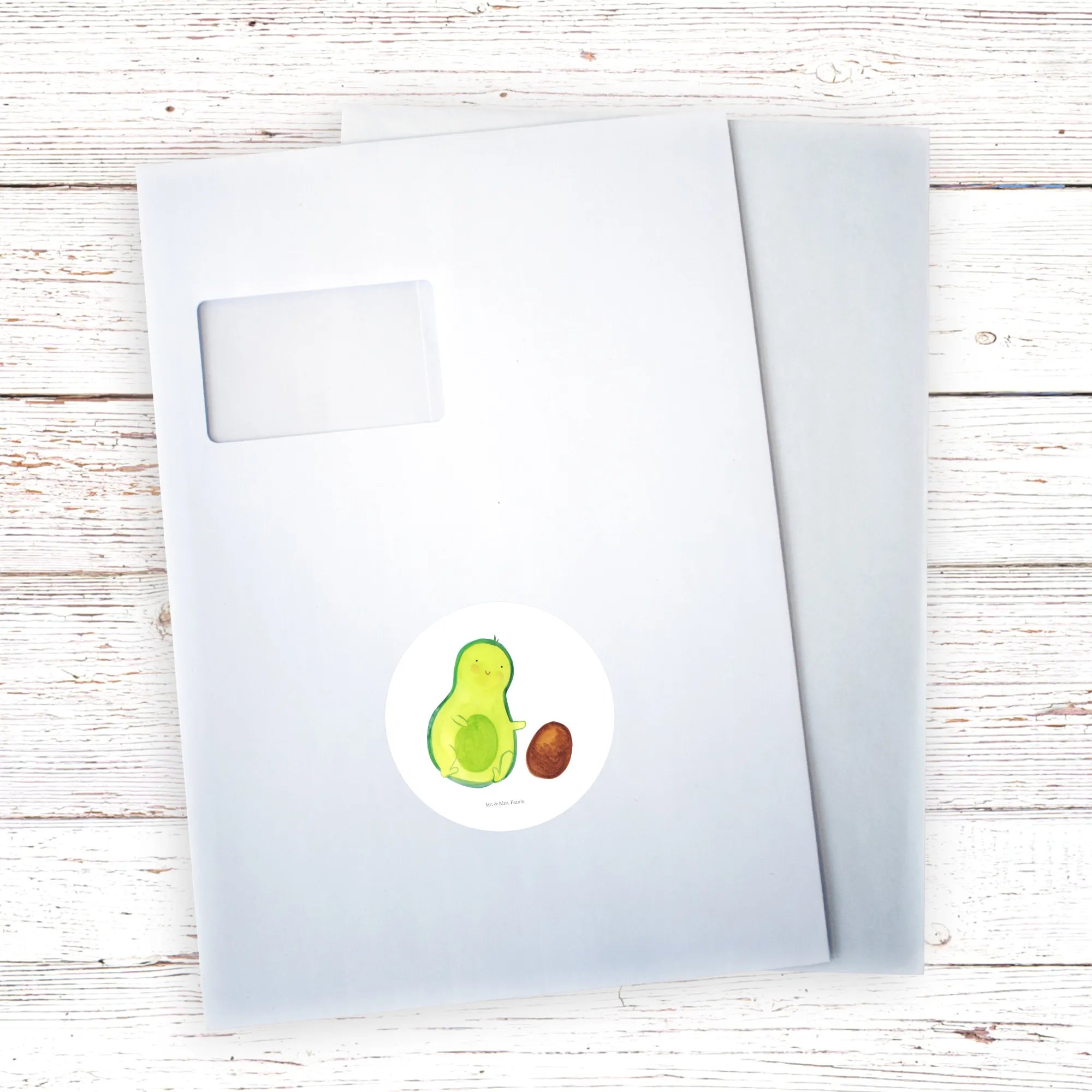 80mm okrągła naklejka Awokado pestka toczy się - 80mm Rund Aufkleber - z napisem - biały