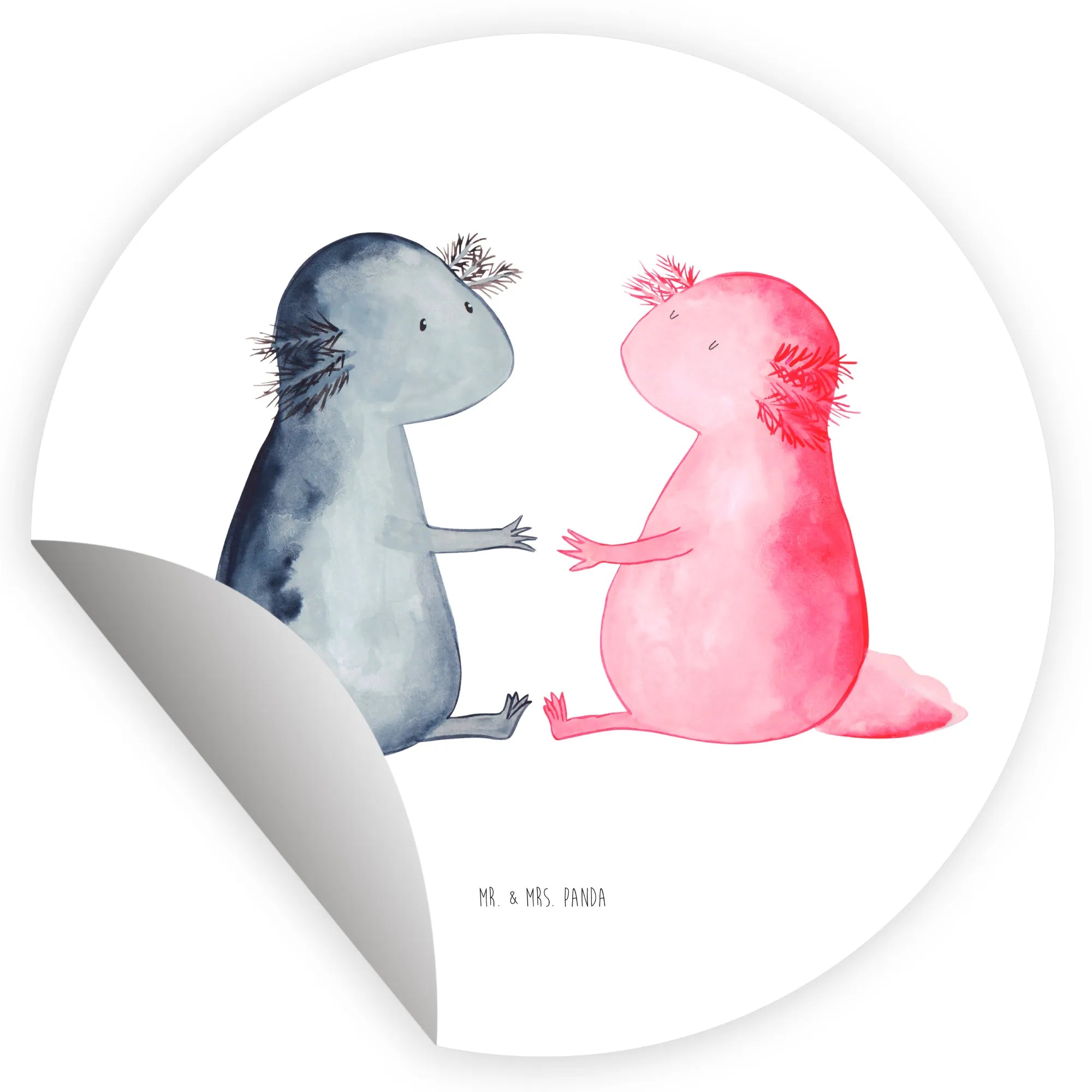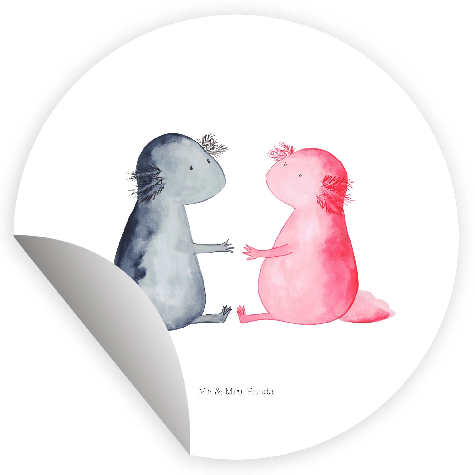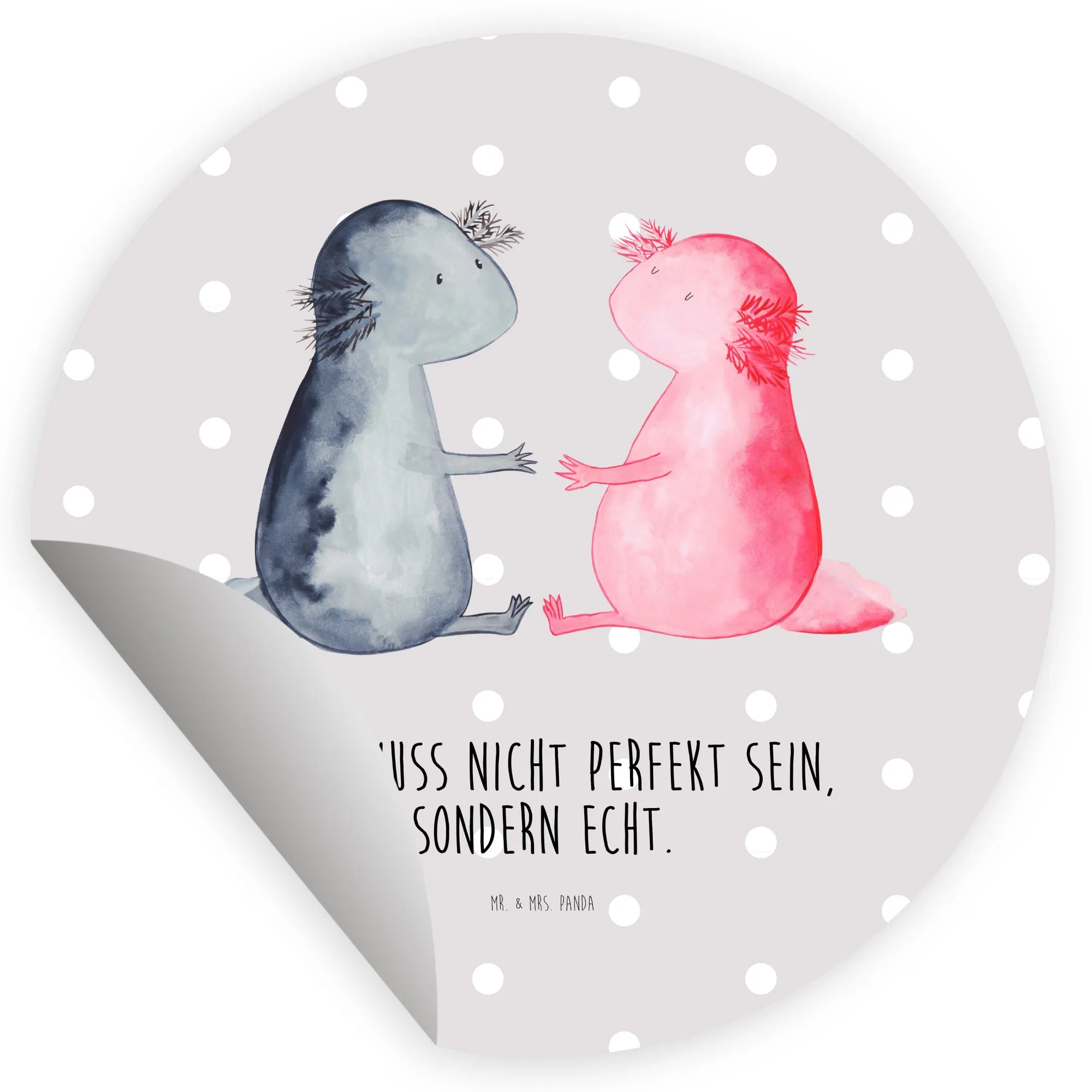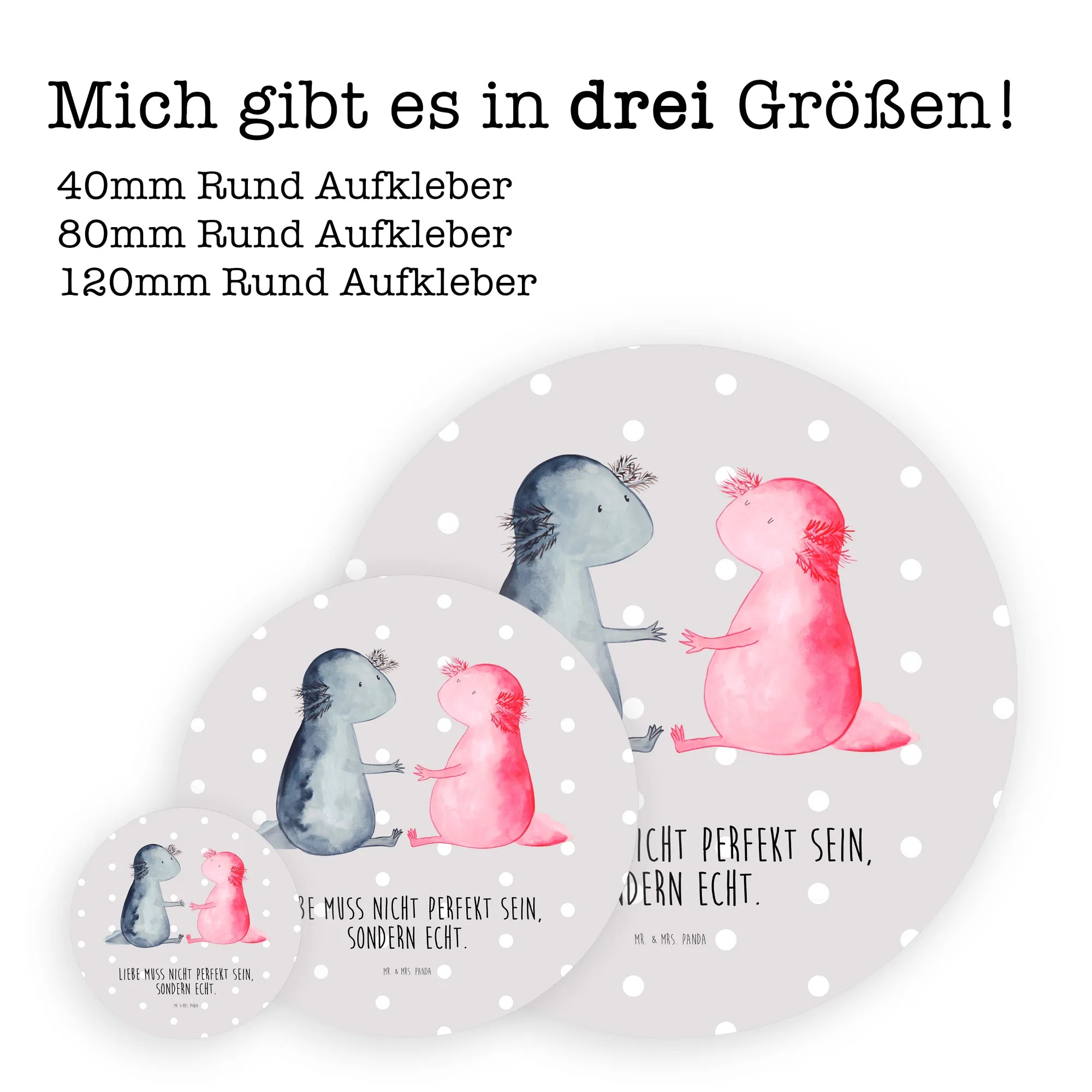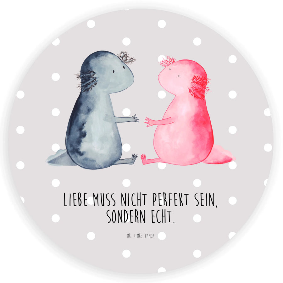 80mm okrągła naklejka Axolotl miłość - 80mm Rund Aufkleber - z napisem - Pastelowy szary