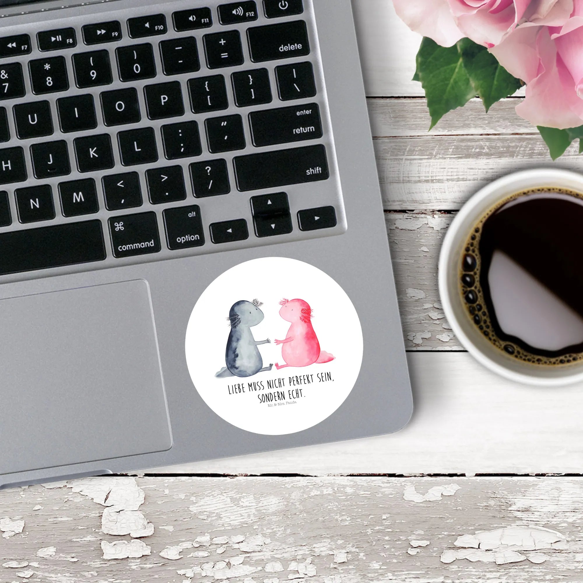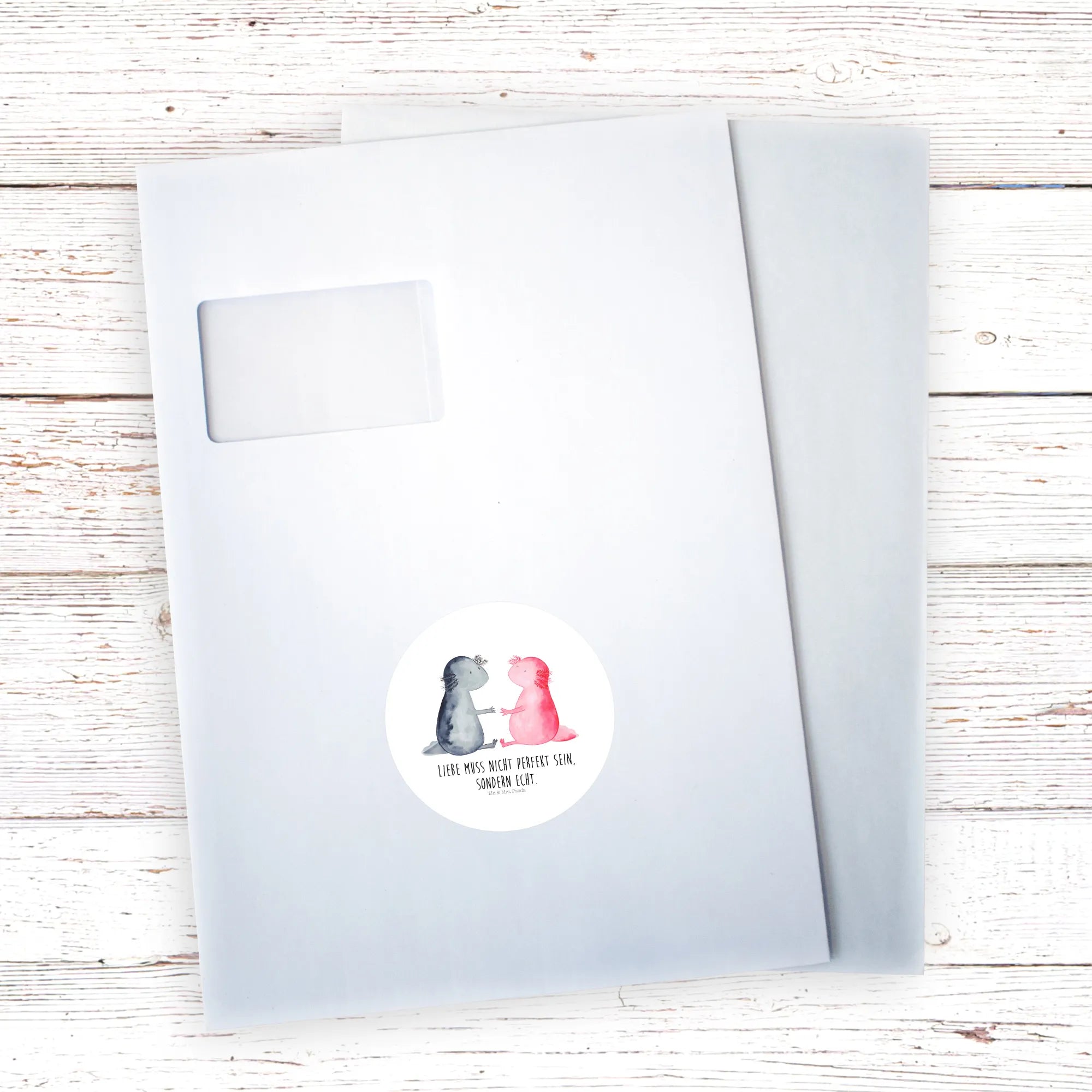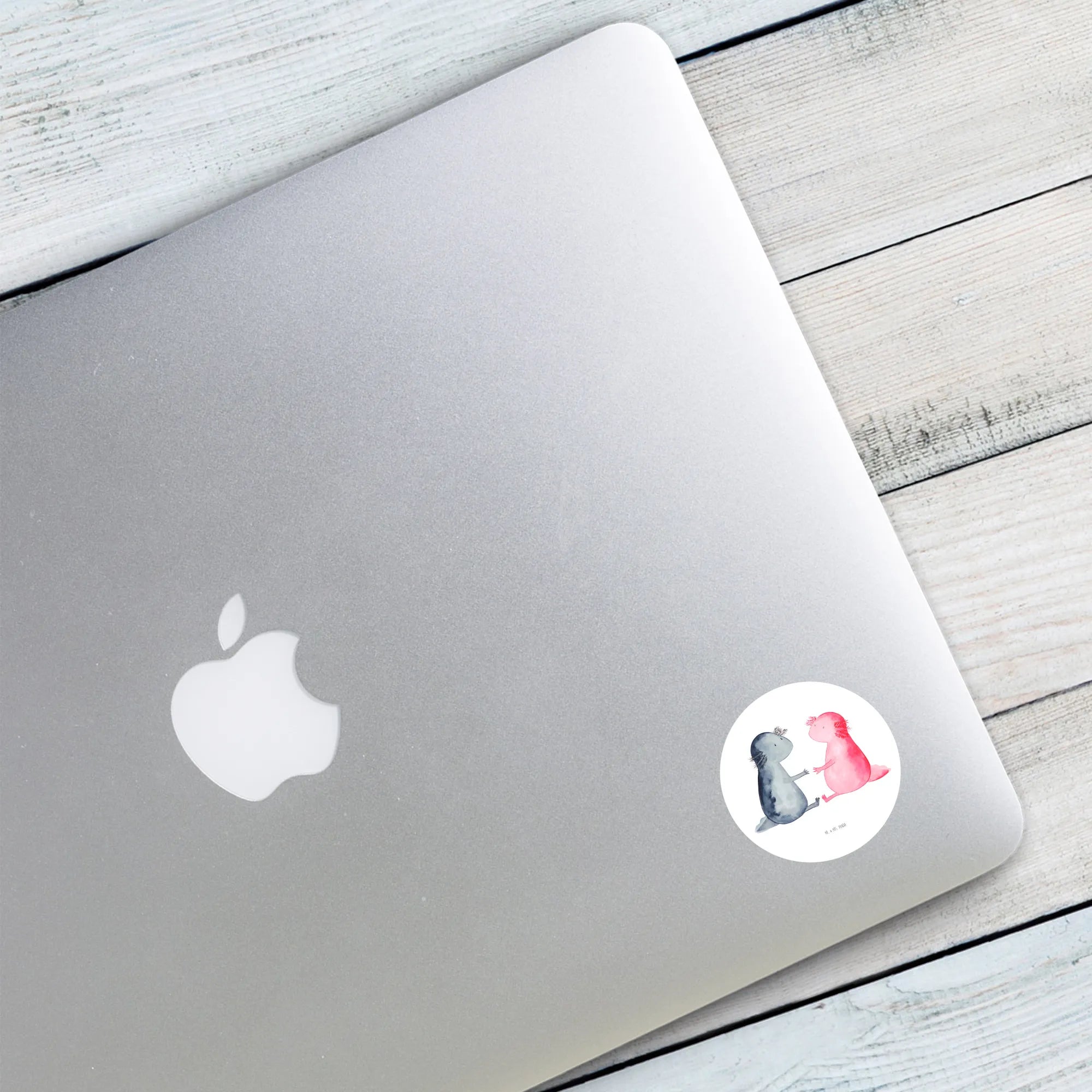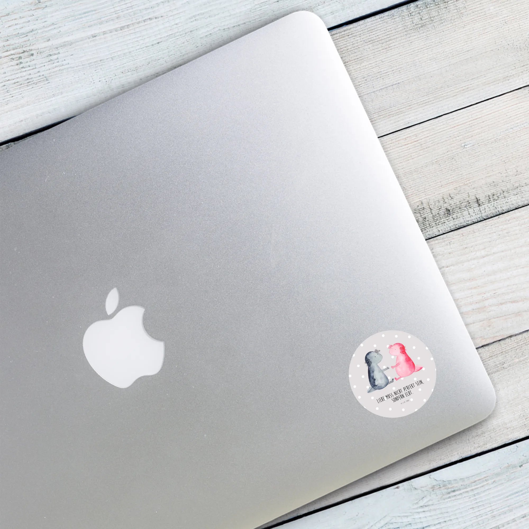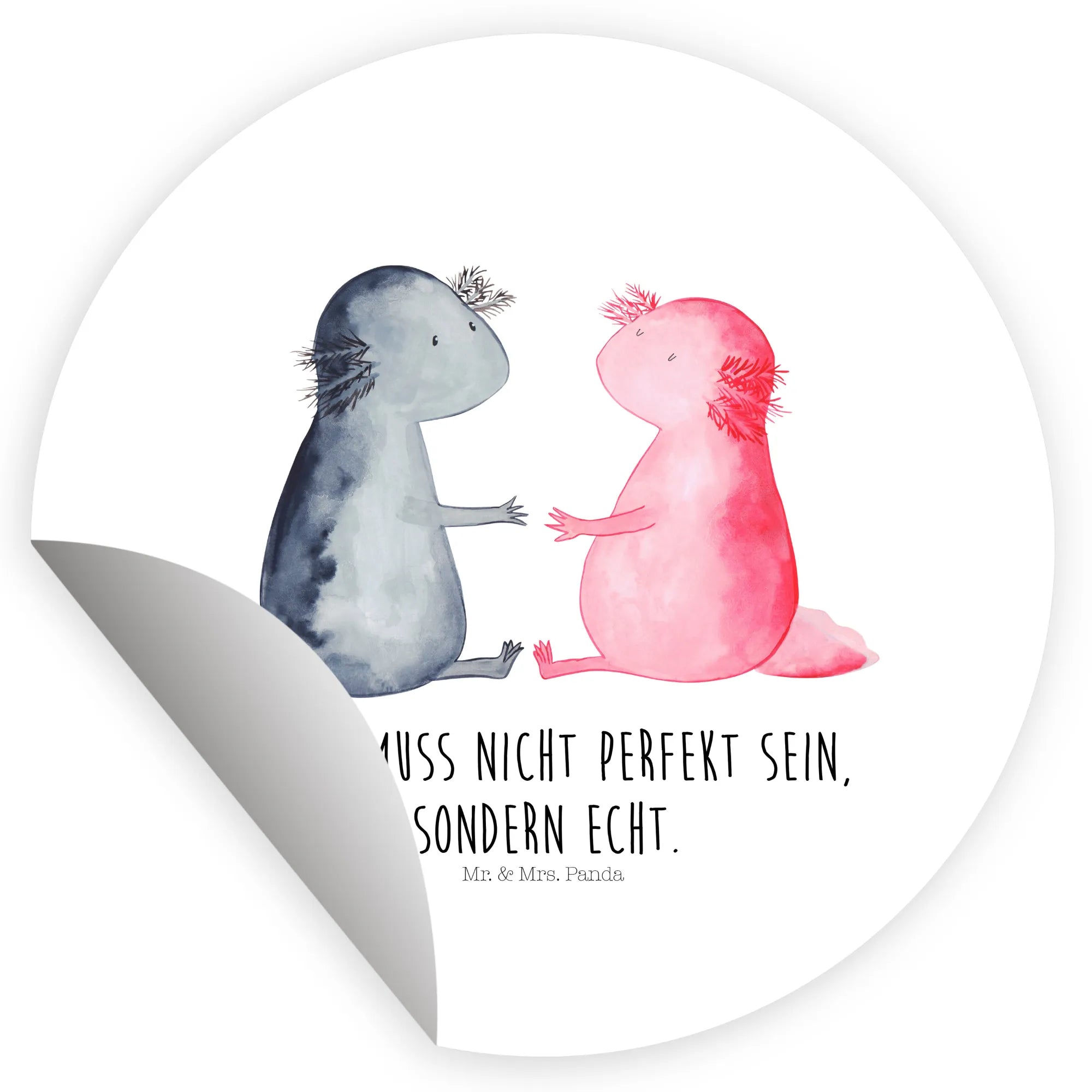80mm okrągła naklejka Axolotl miłość - 80mm Rund Aufkleber - z napisem - Pastelowy szary