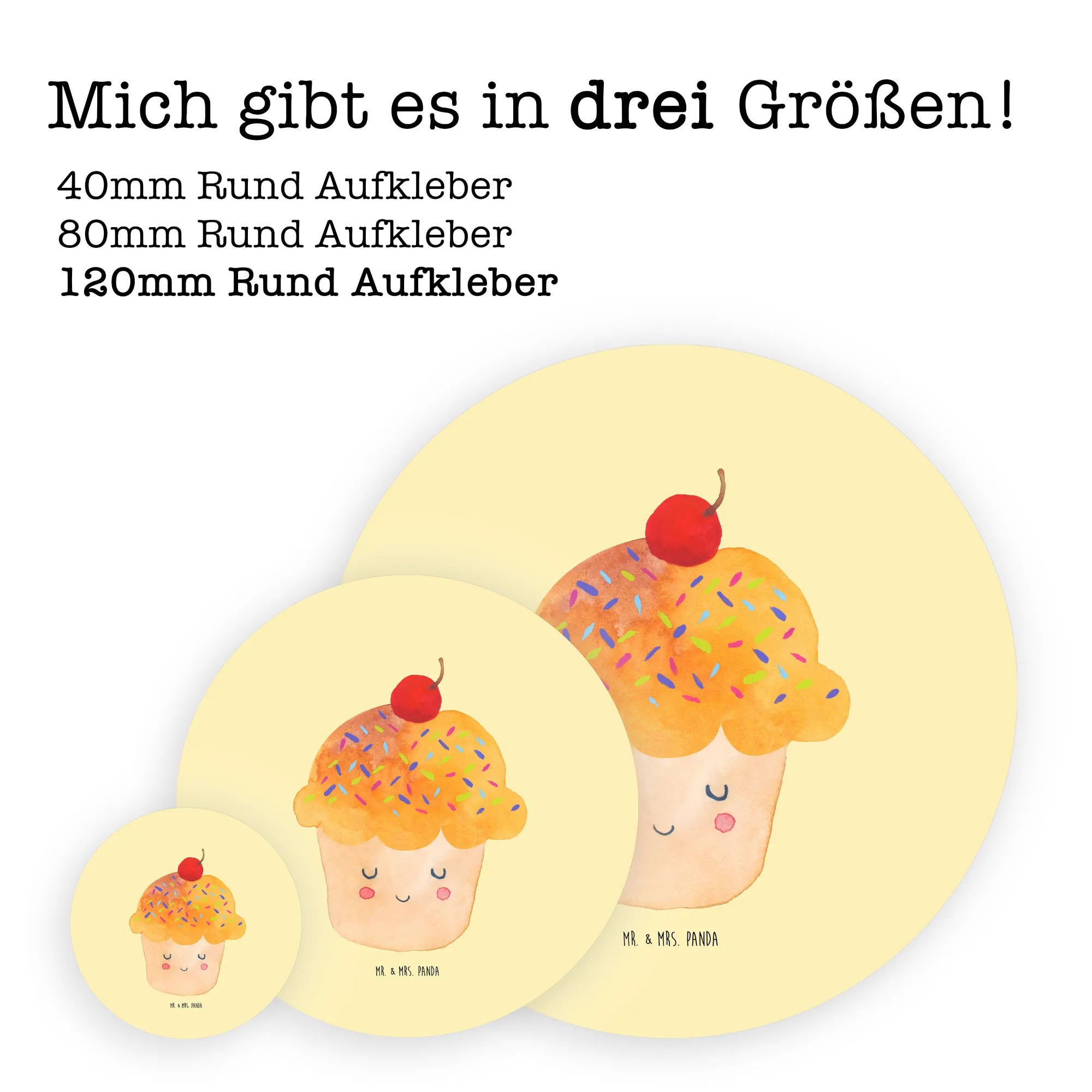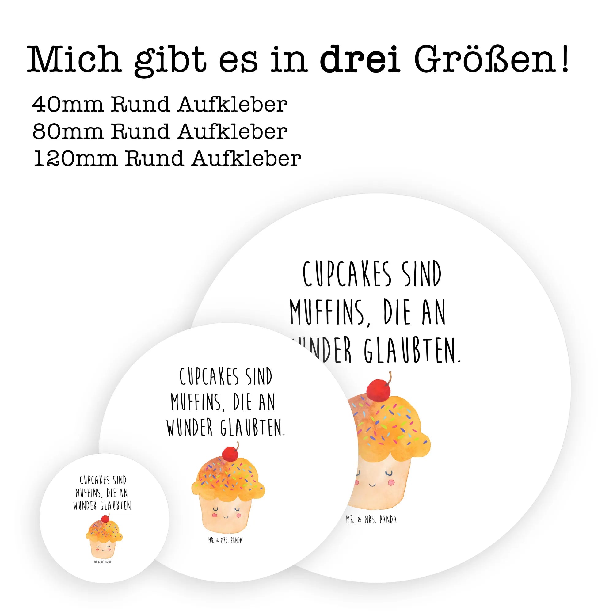 80mm okrągła naklejka Babeczka - 80mm Rund Aufkleber - z napisem - biały