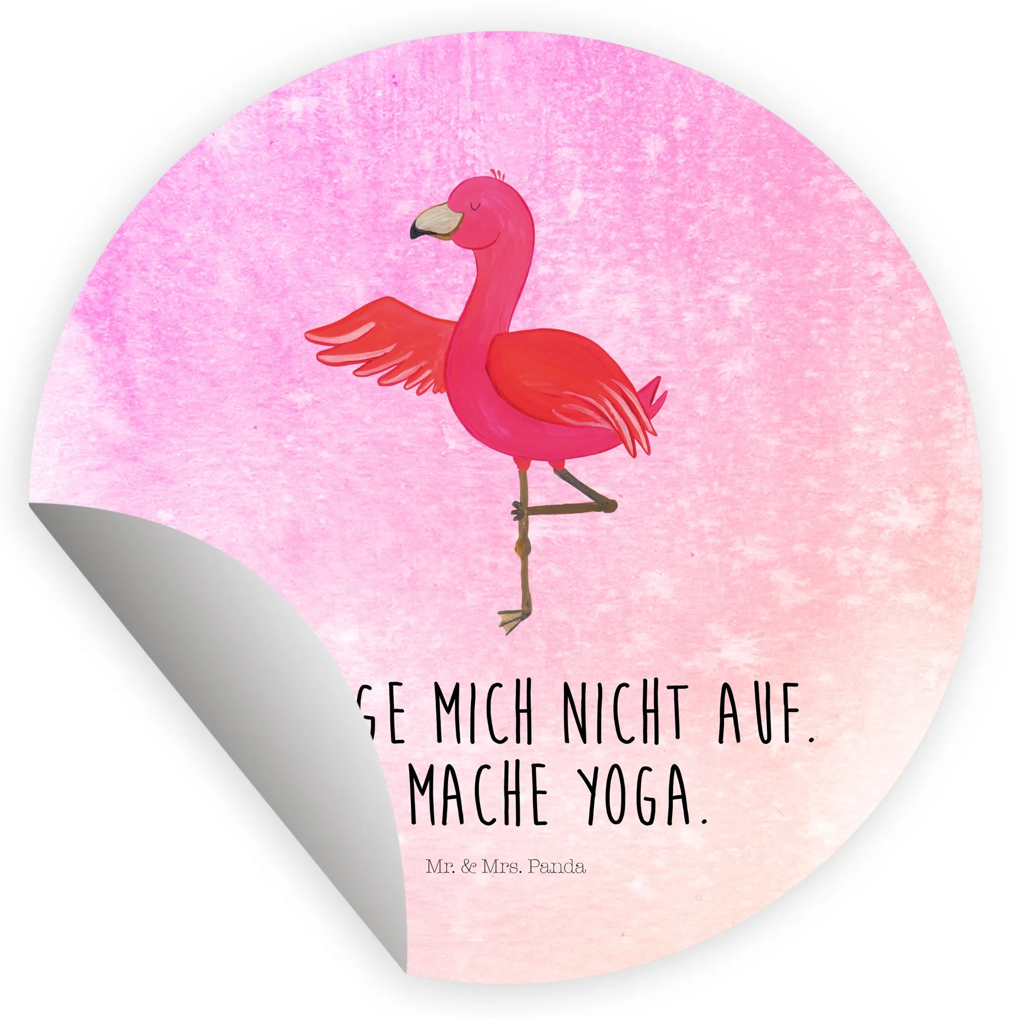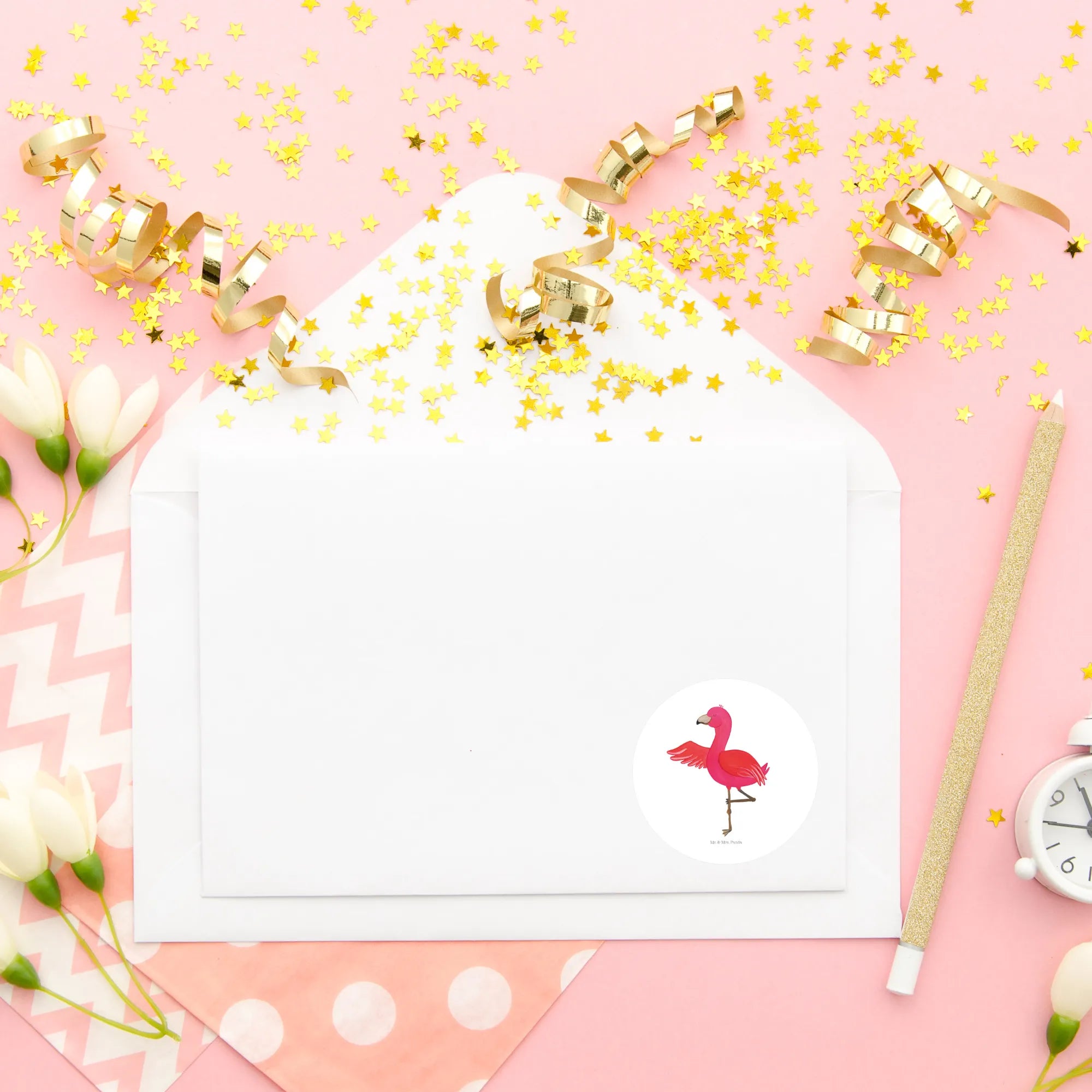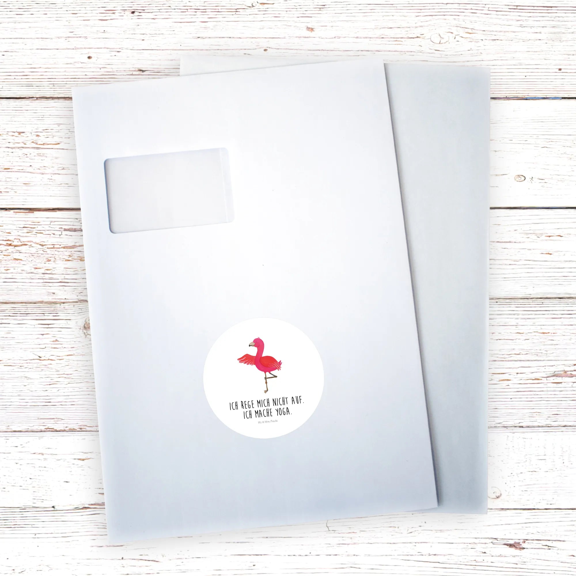80mm okrągła naklejka Flamingo joga - 80mm Rund Aufkleber - z napisem - biały