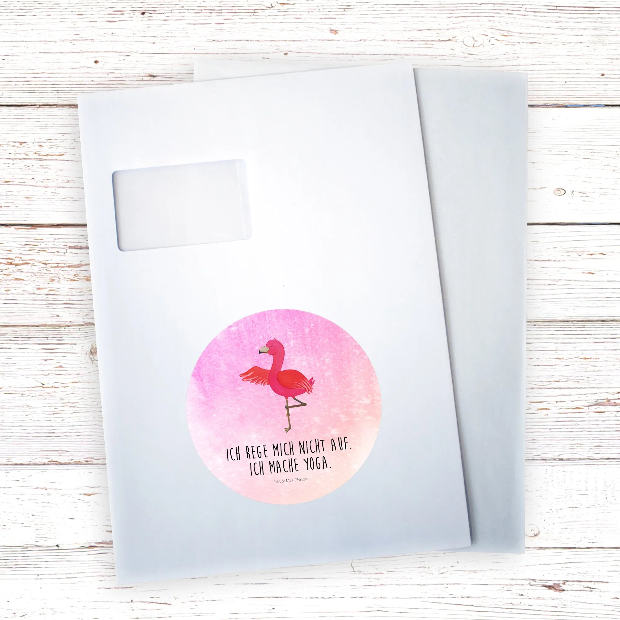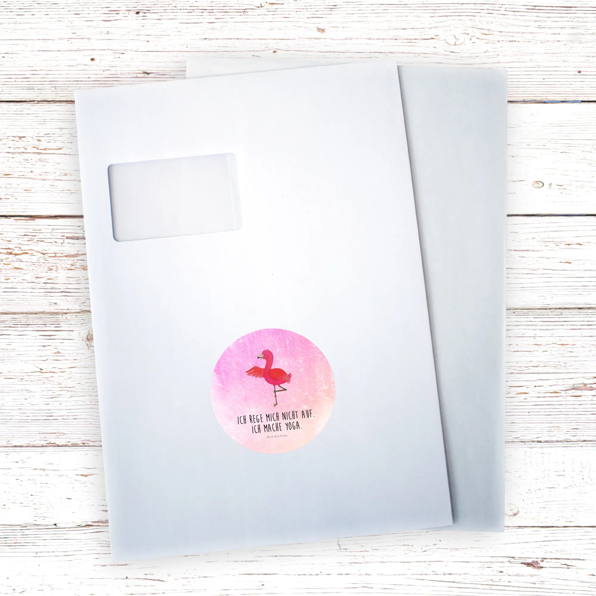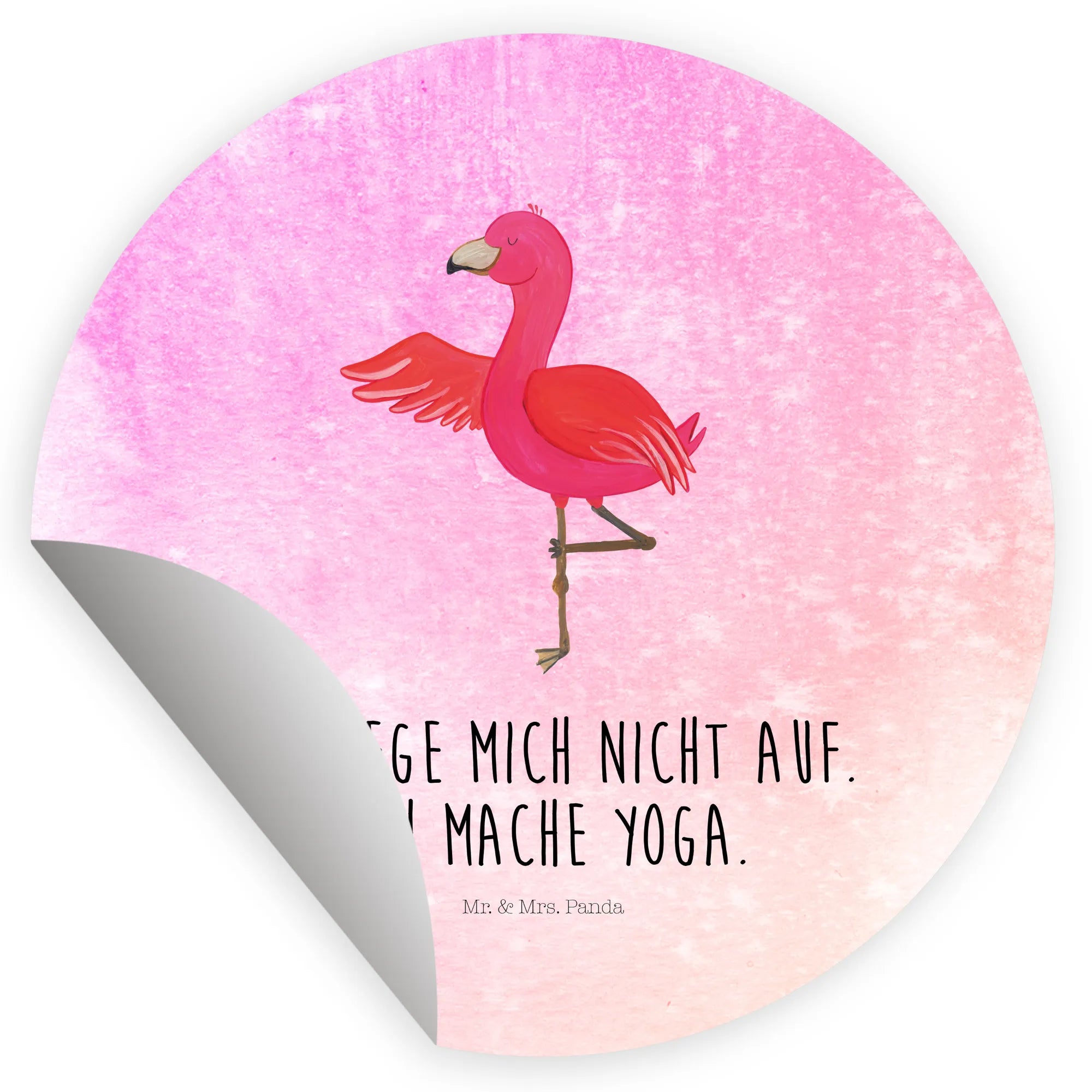 80mm okrągła naklejka Flamingo joga - 80mm Rund Aufkleber - z napisem - biały