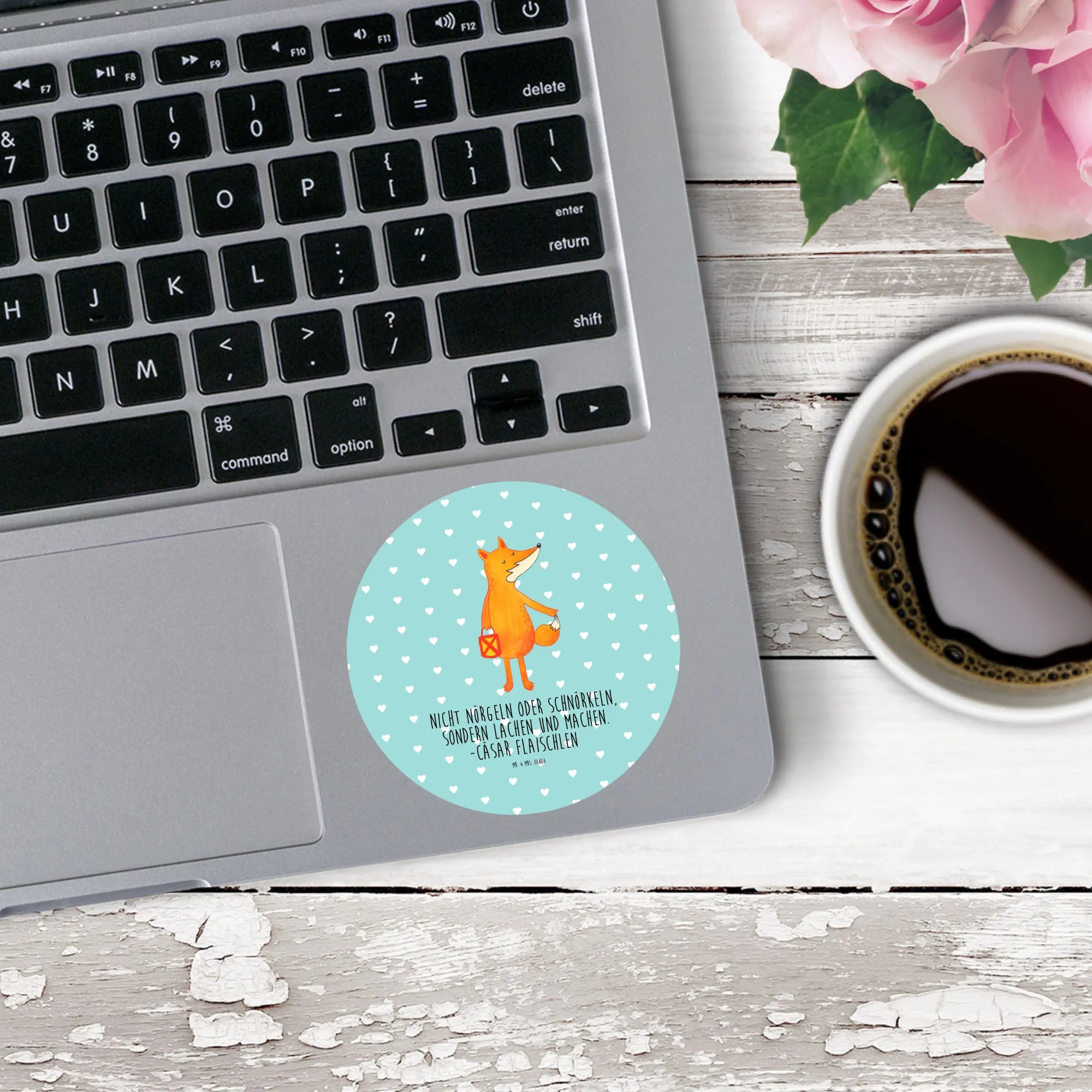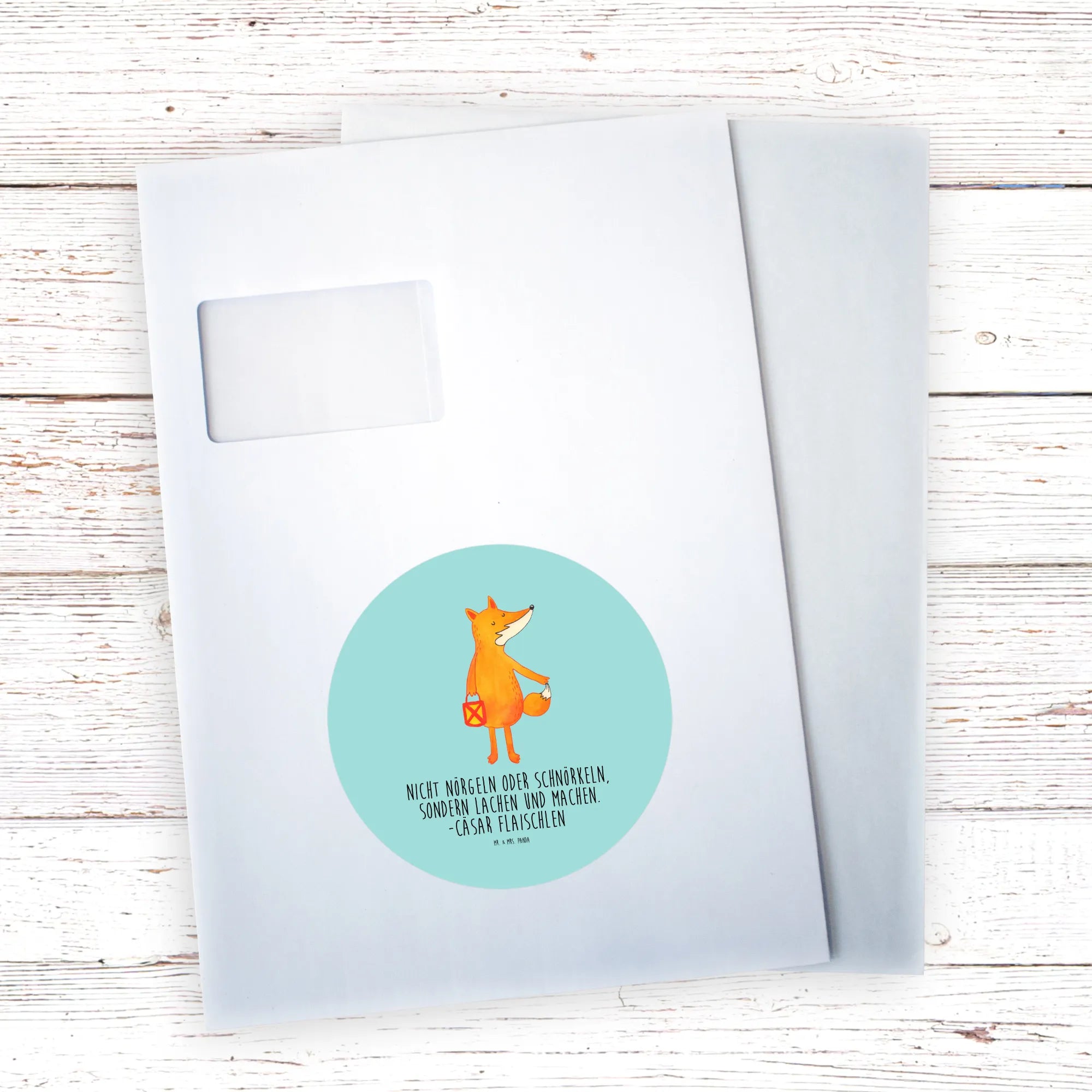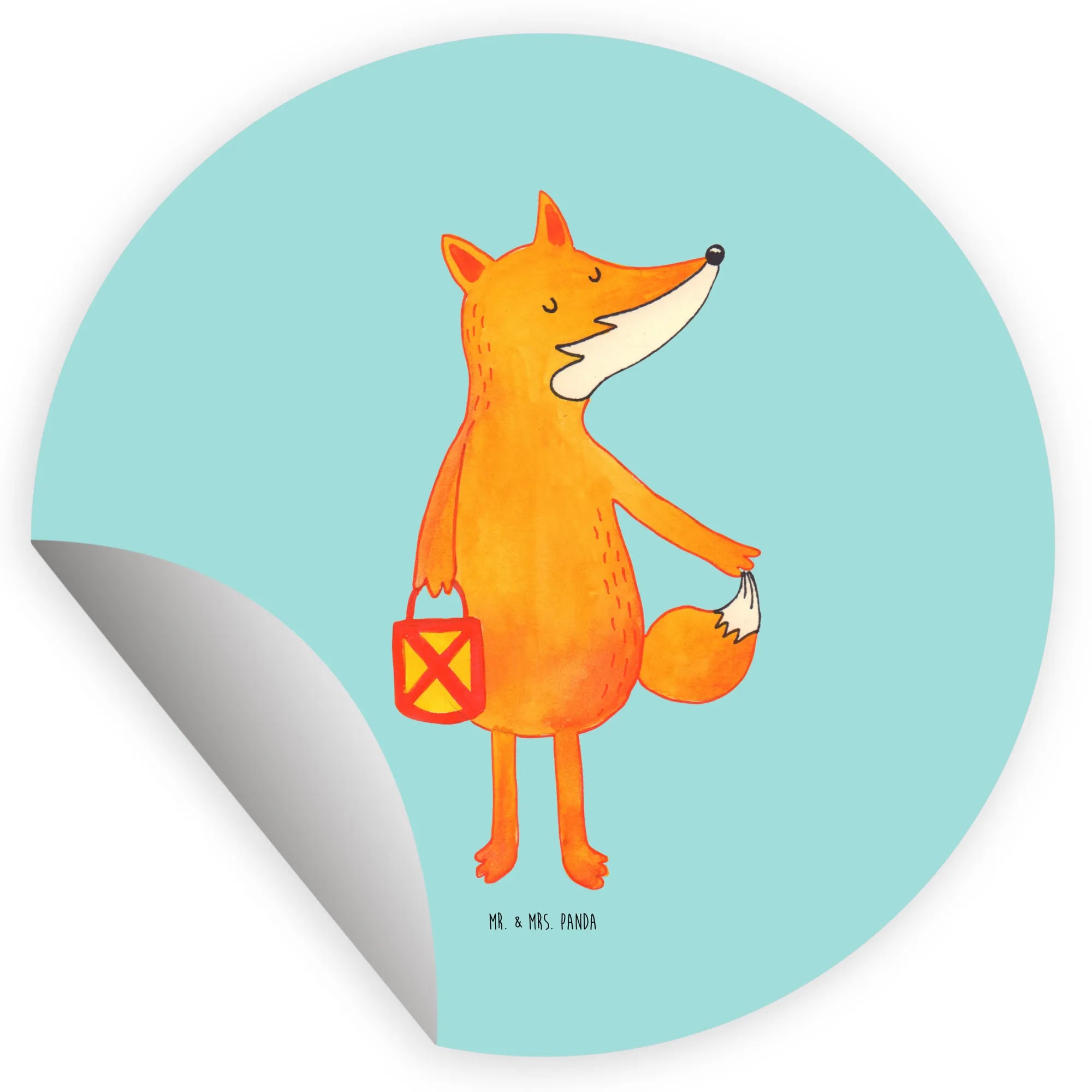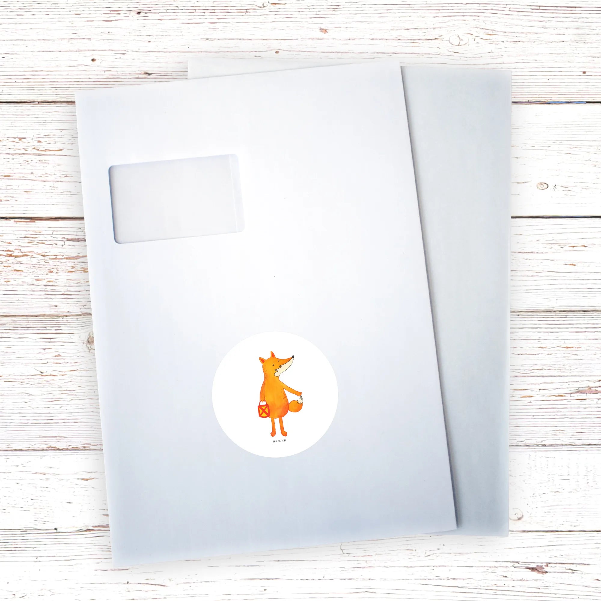 80mm okrągła naklejka lis latarnia - 80mm Rund Aufkleber - z napisem - biały