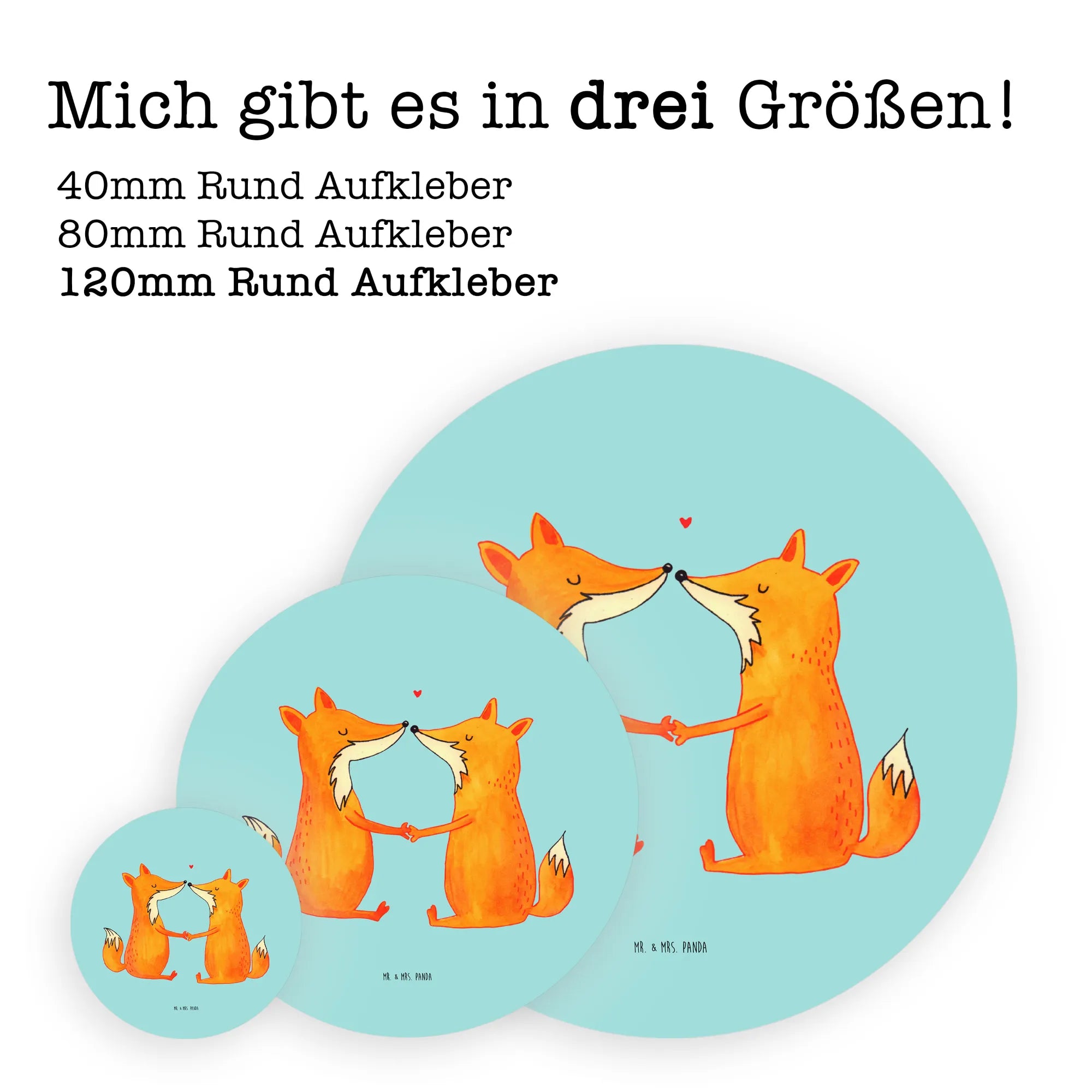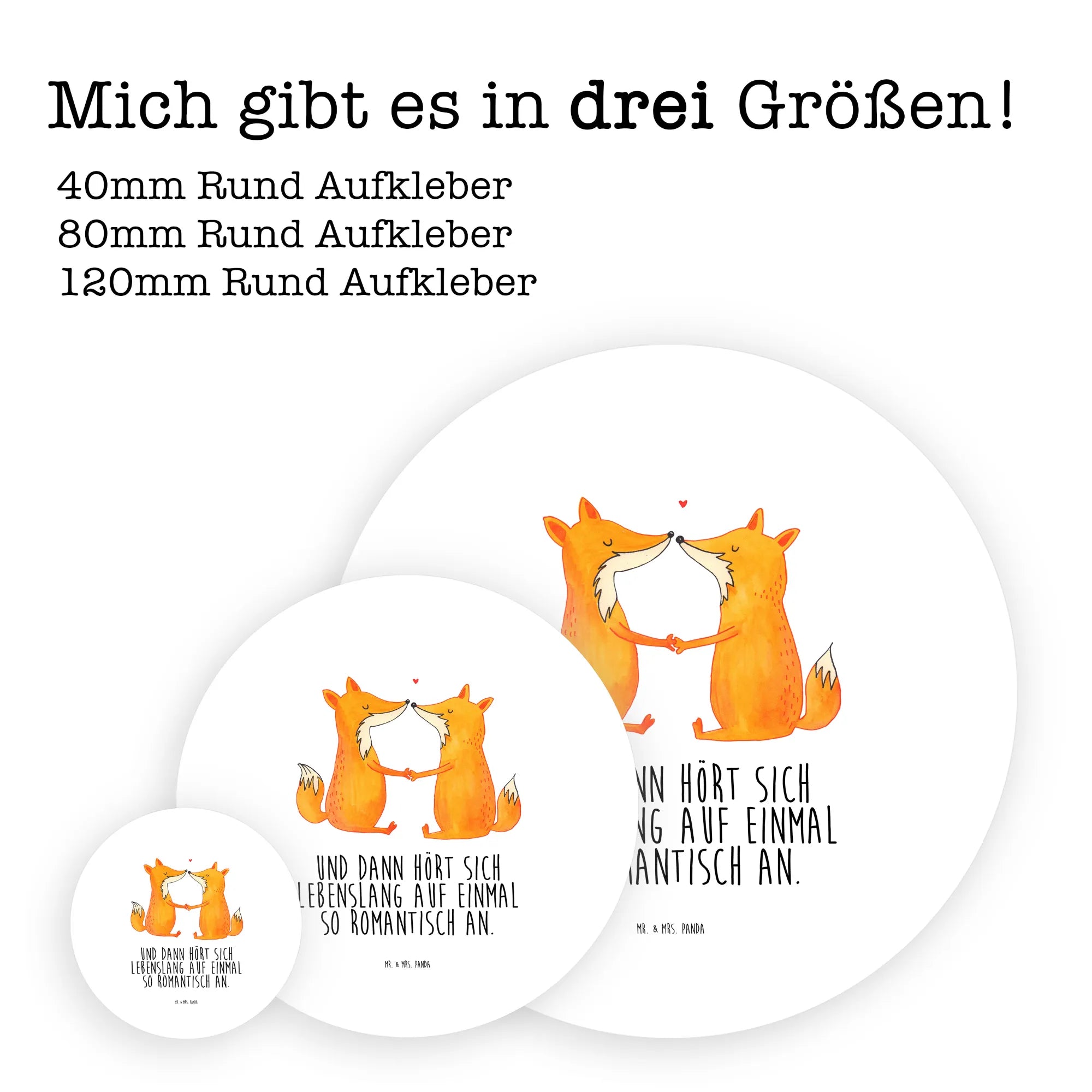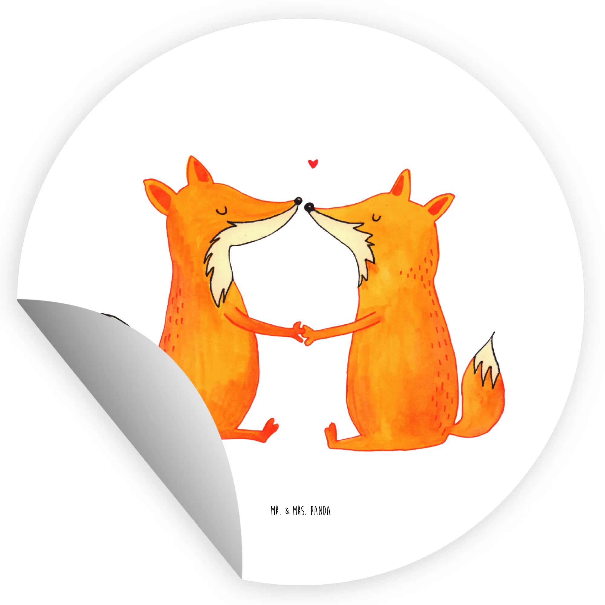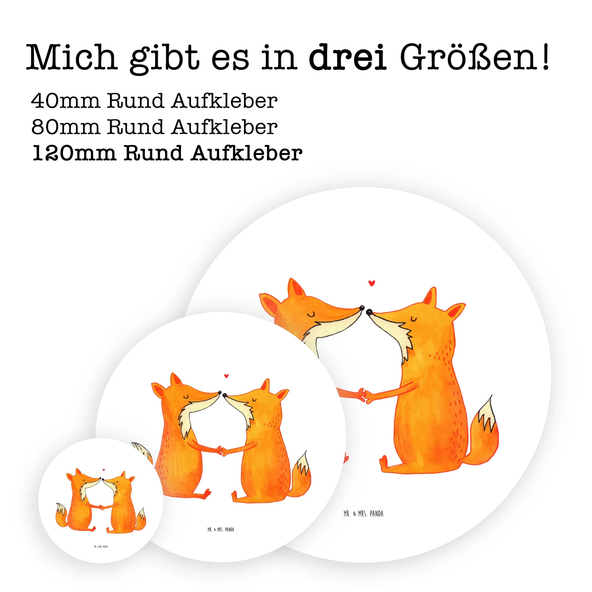 80mm okrągła naklejka lisy miłość - 80mm Rund Aufkleber - z napisem - biały