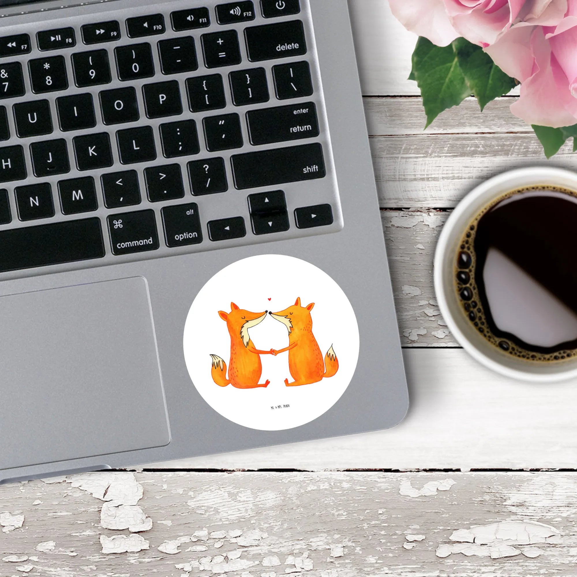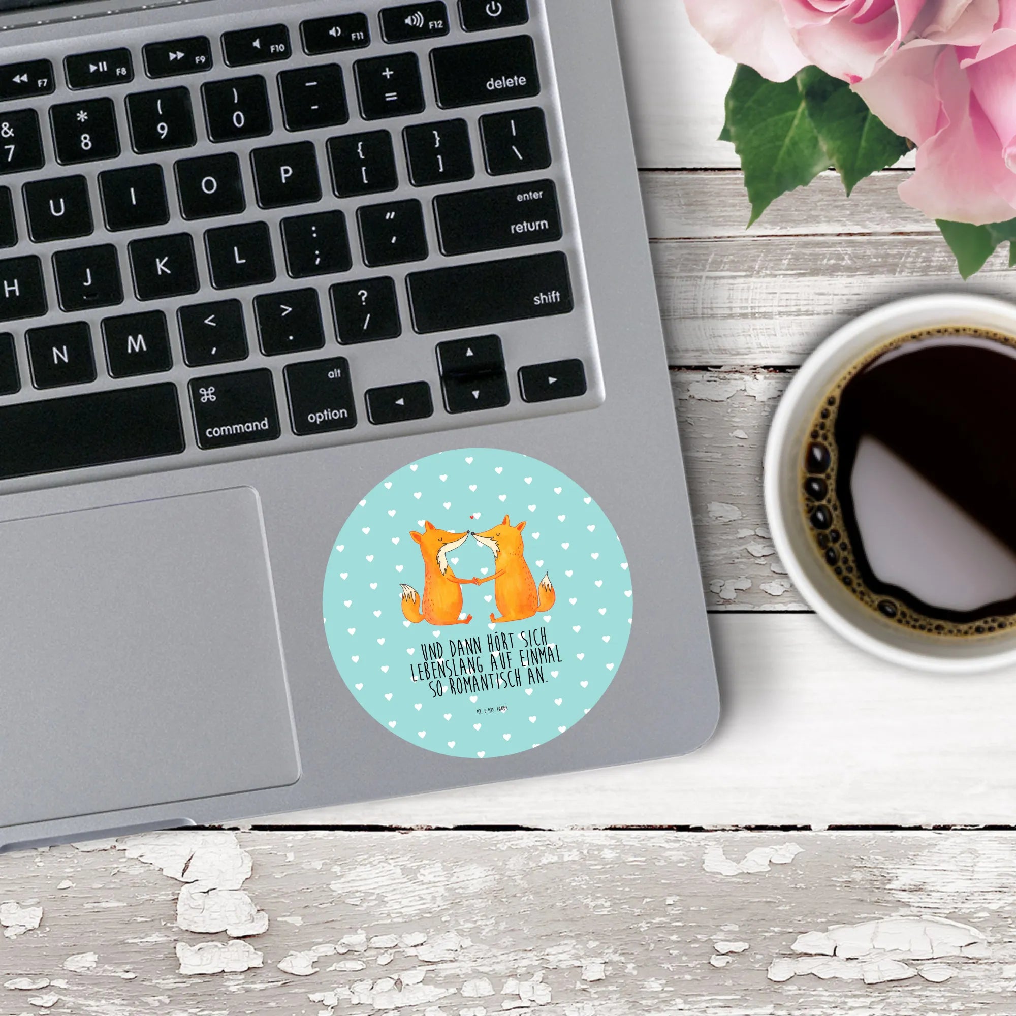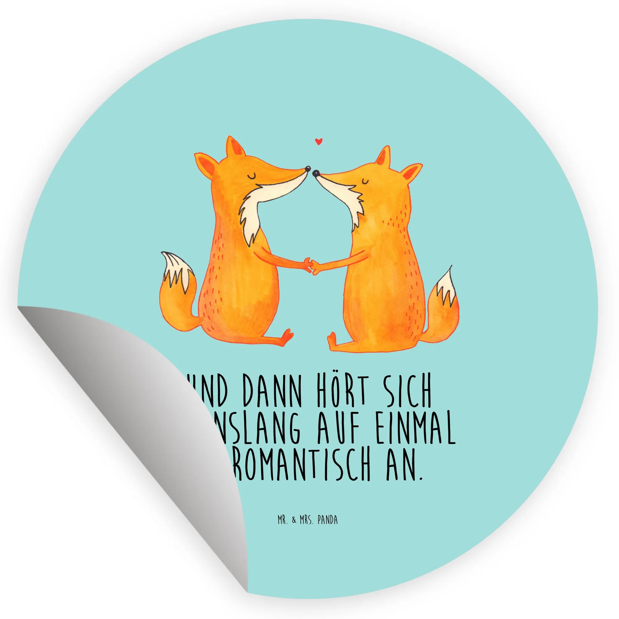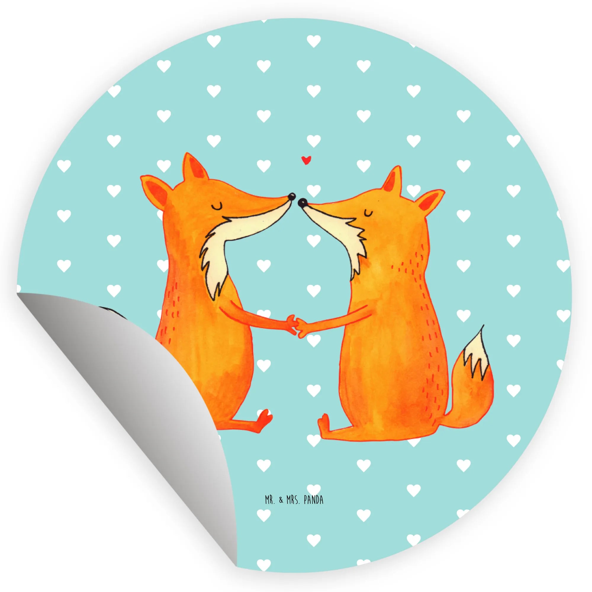 80mm okrągła naklejka lisy miłość - 80mm Rund Aufkleber - z napisem - biały