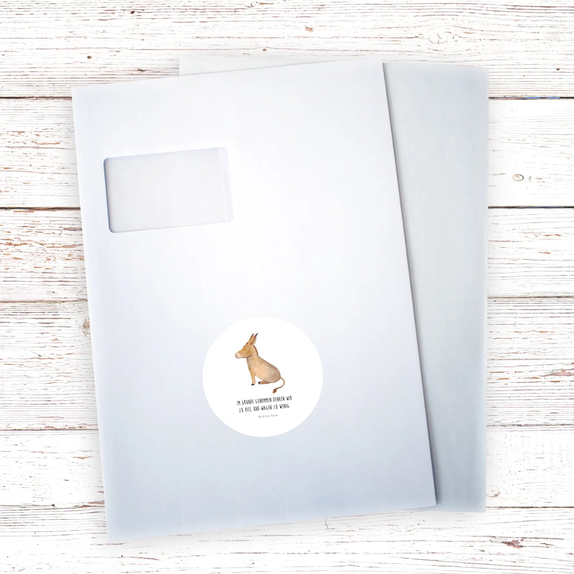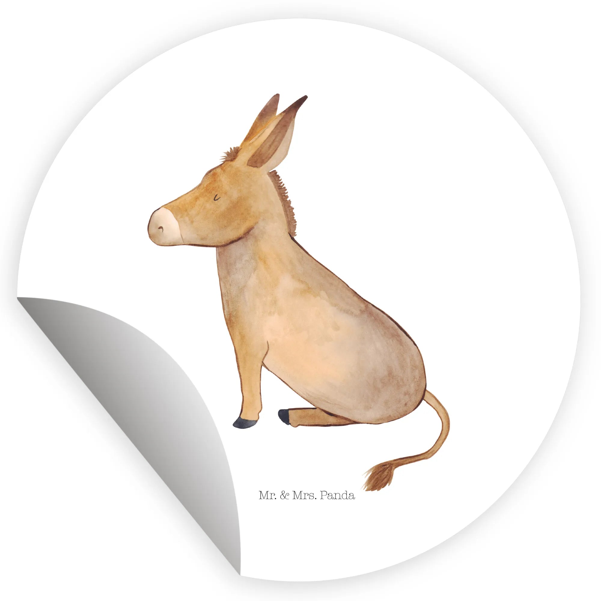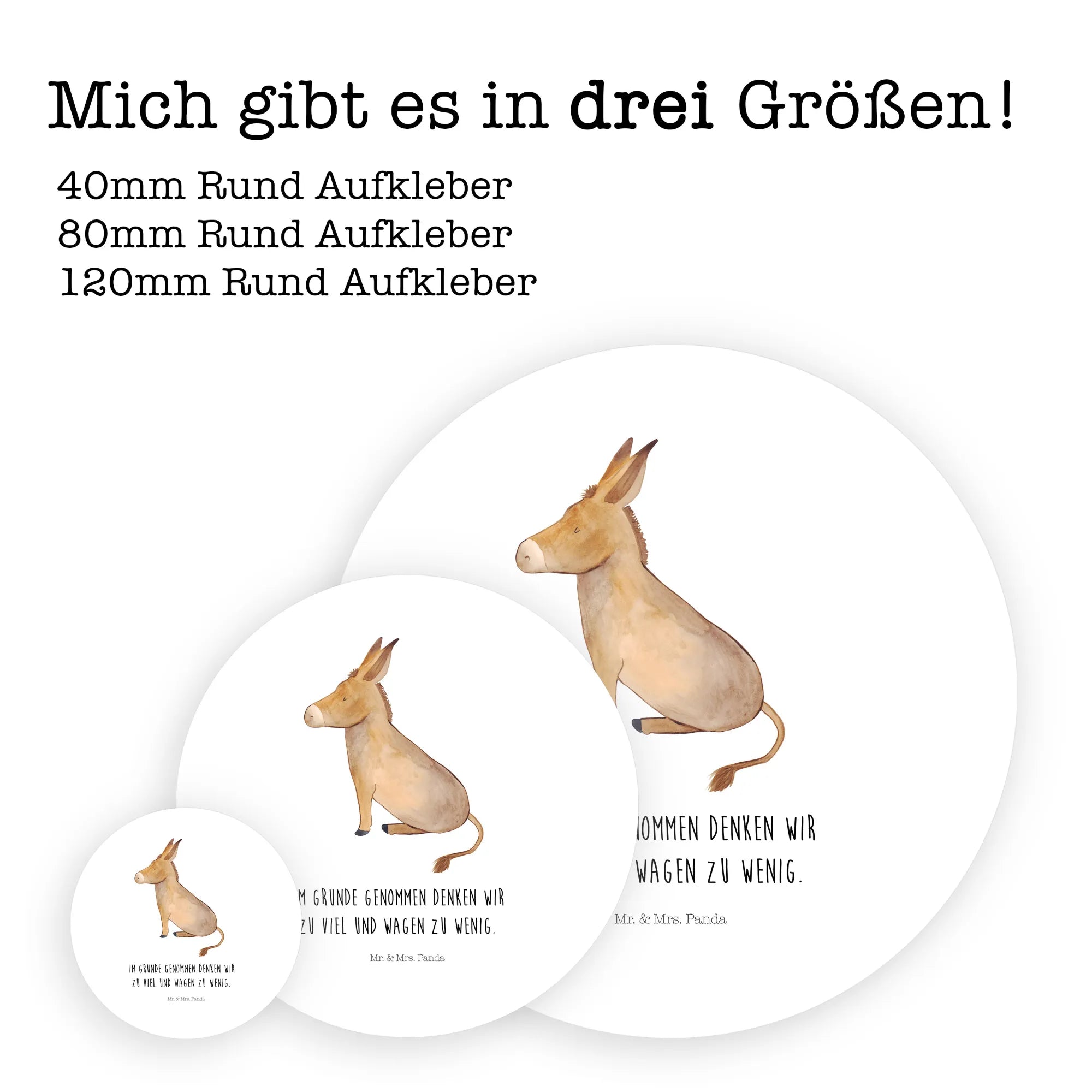 80mm okrągła naklejka Osioł - 80mm Rund Aufkleber - z napisem - biały