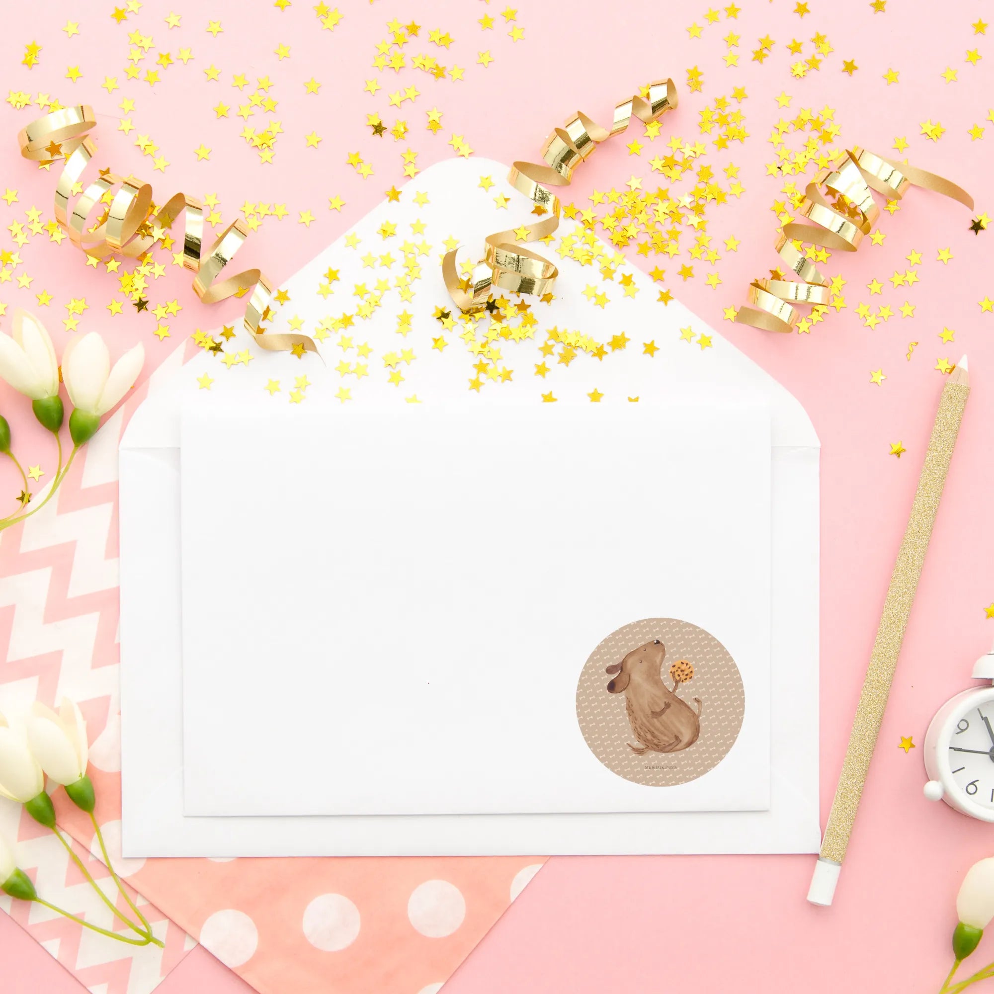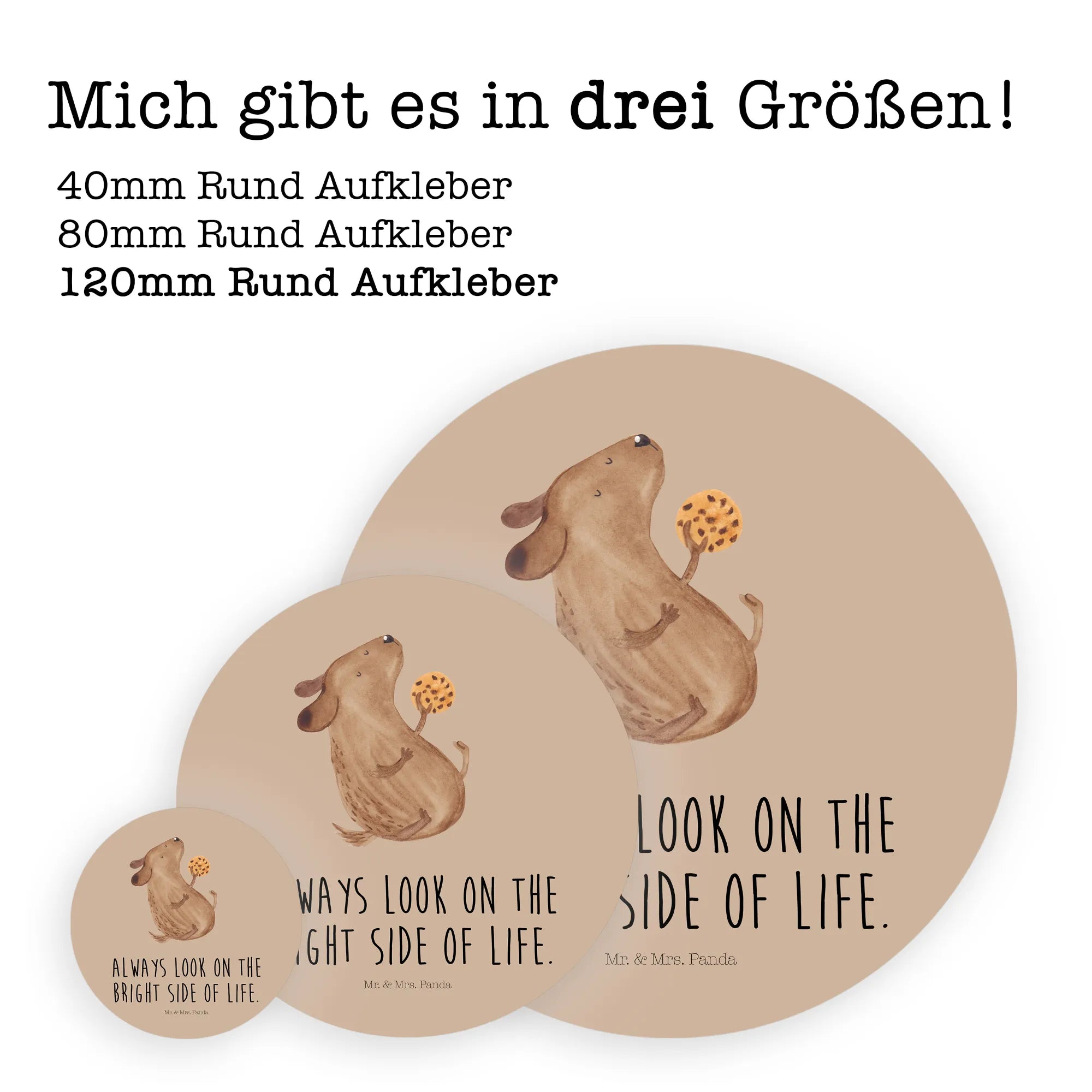 80mm okrągła naklejka pies ciastko - 80mm Rund Aufkleber - z napisem - biały