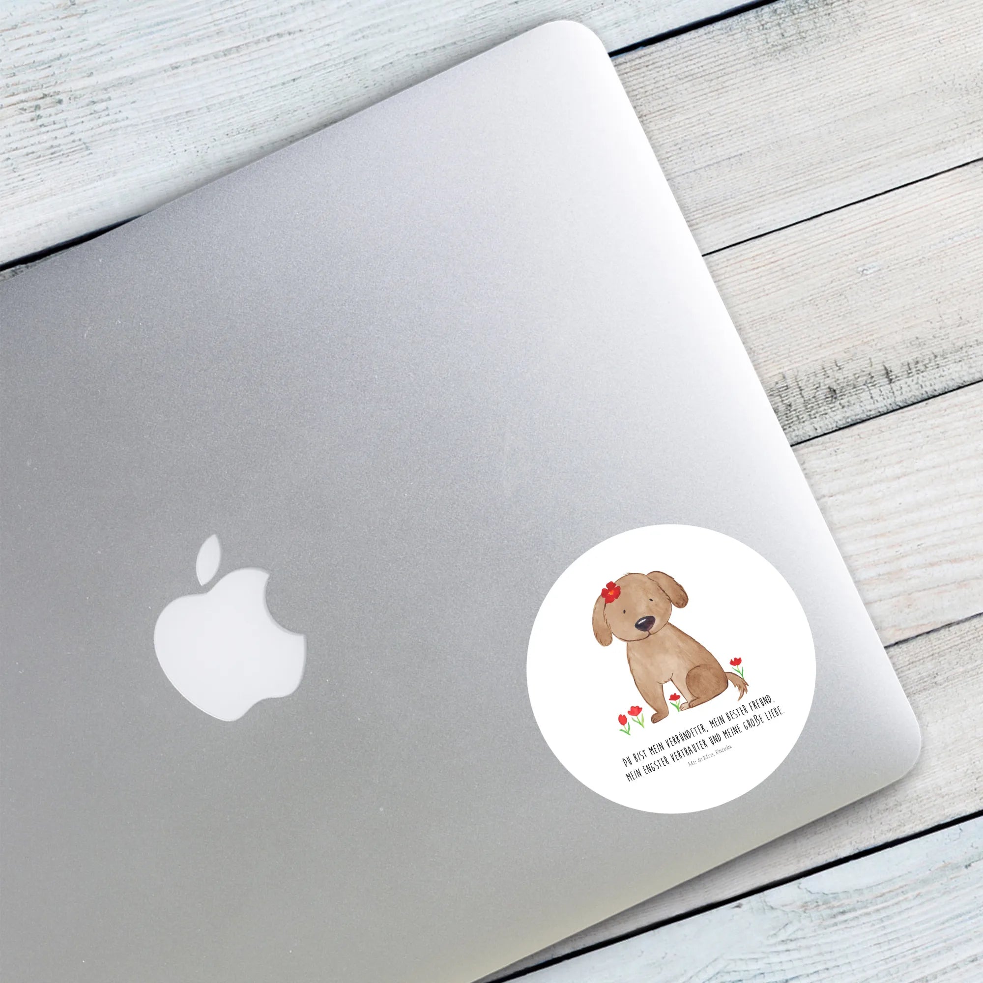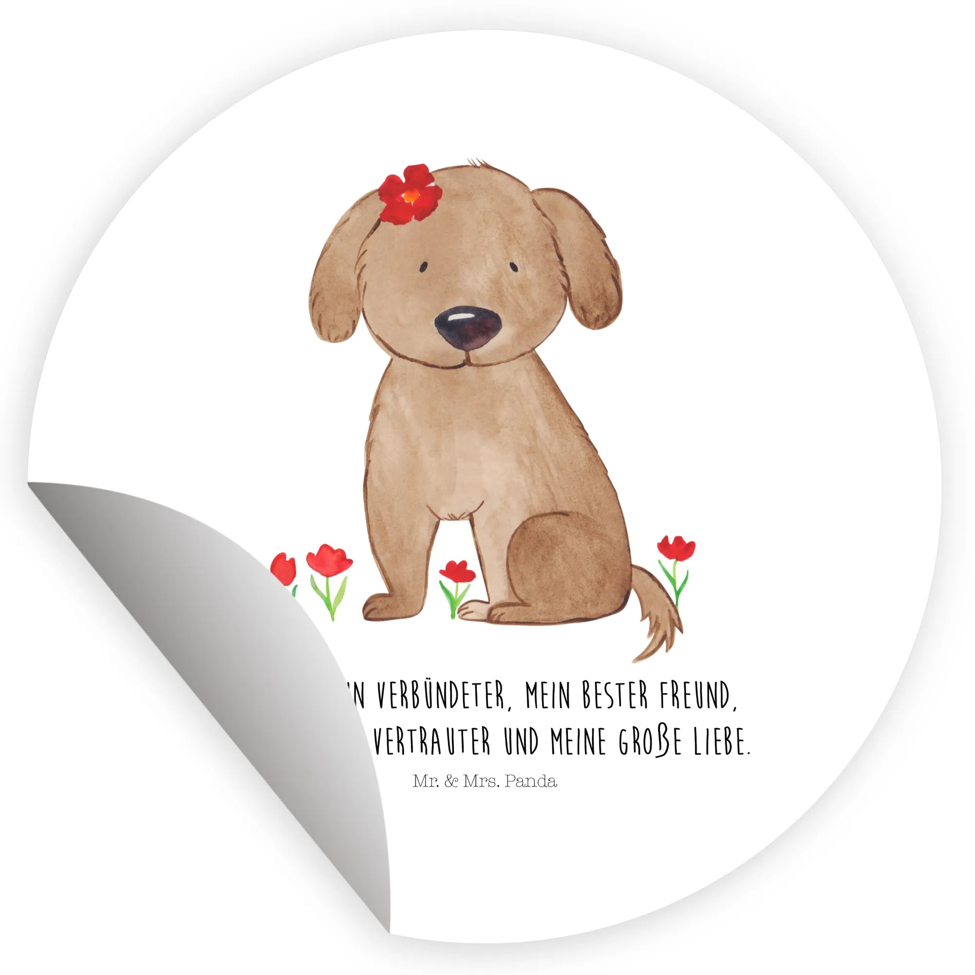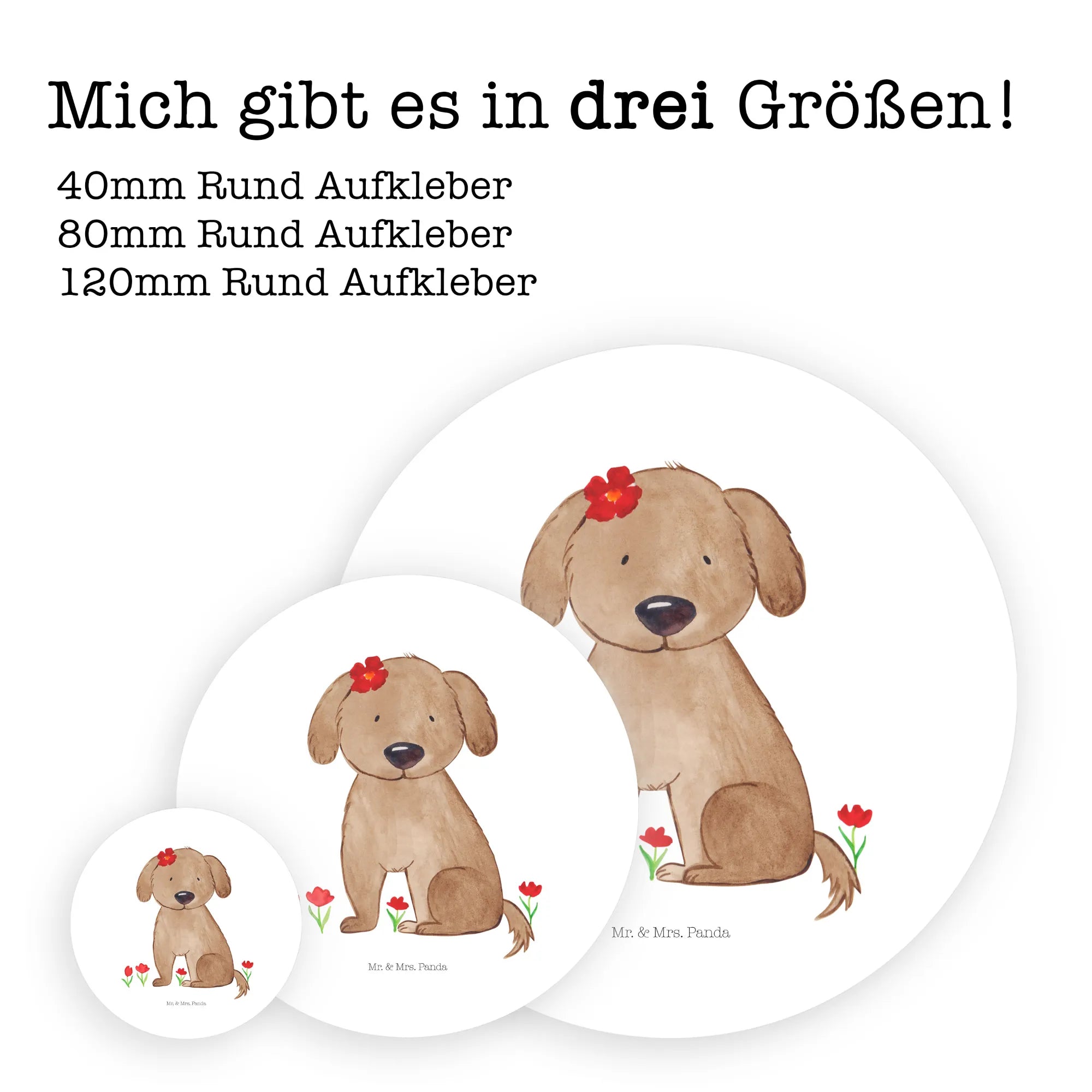 80mm okrągła naklejka pies Dama - 80mm Rund Aufkleber - z napisem - biały