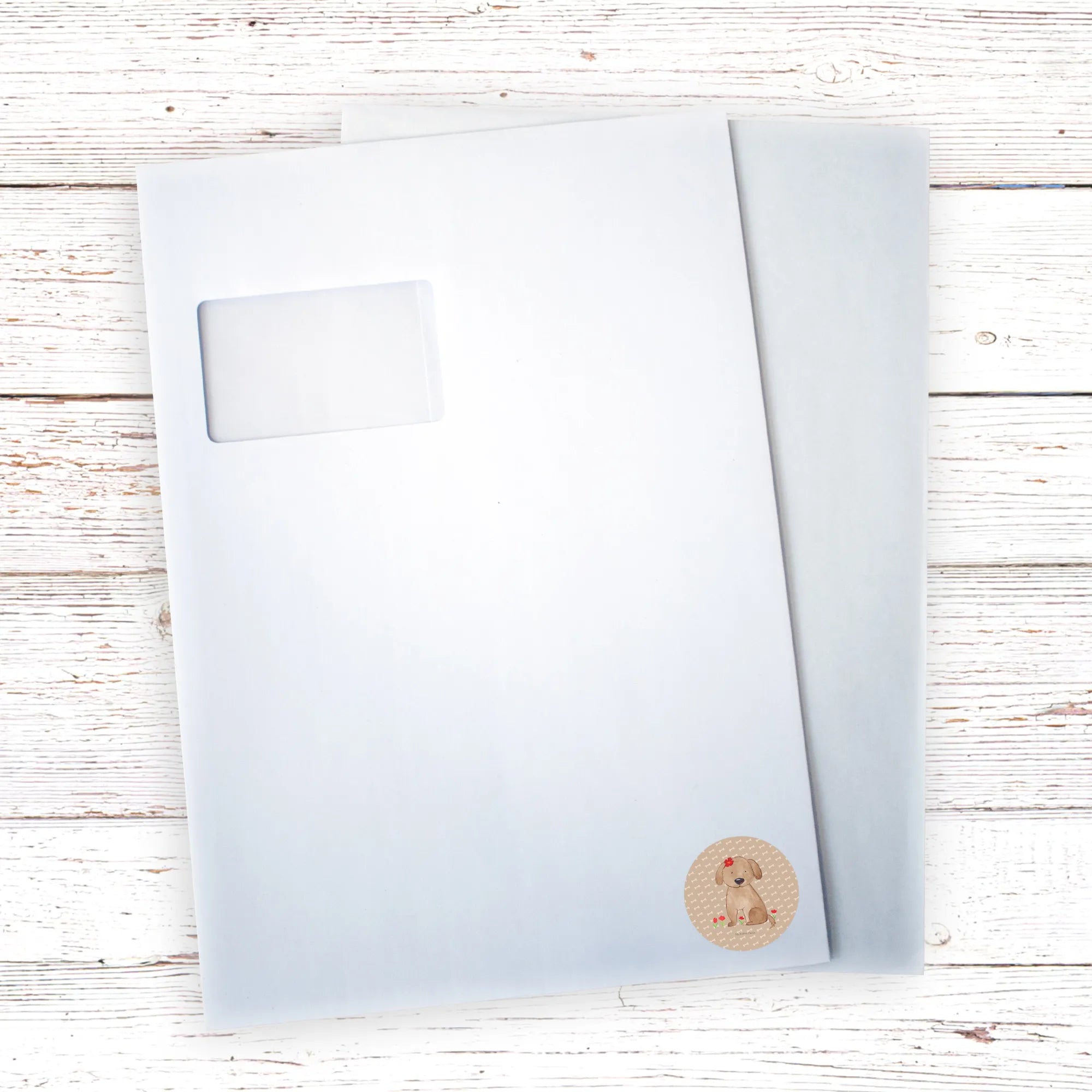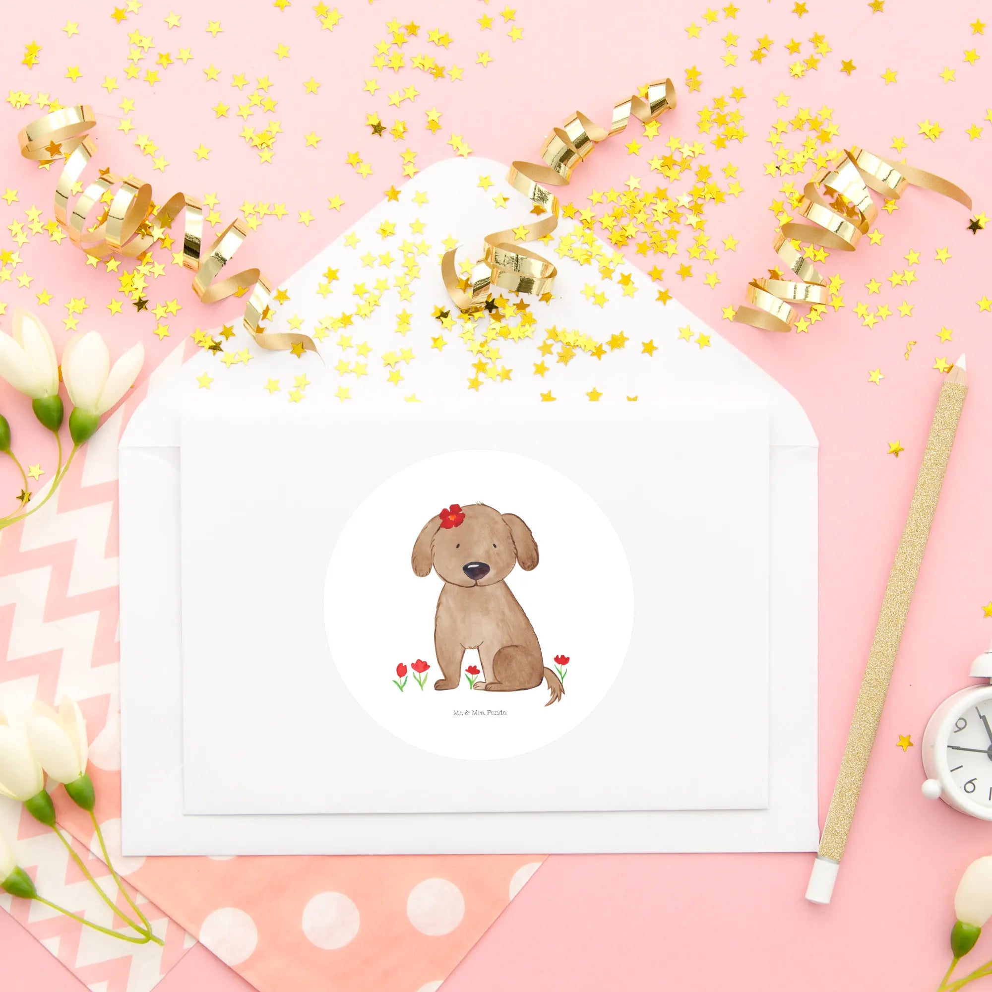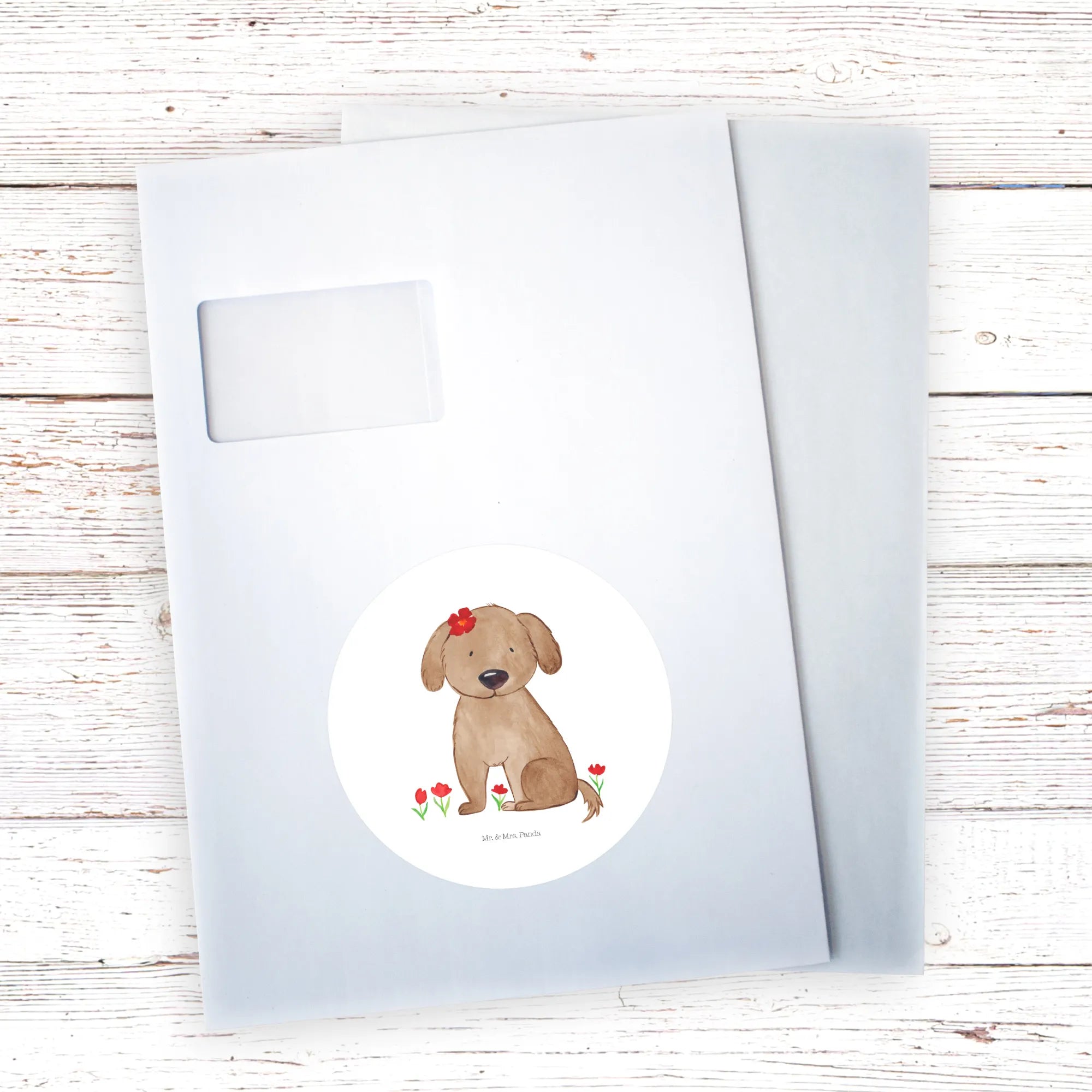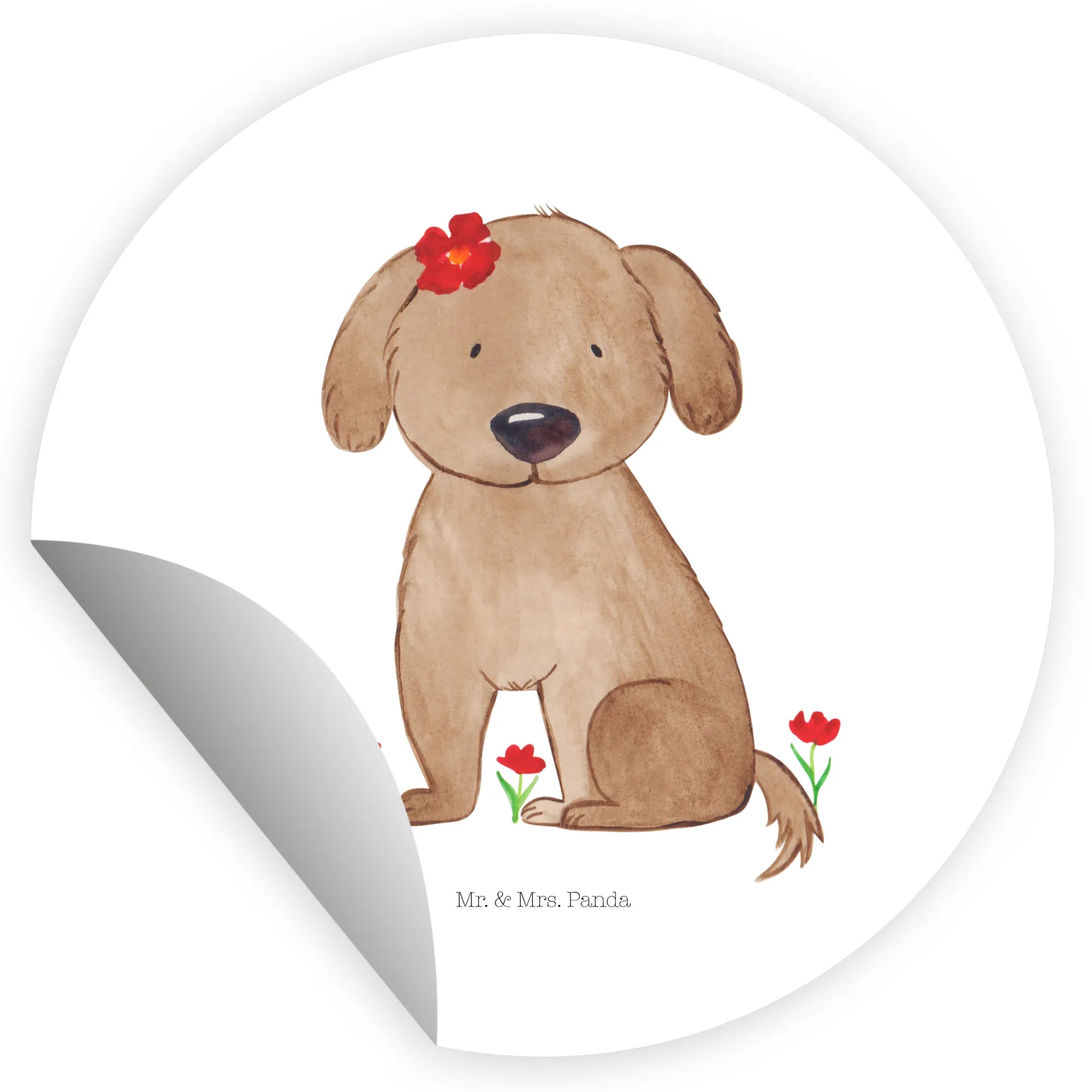 80mm okrągła naklejka pies Dama - 80mm Rund Aufkleber - z napisem - biały