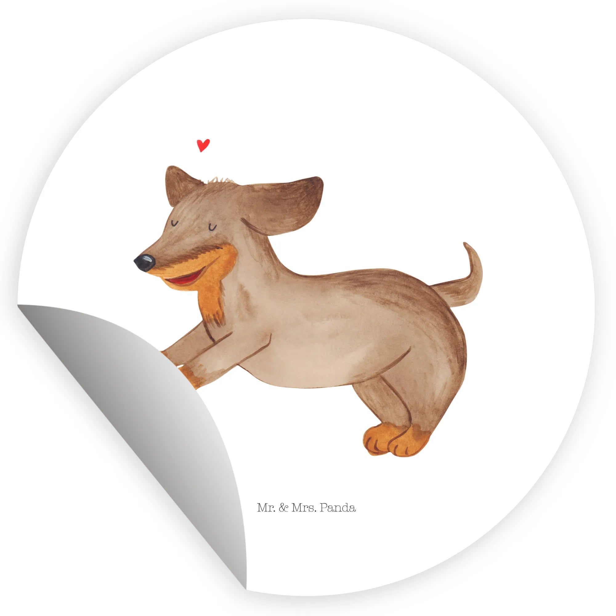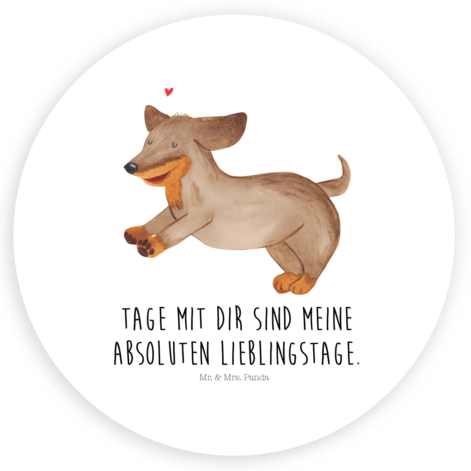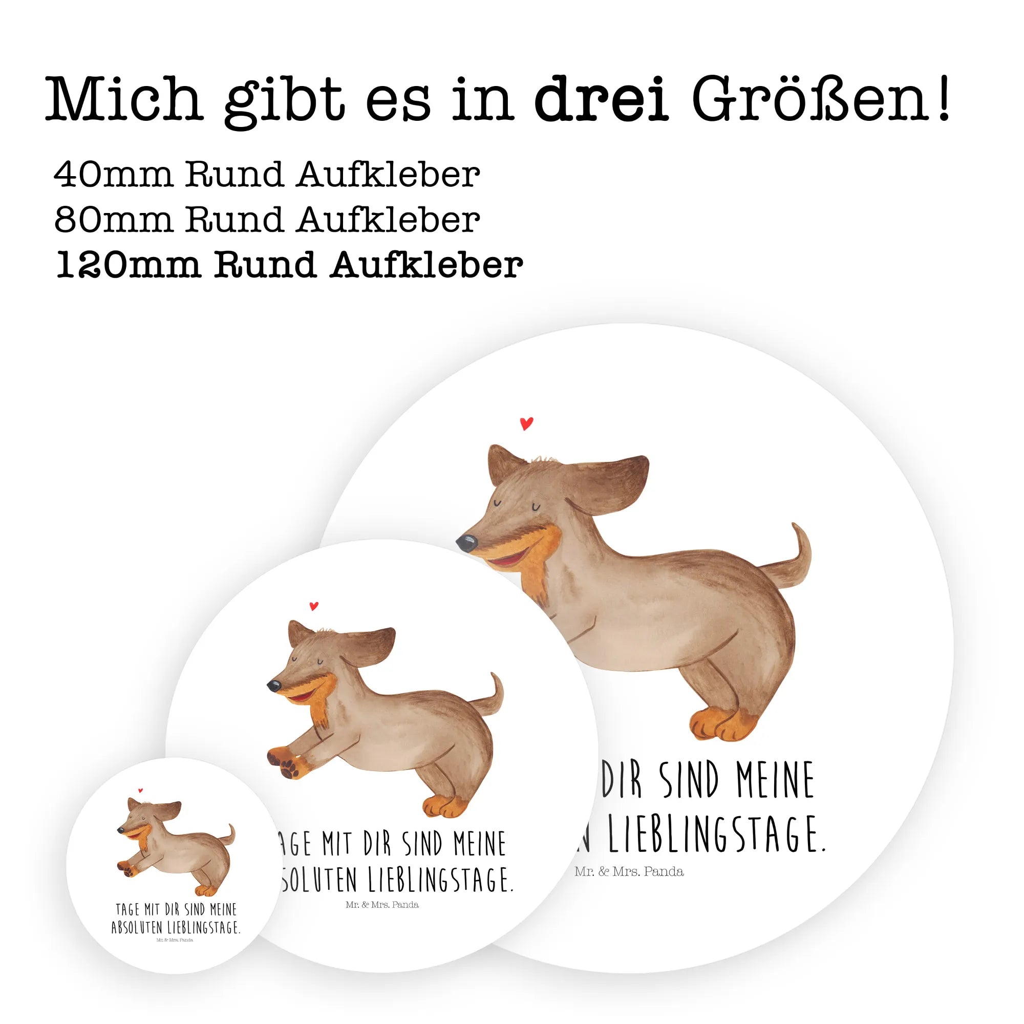80mm okrągła naklejka pies Jamnik - 80mm Rund Aufkleber - z napisem - biały