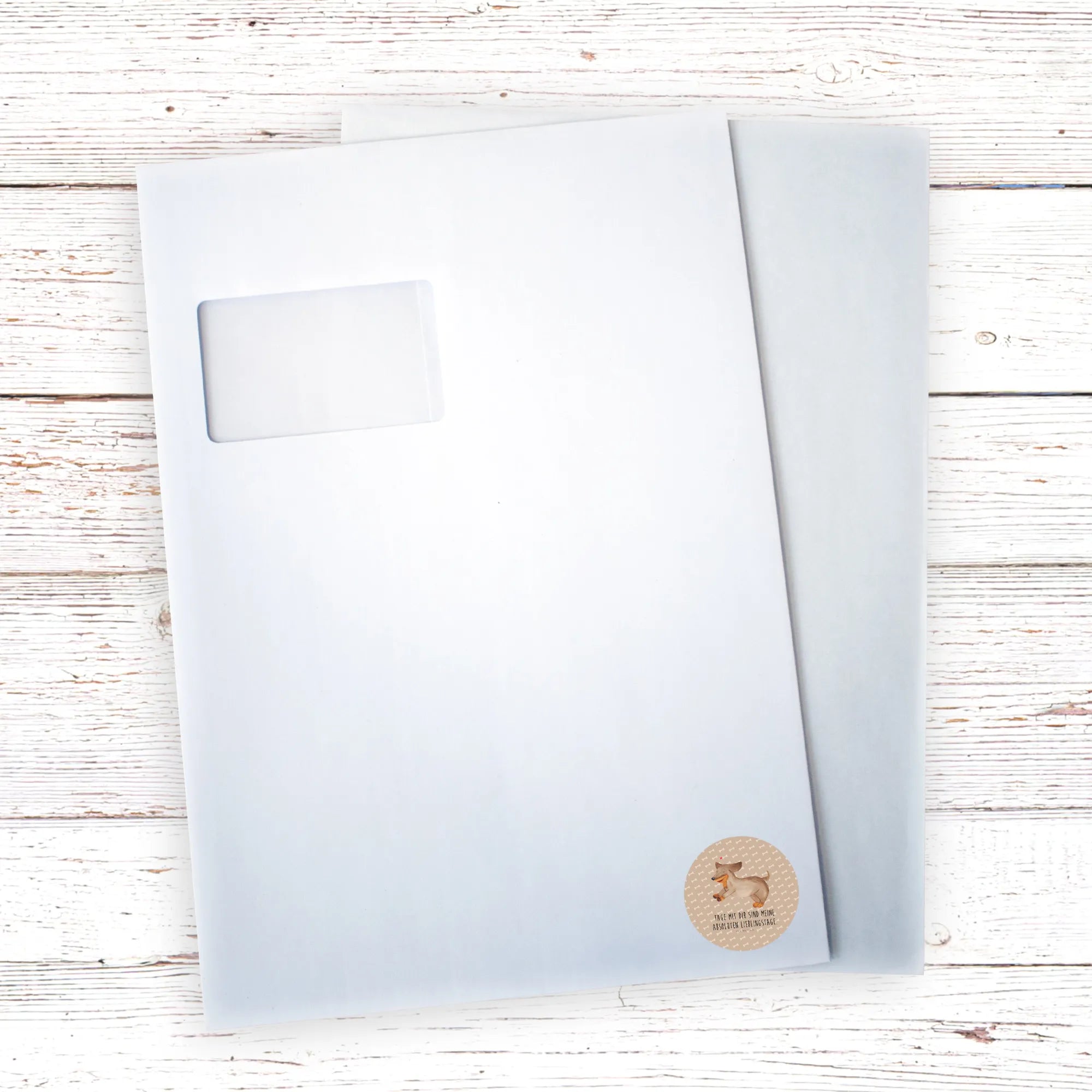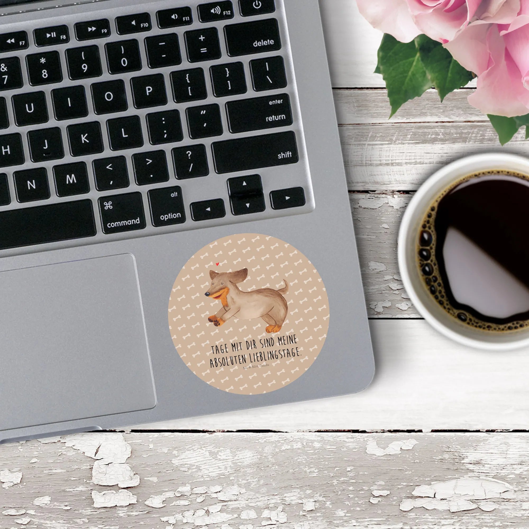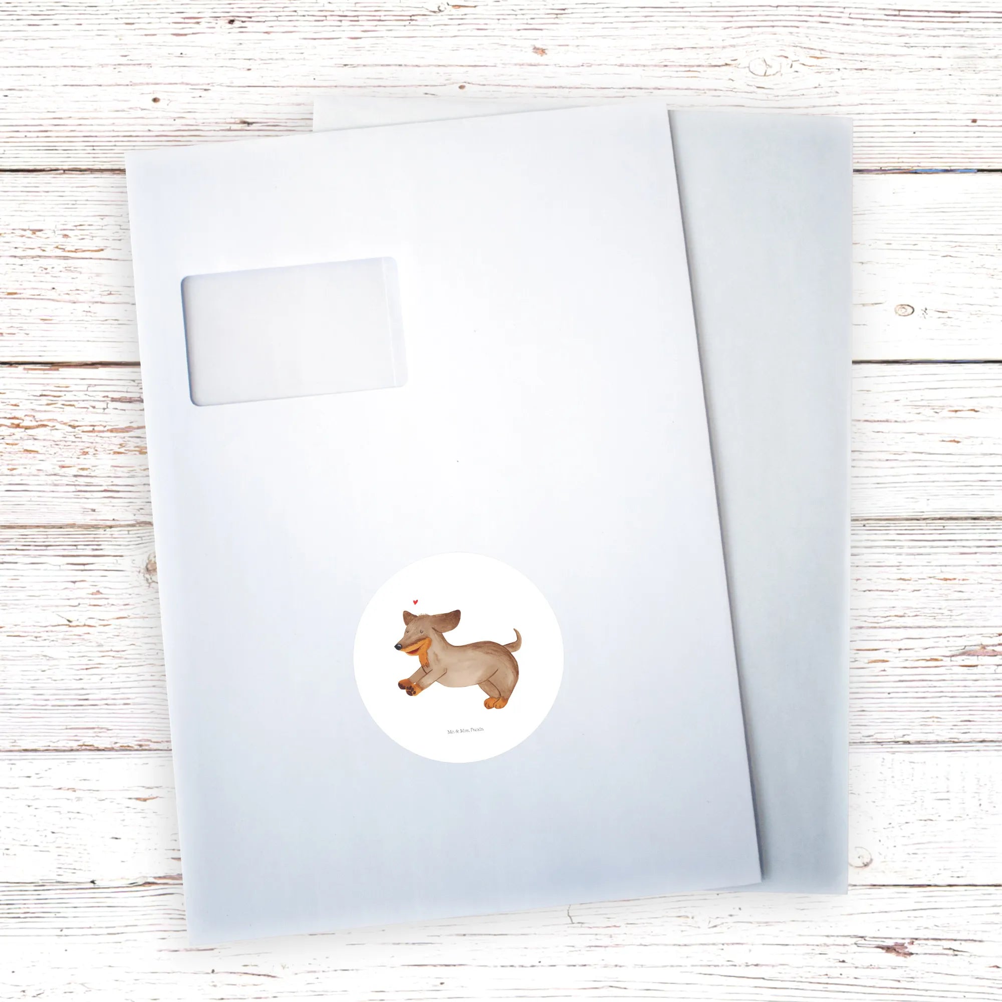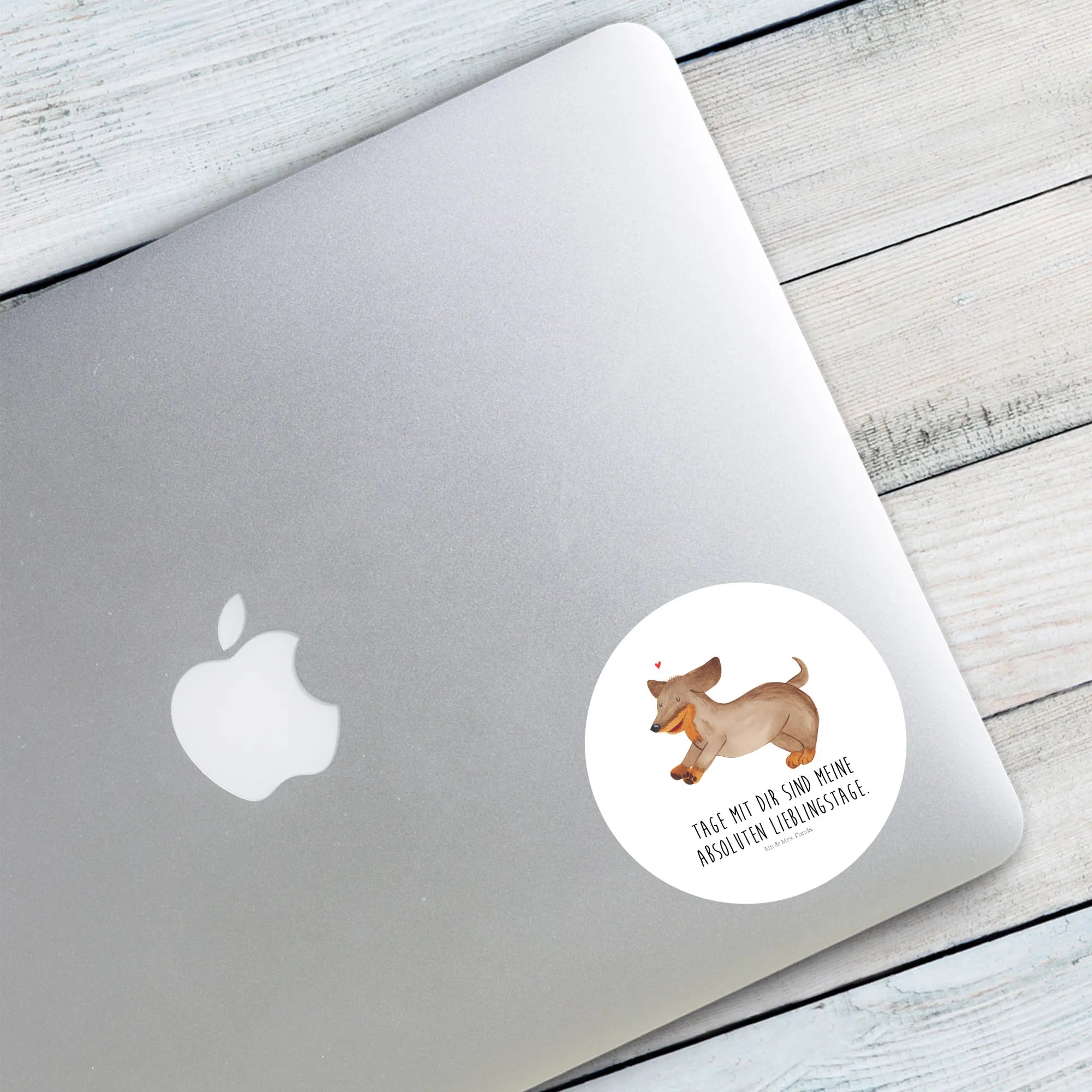 80mm okrągła naklejka pies Jamnik - 80mm Rund Aufkleber - z napisem - biały