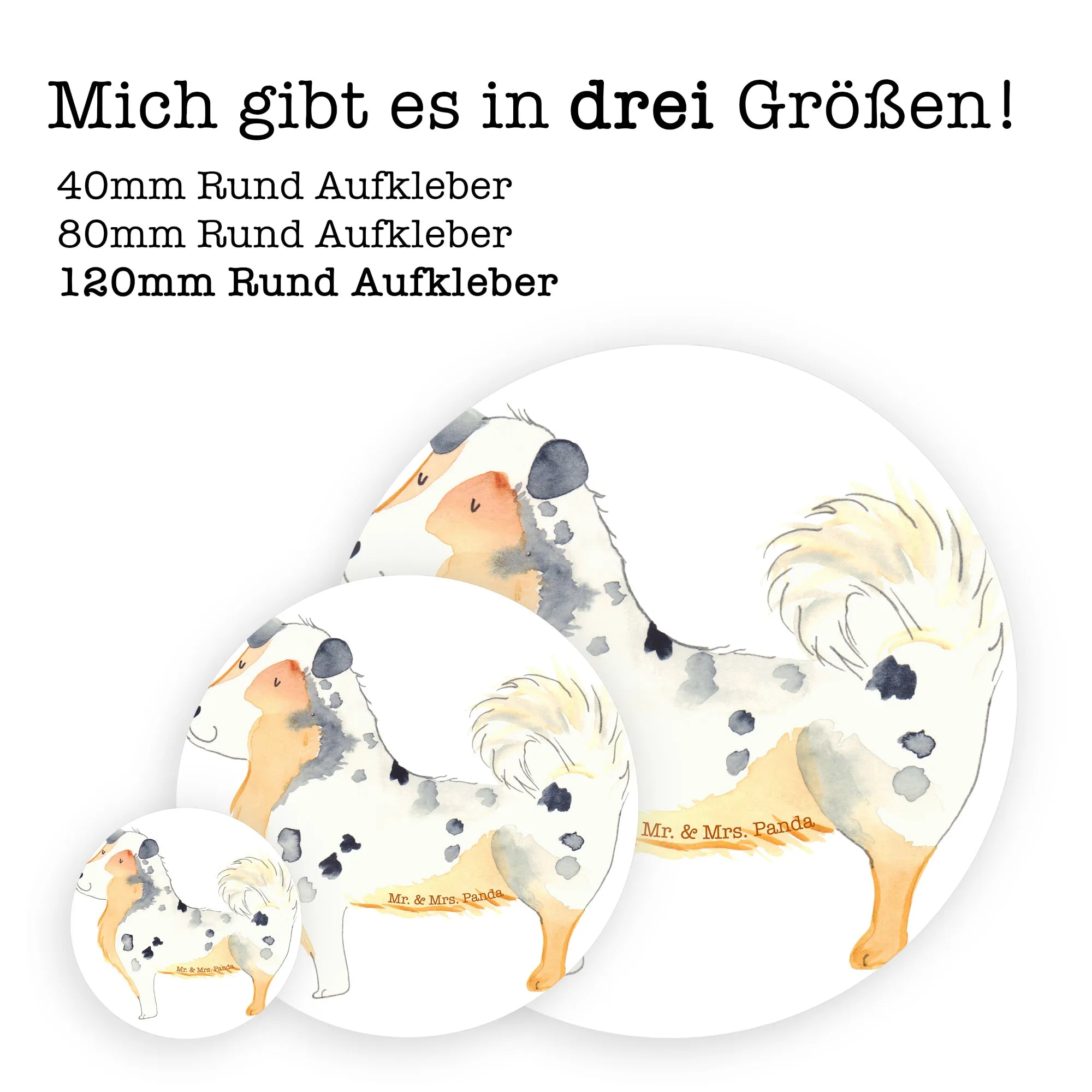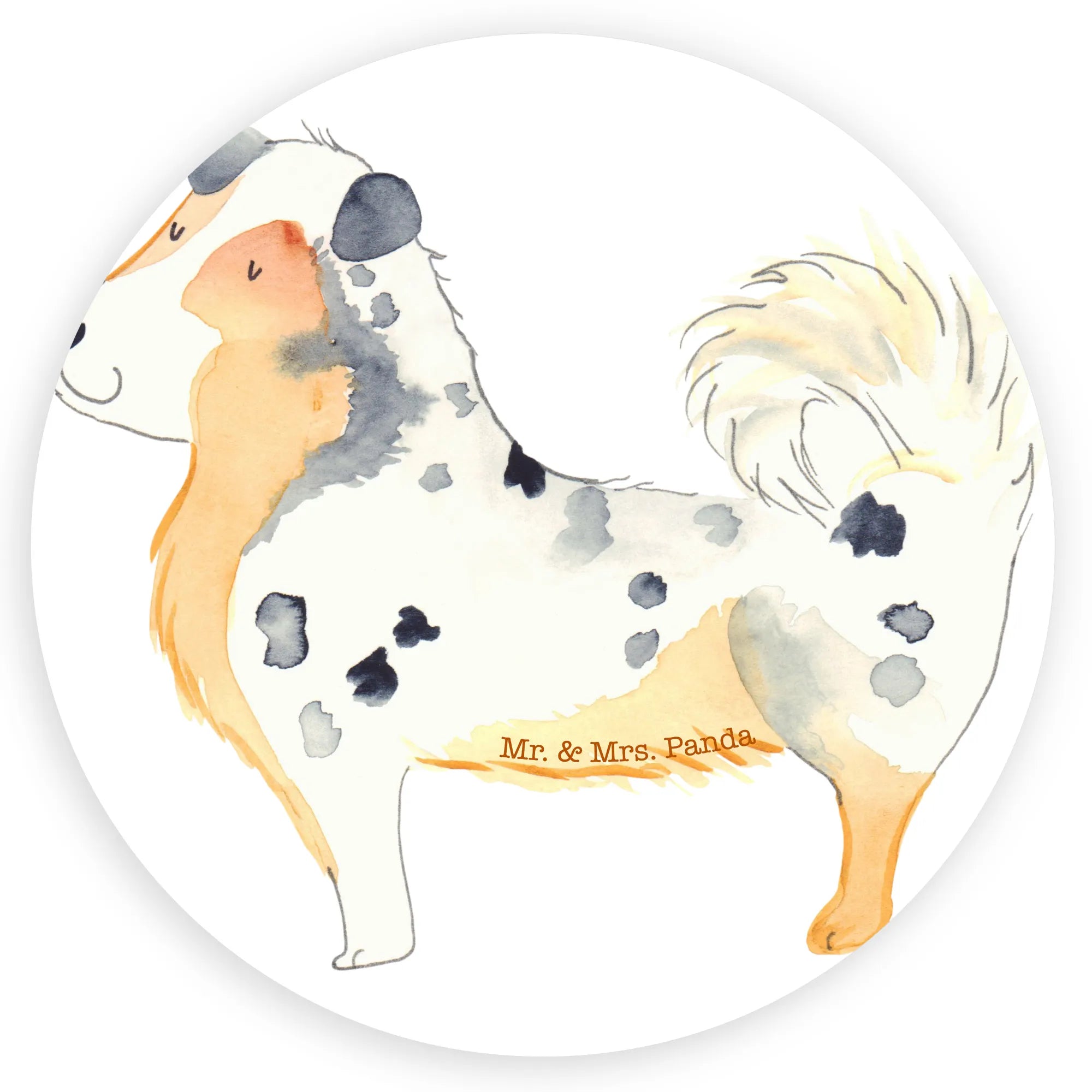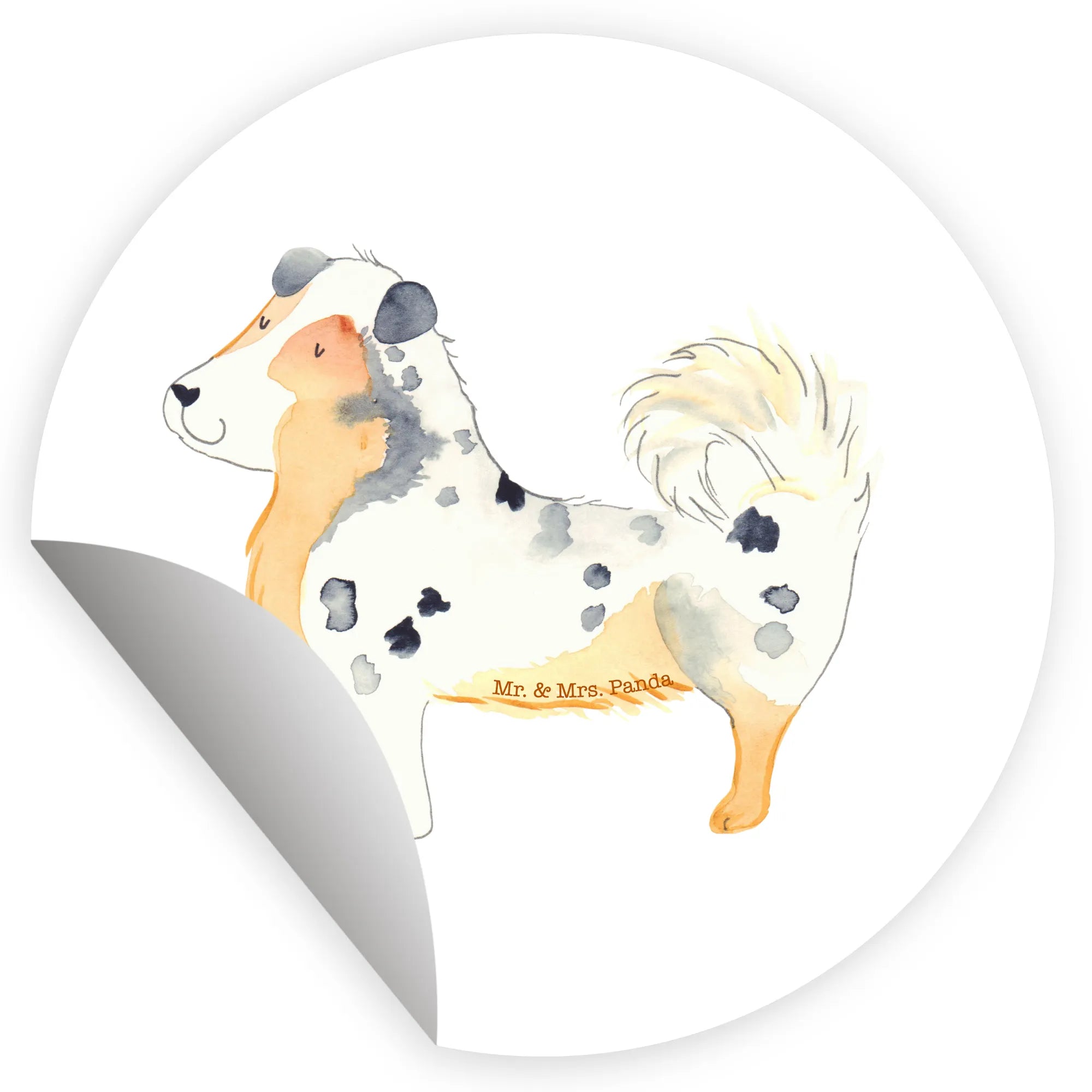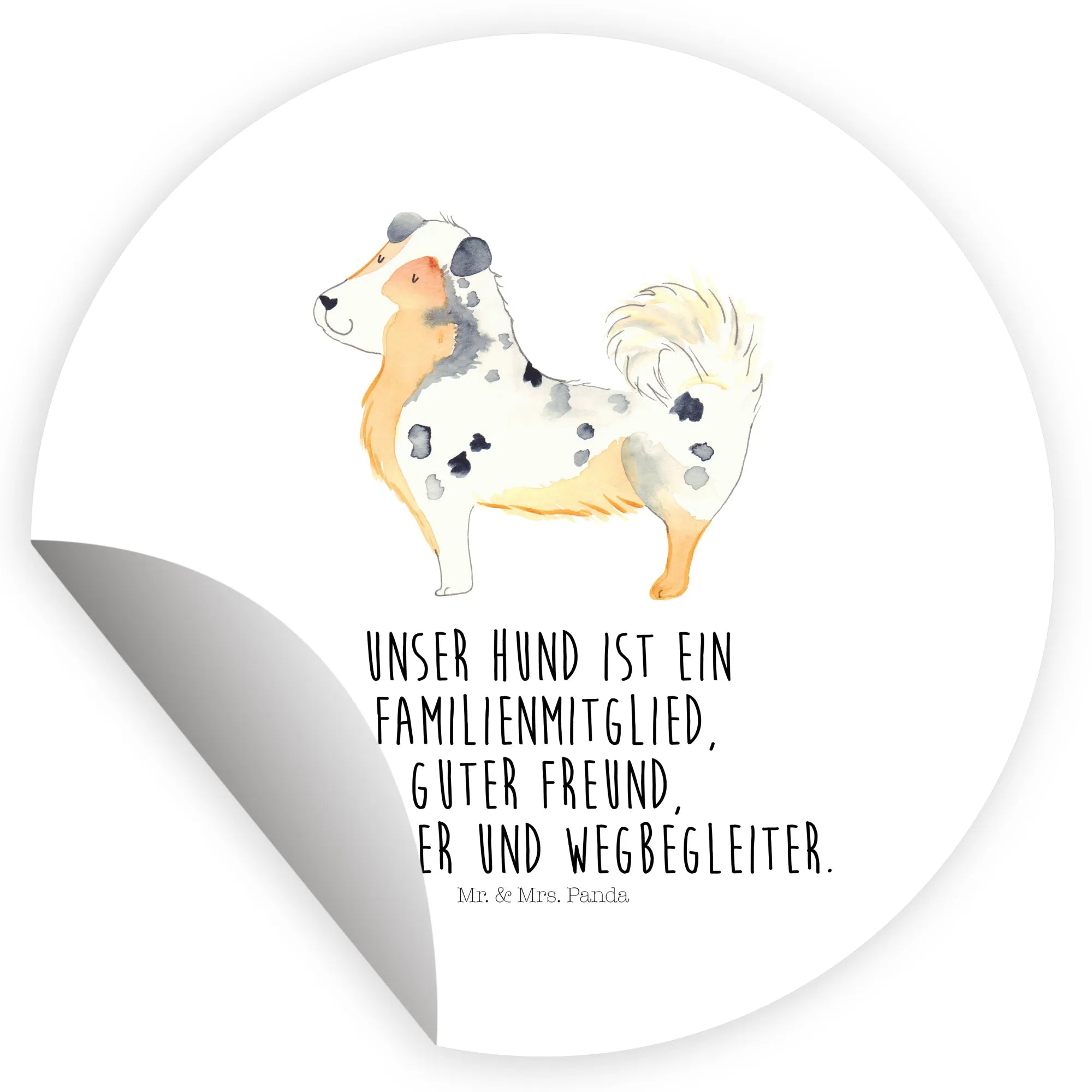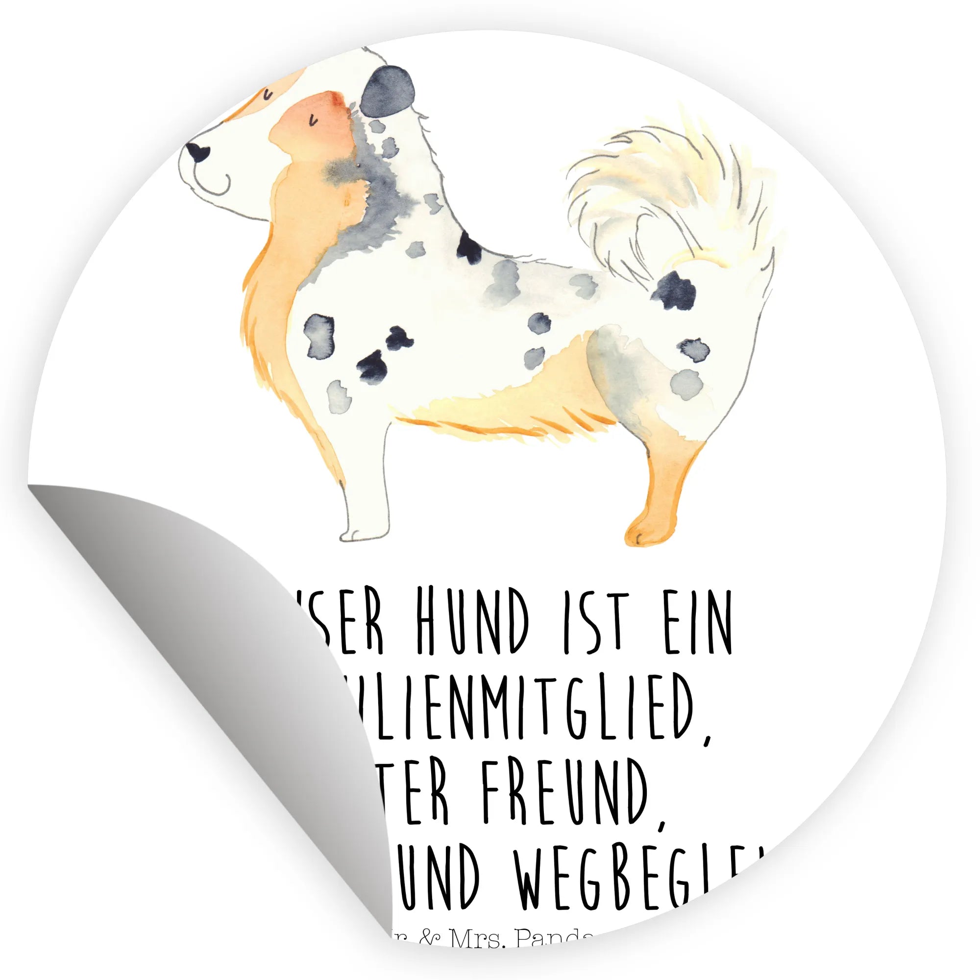 80mm okrągła naklejka Pies Owczarek australijski - 80mm Rund Aufkleber - z napisem - biały
