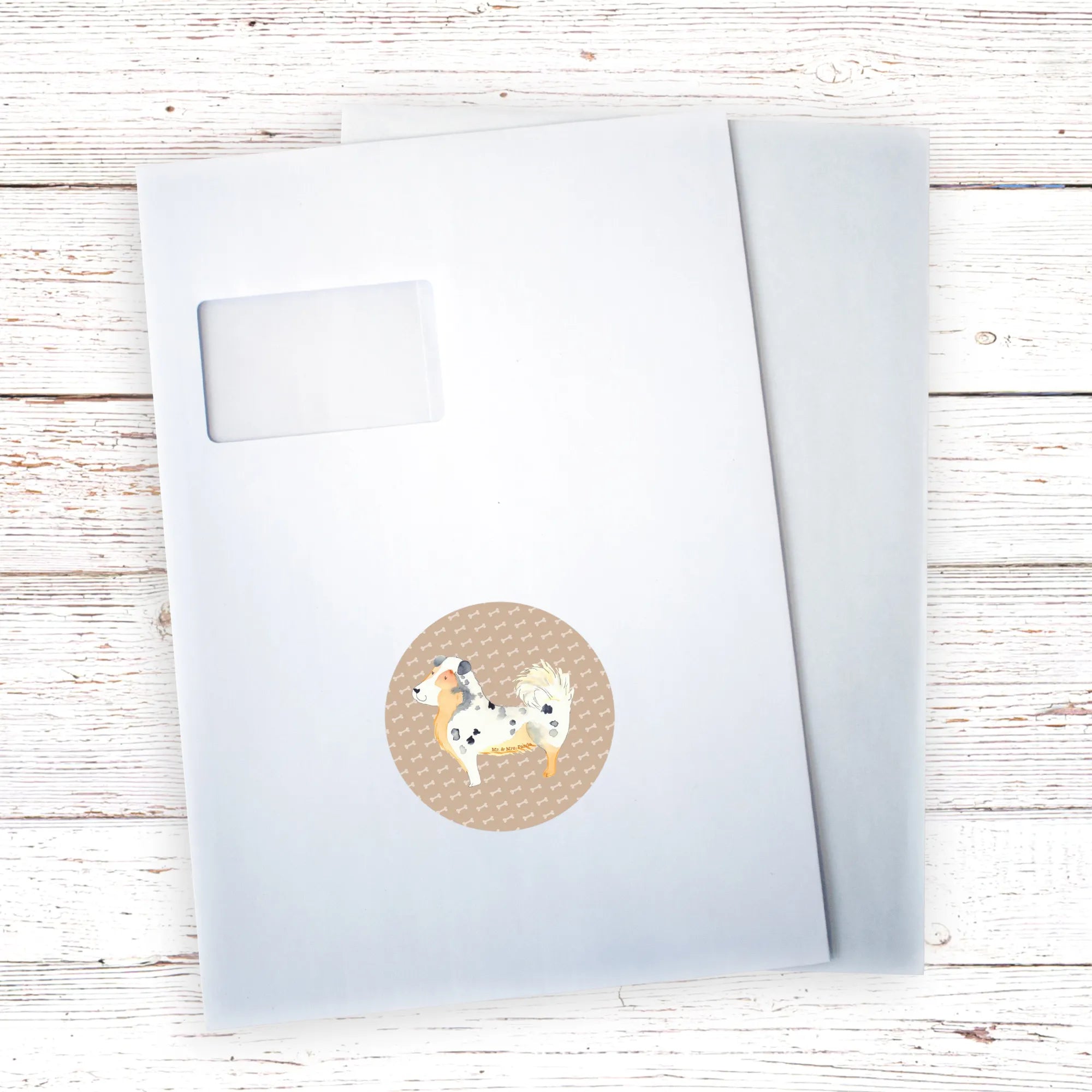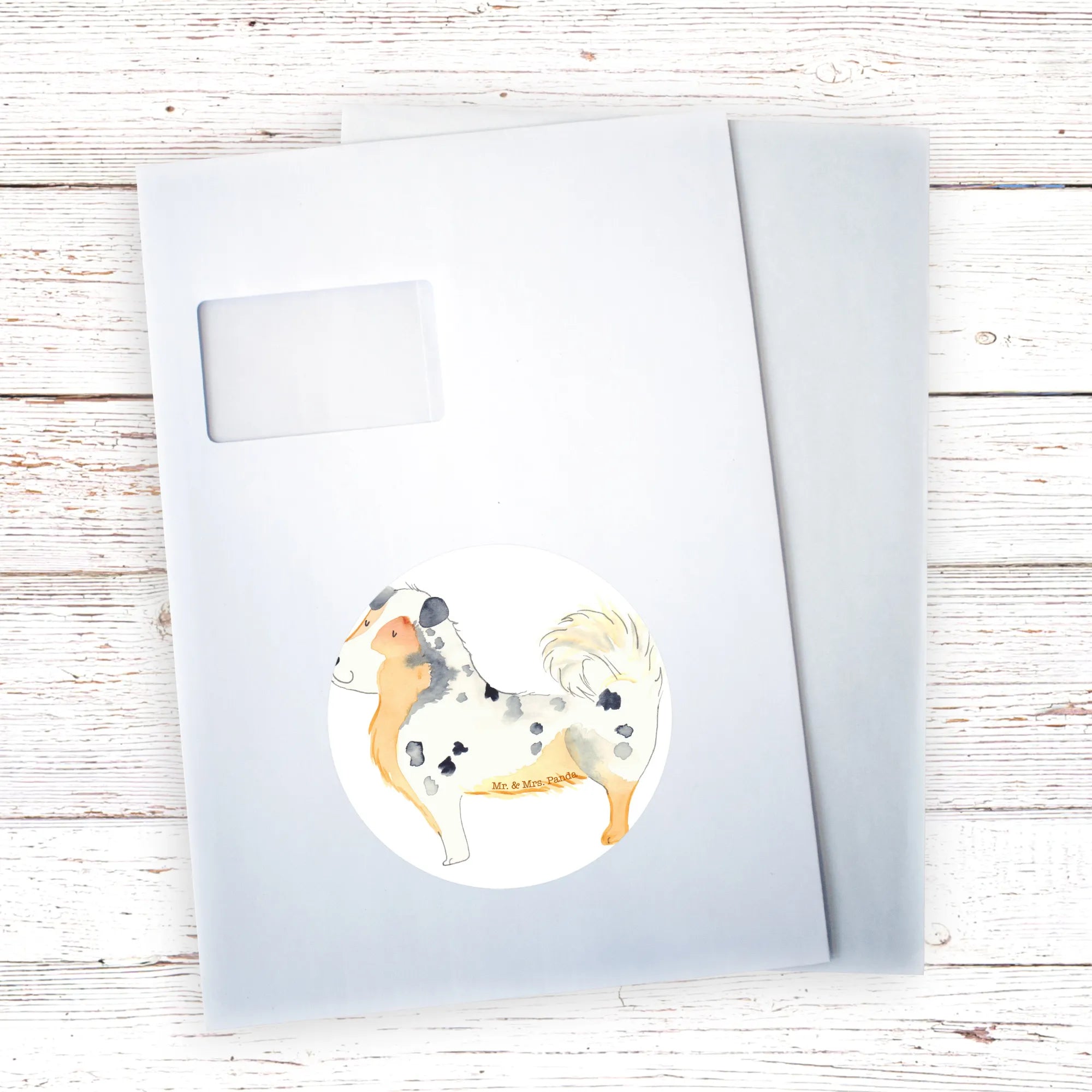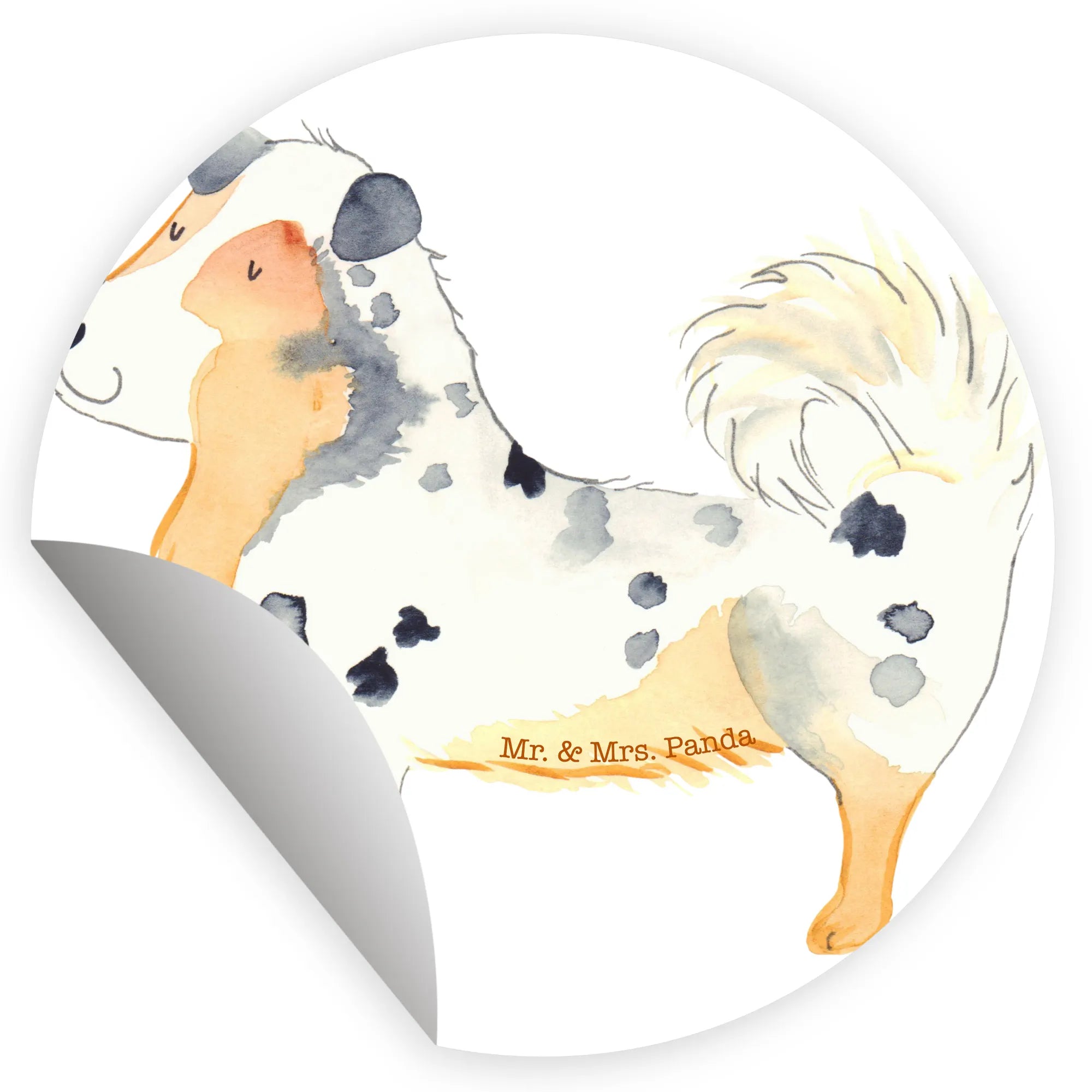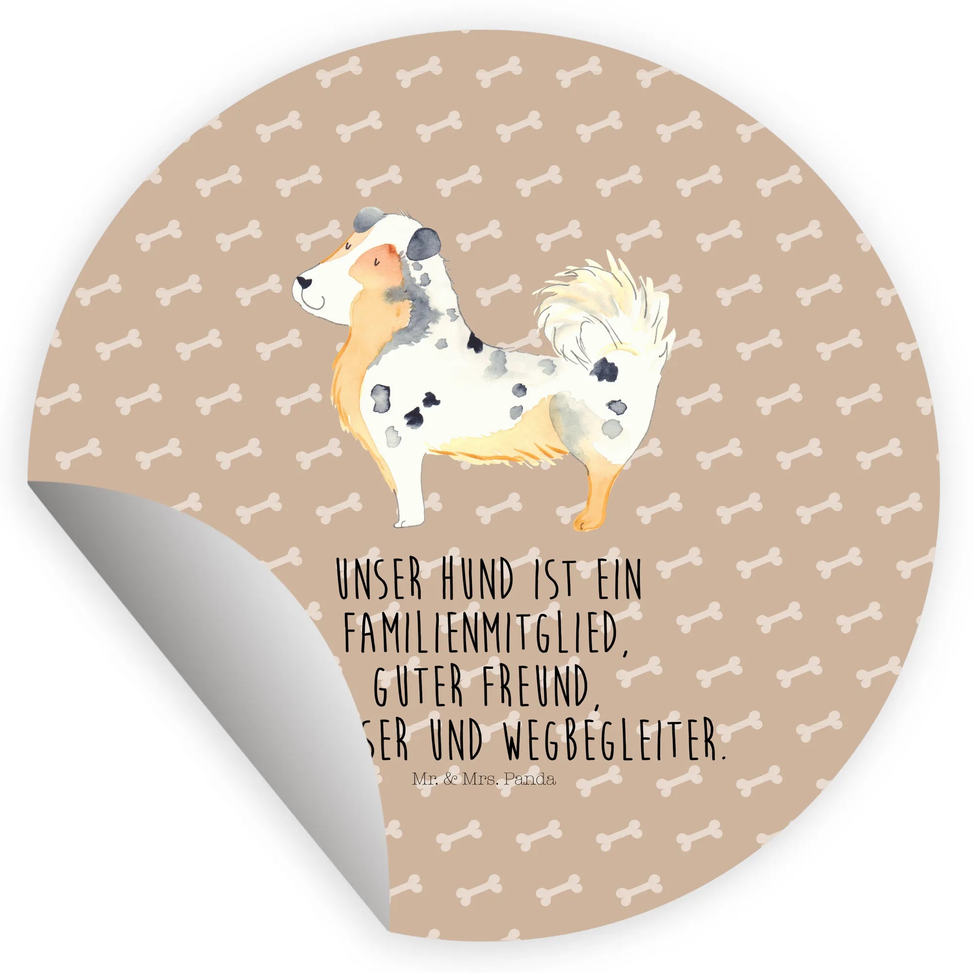 80mm okrągła naklejka Pies Owczarek australijski - 80mm Rund Aufkleber - z napisem - biały