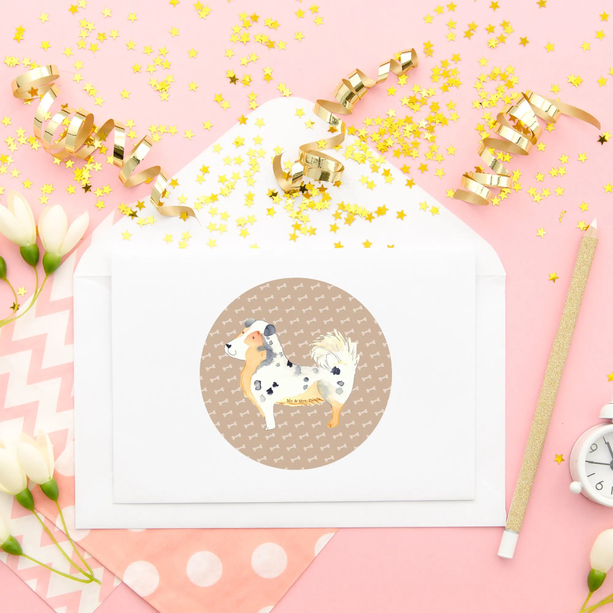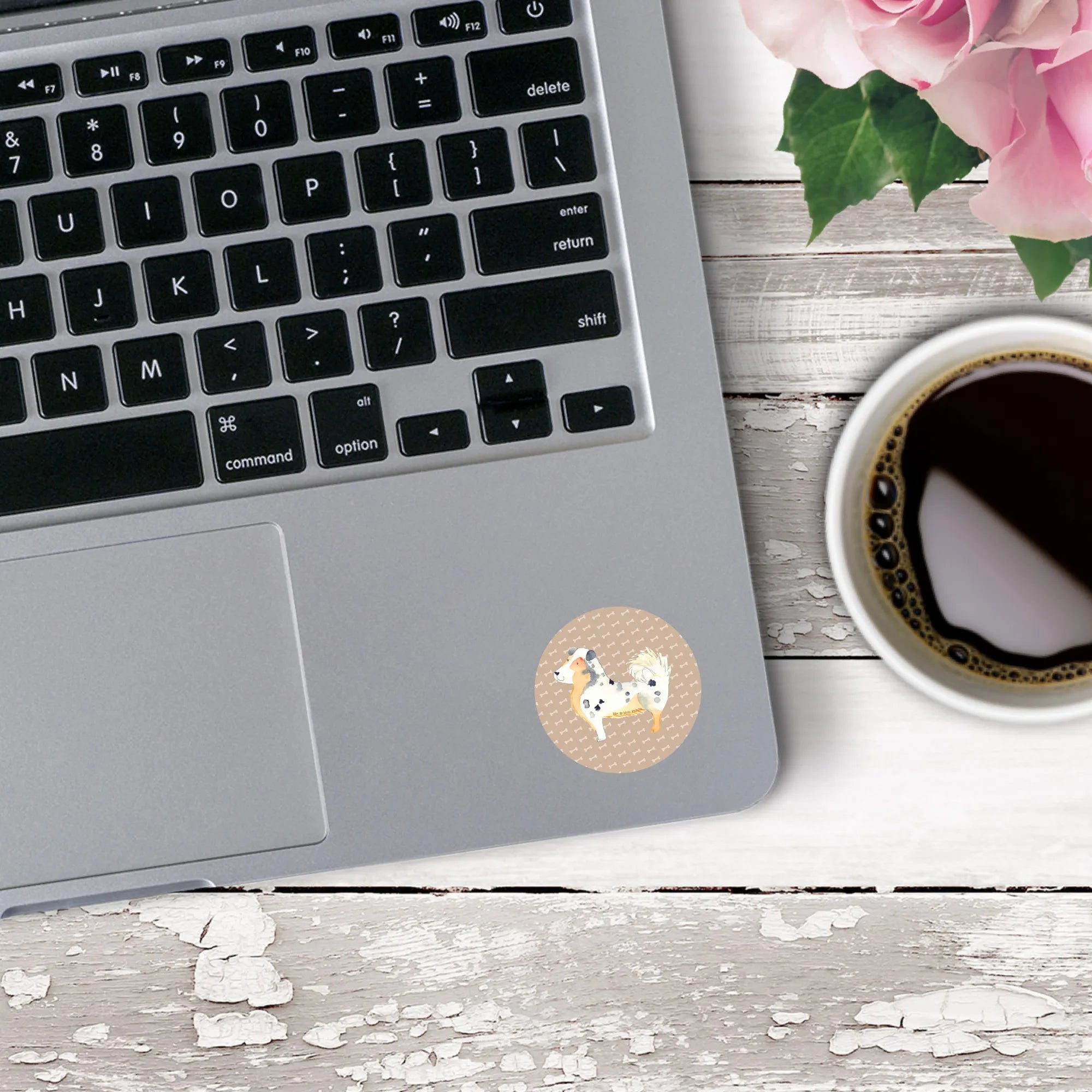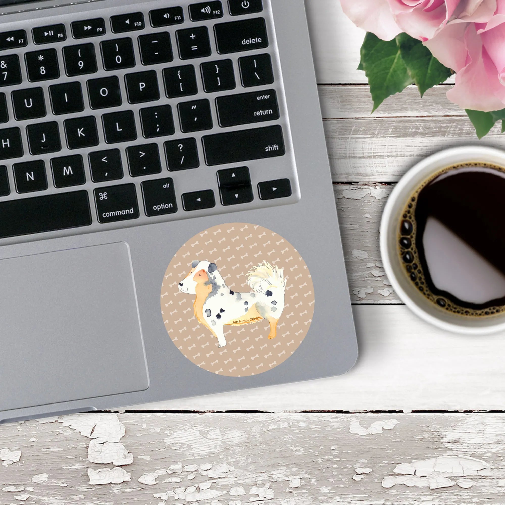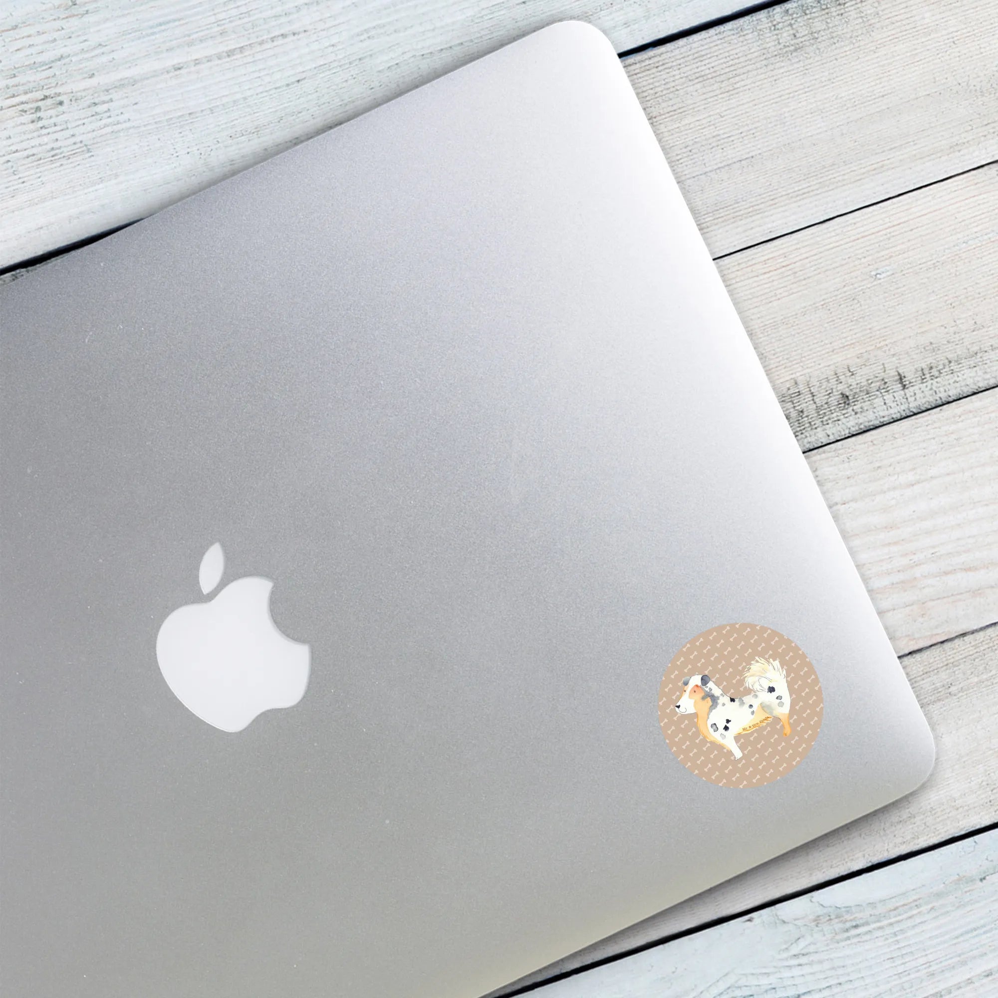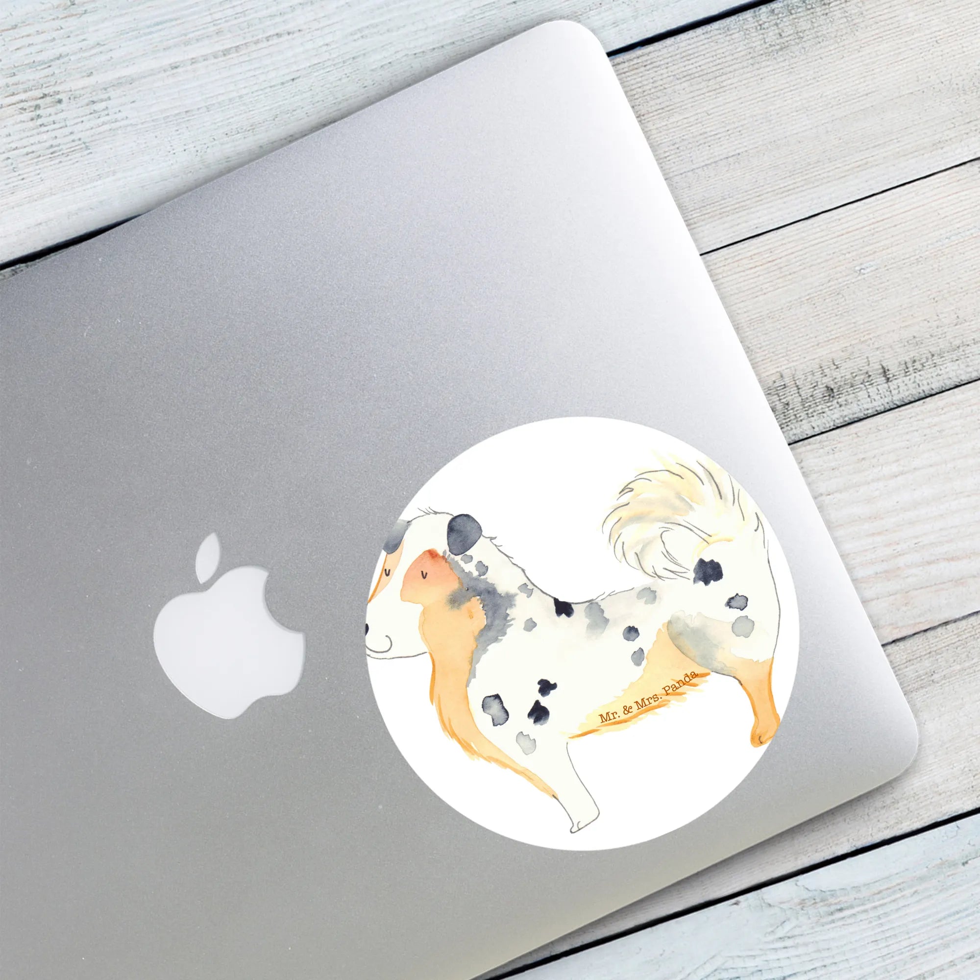 80mm okrągła naklejka Pies Owczarek australijski - 80mm Rund Aufkleber - z napisem - biały