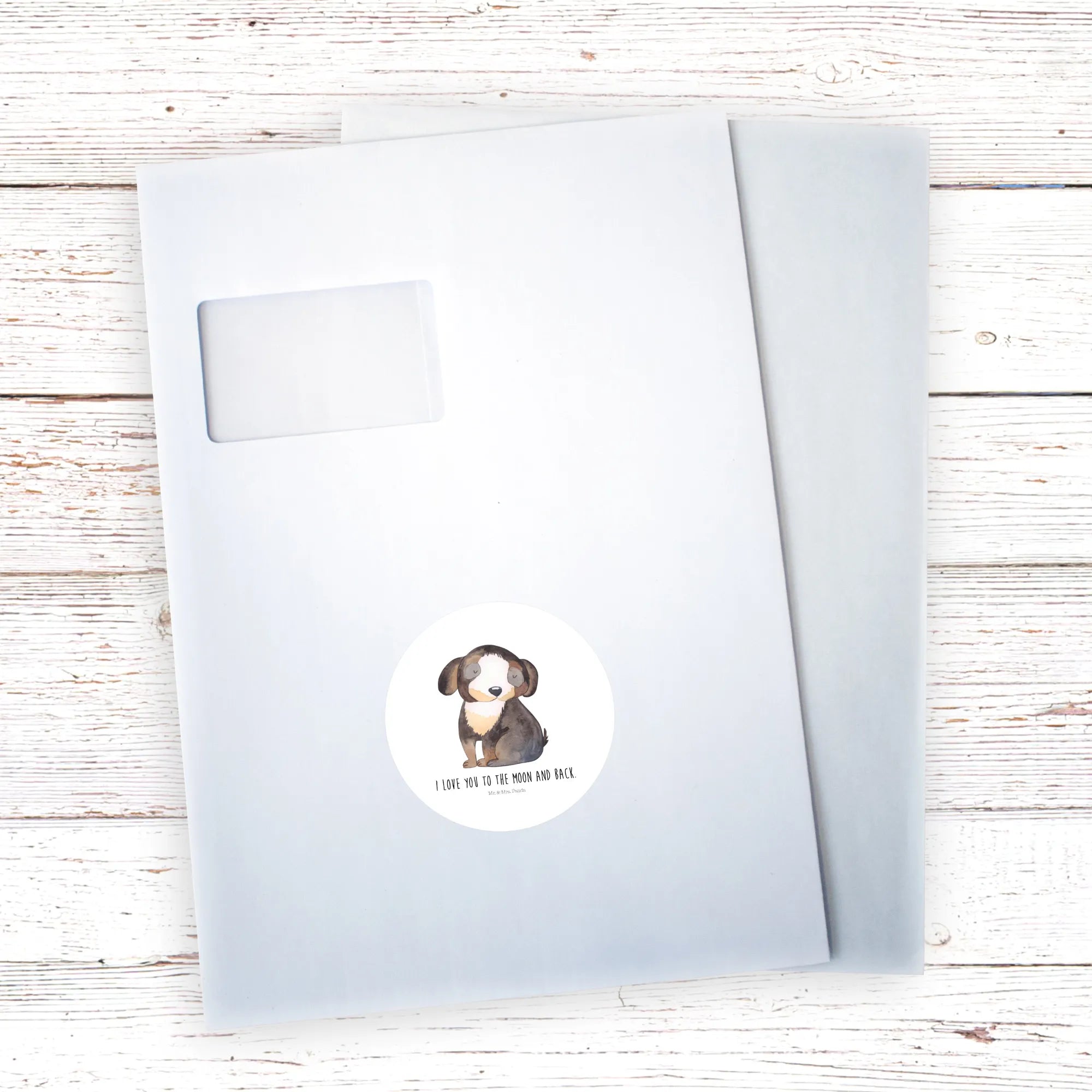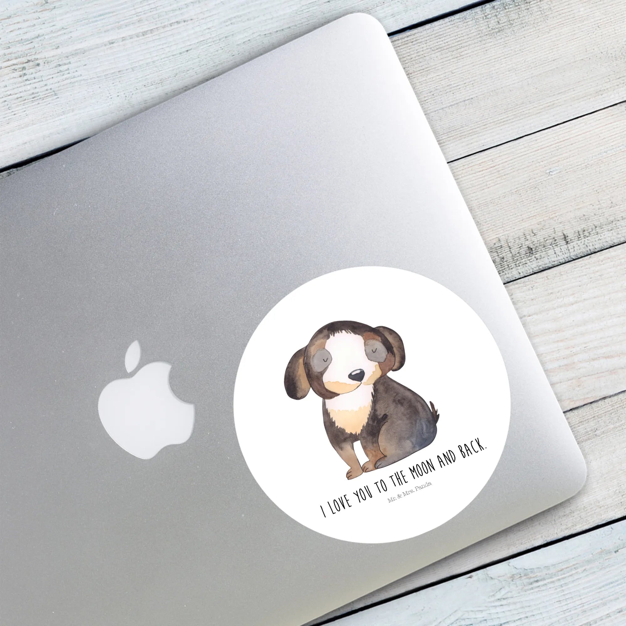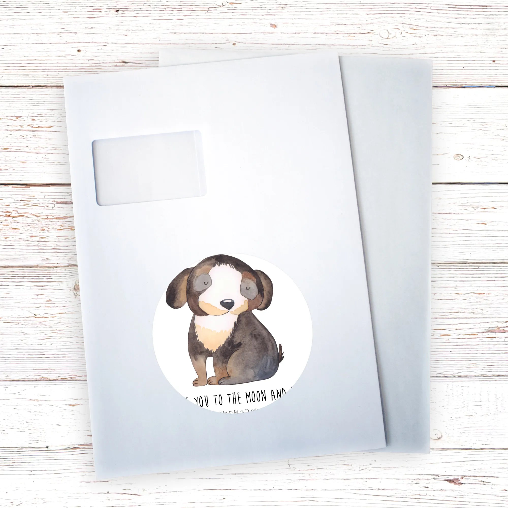 80mm okrągła naklejka pies relaks - 80mm Rund Aufkleber - z napisem - biały
