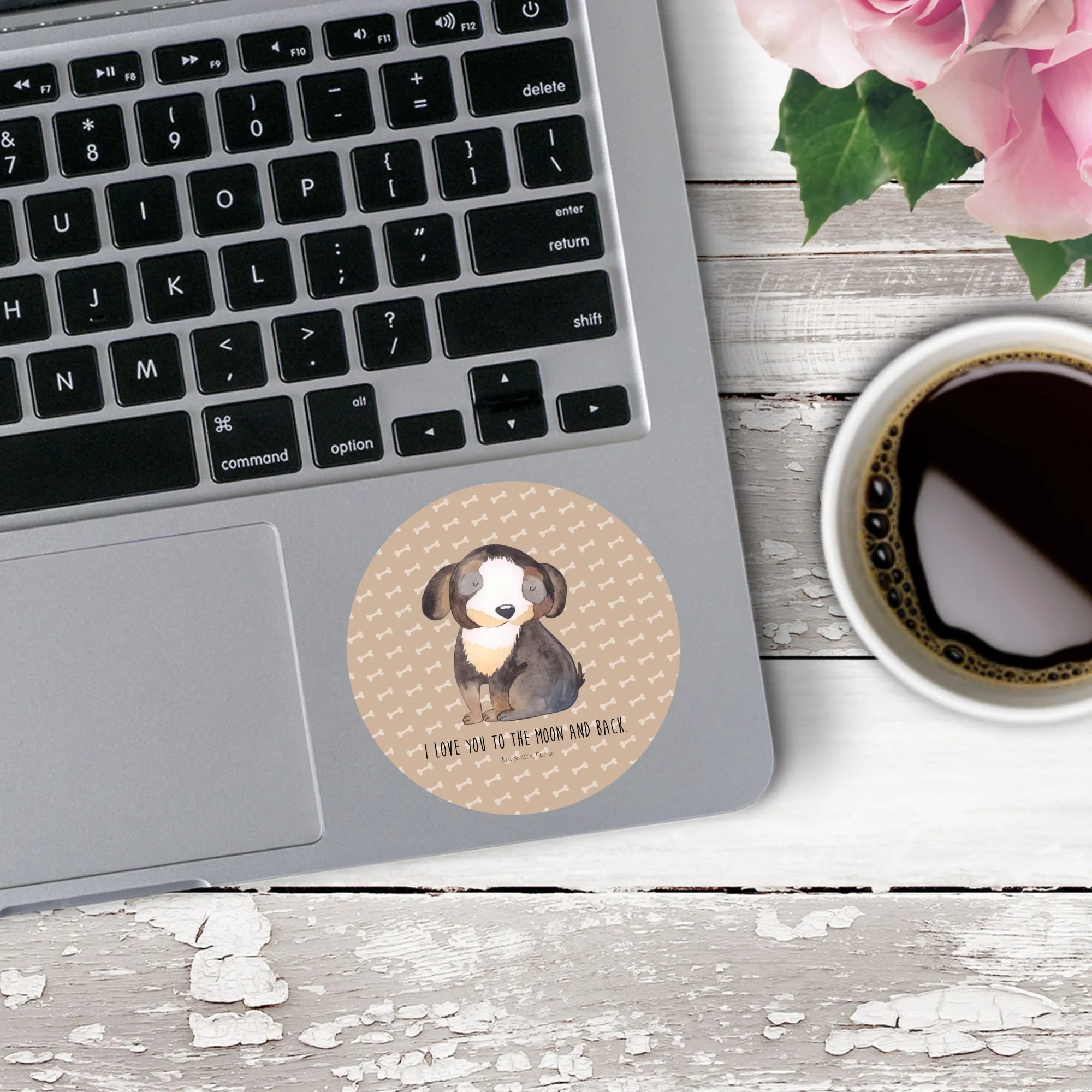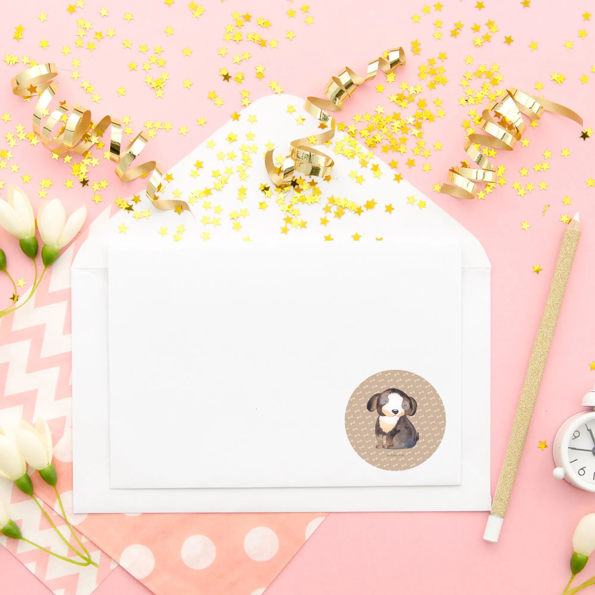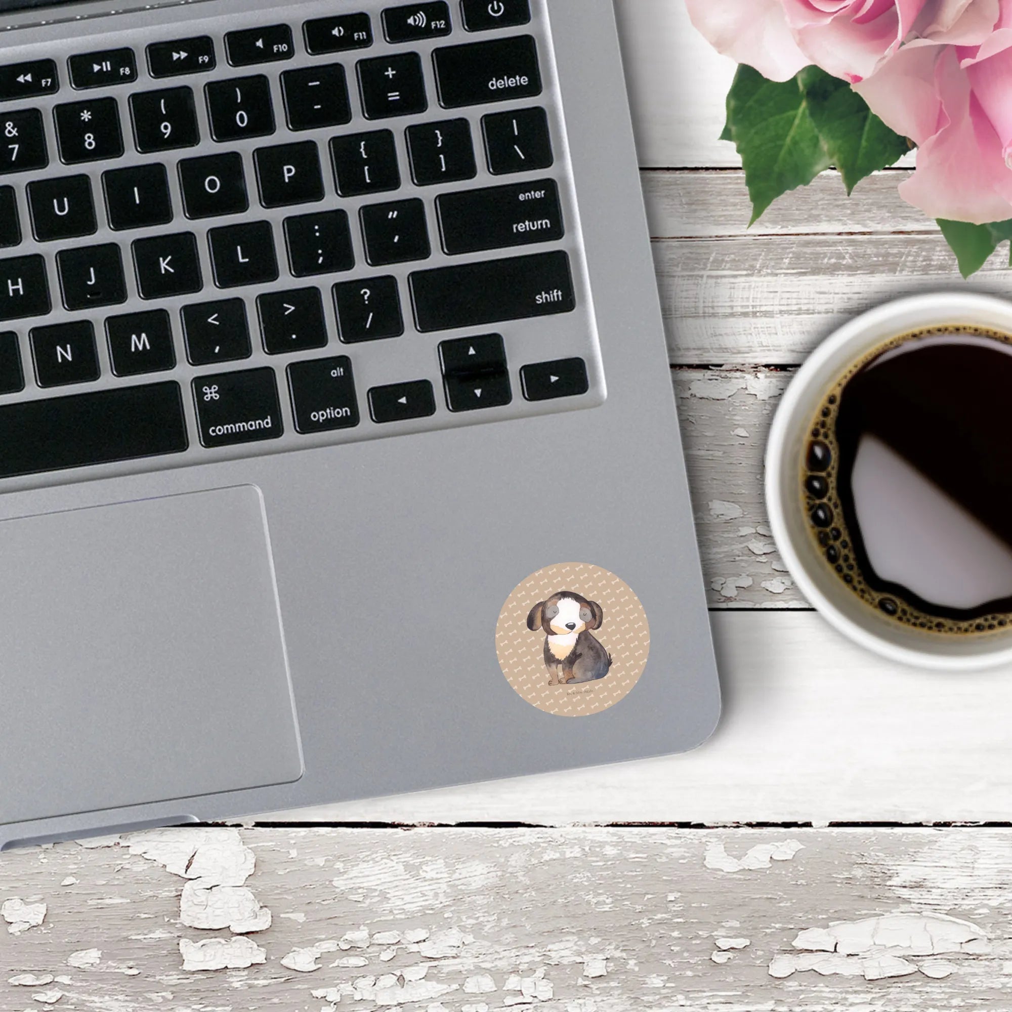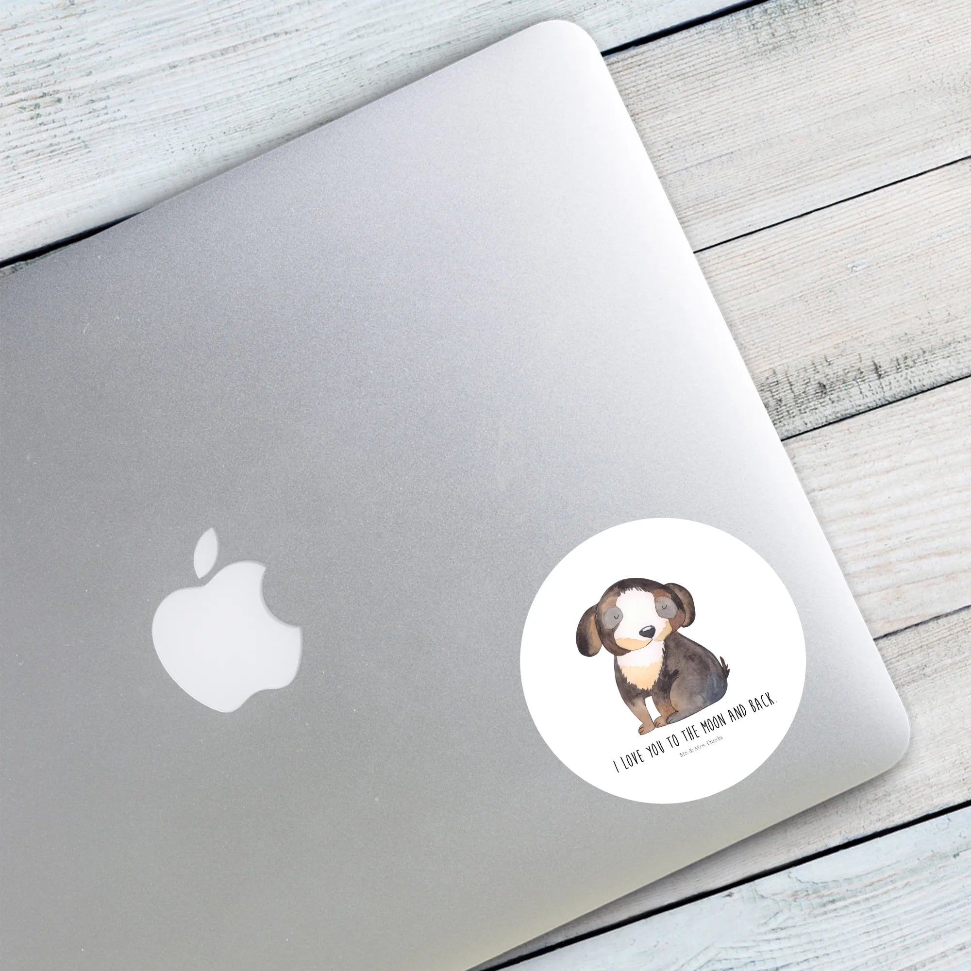 80mm okrągła naklejka pies relaks - 80mm Rund Aufkleber - z napisem - biały